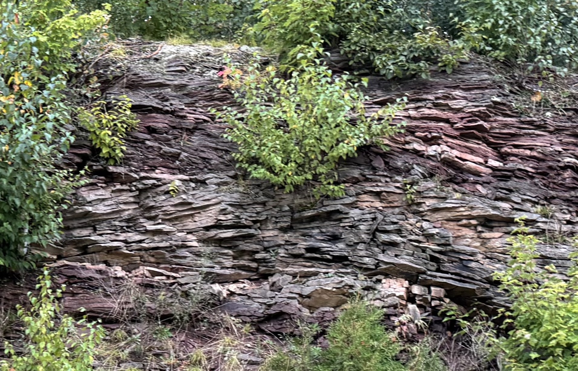 There have been a number of eye-catching rock formations here and there along the way. This one caught my eye, then made them cross.