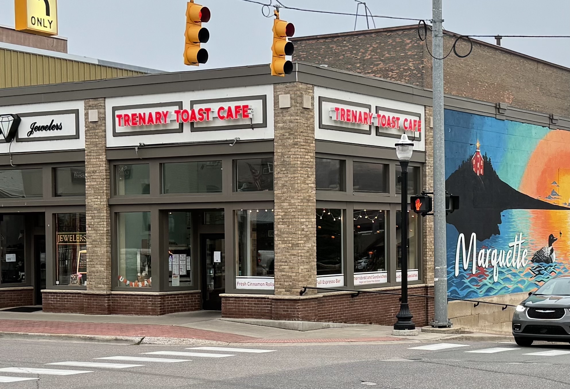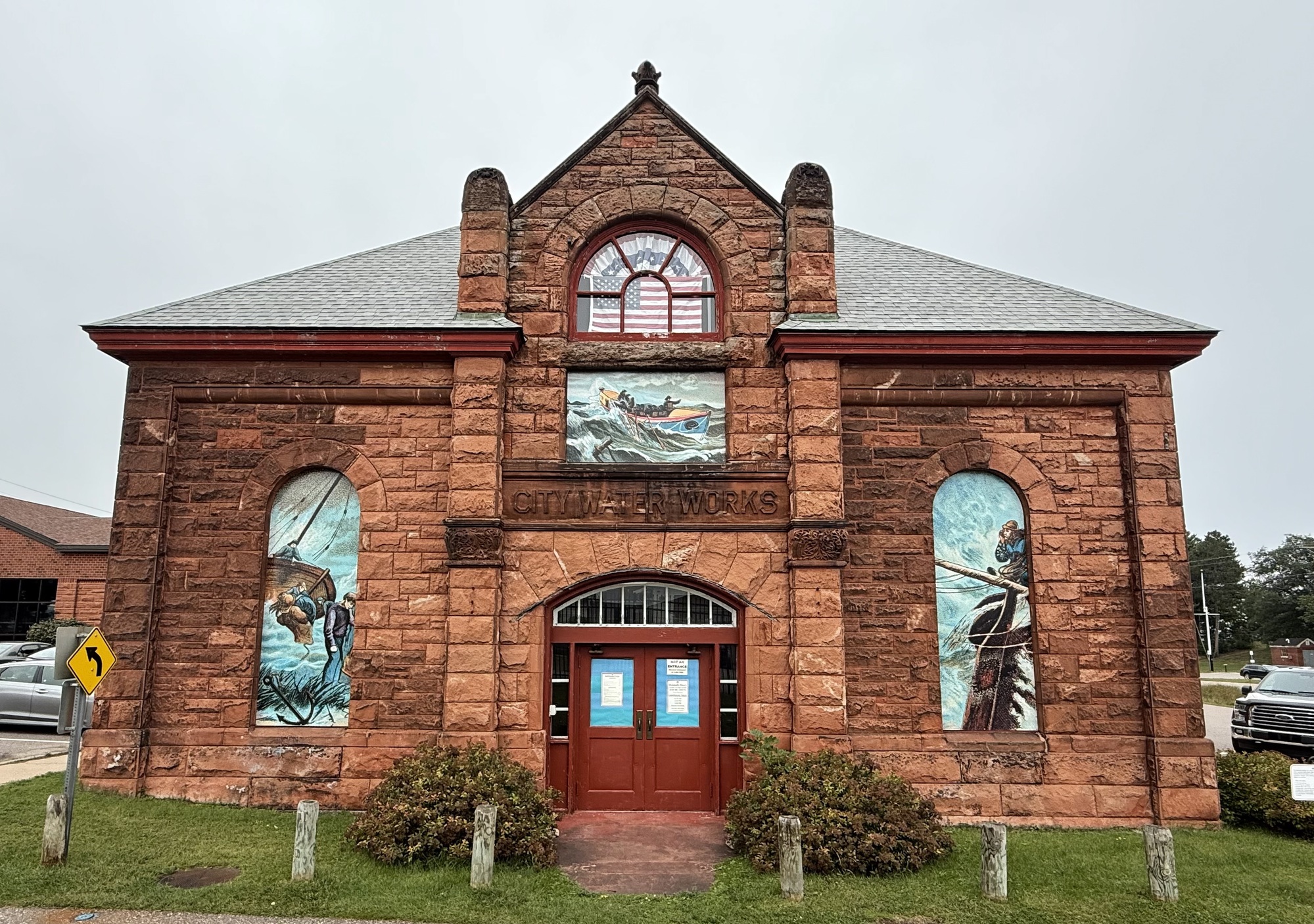 Upon arriving back at Trenary Toast, which closes at 4:00, we rode over to the public library so Lori could continue working. There was a small niche in the entrance hall where we stashed the bikes, then Lori hustled off to another meeting while I considered my next move.
