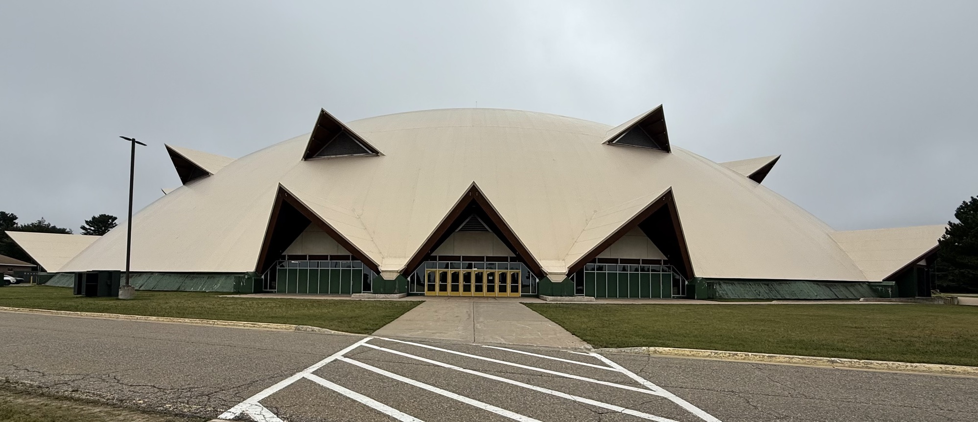 On the way I stopped at another one of today's Points of Interest: the Superior Dome on the campus of Northern Michigan University. It has the largest diameter of any wooden dome in the world and can hold up to 16,000 people.