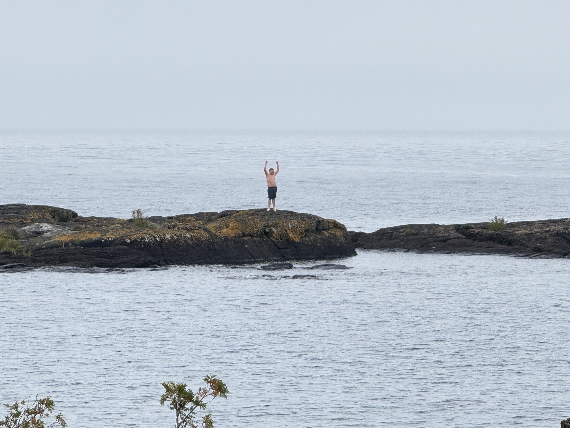 This guy seemed pretty happy about swimming to the small rock outcroppings. After making it he was running in circles, pumping his fist, and pointing to someone on the mainland.