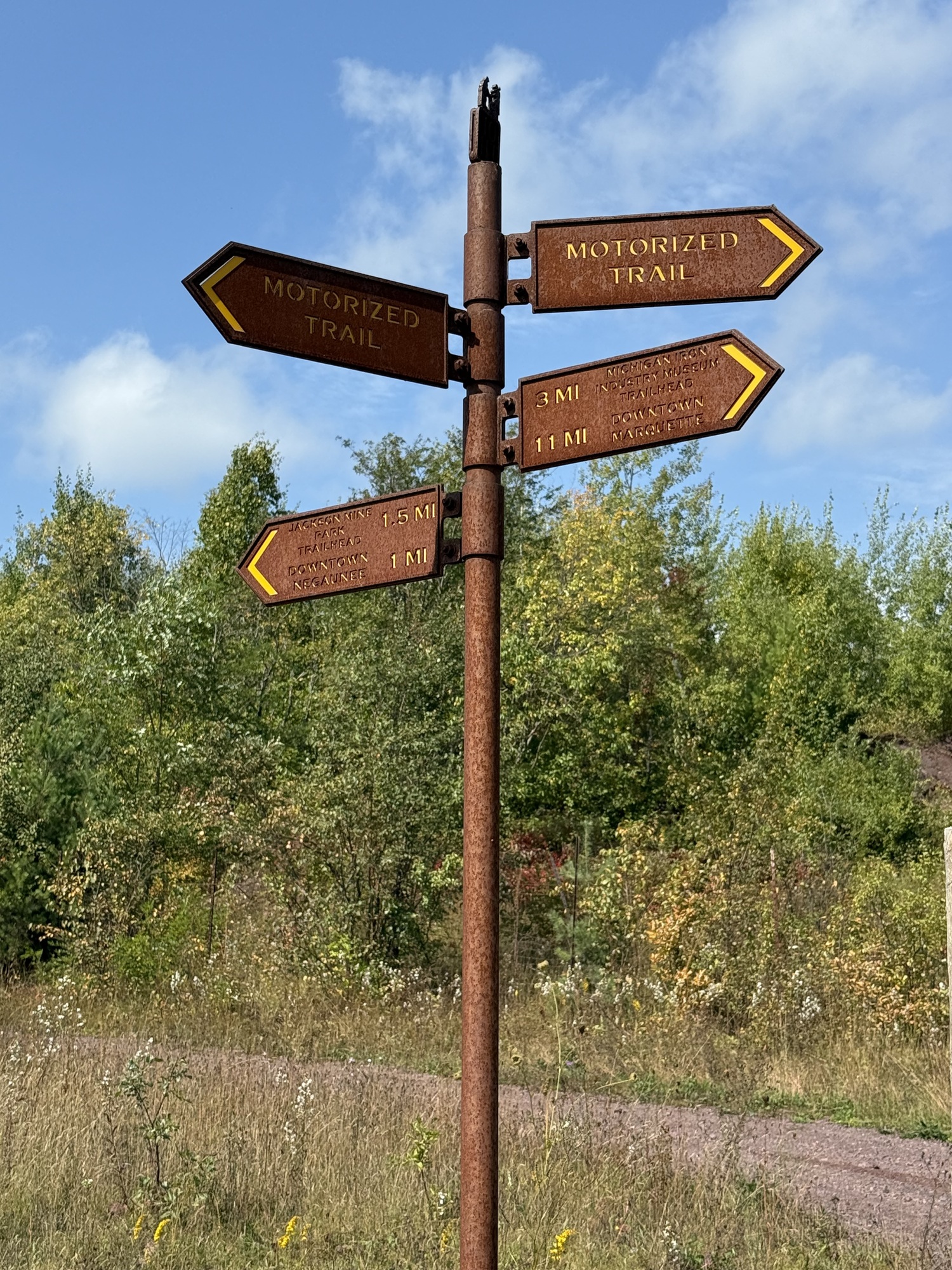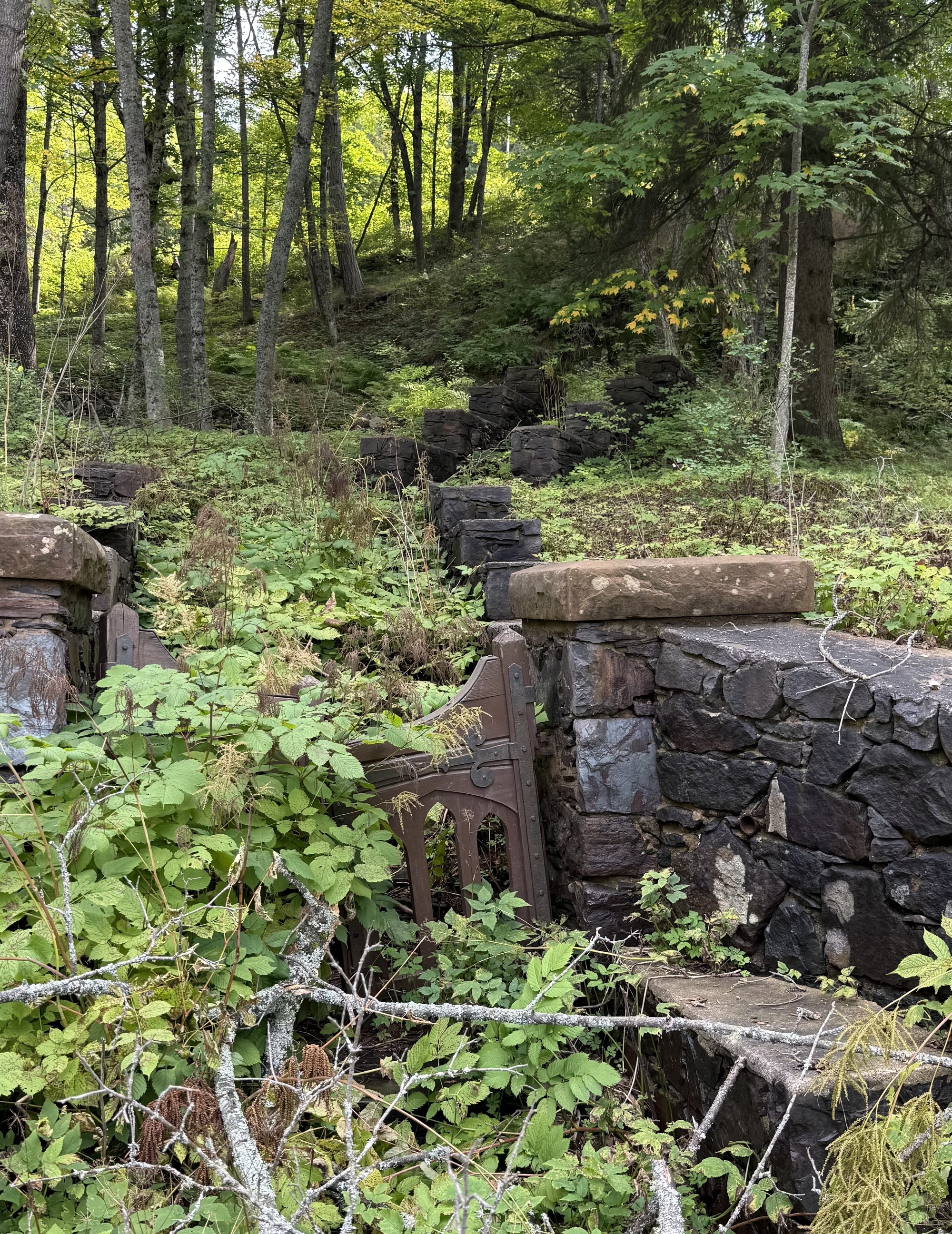 After rolling back down Jasper Knob we left the Iron Ore Trail and pedaled through Ishpeming toward M-41. Here you're looking at Shaft C of the Iron Cliffs Mining Company, which started as an open pit mine in 1867 and eventually reached a depth of 1,358 feet. Over the years it shipped more than 30,000,000 tons by the time it closed in 1972, and was the longest operating Iron Mine on the Range. It’s now a museum with seemingly out-of-place Egyptian Revival obelisks (not pictured) standing over shafts A and B. Unfortunately, it’s temporarily closed.