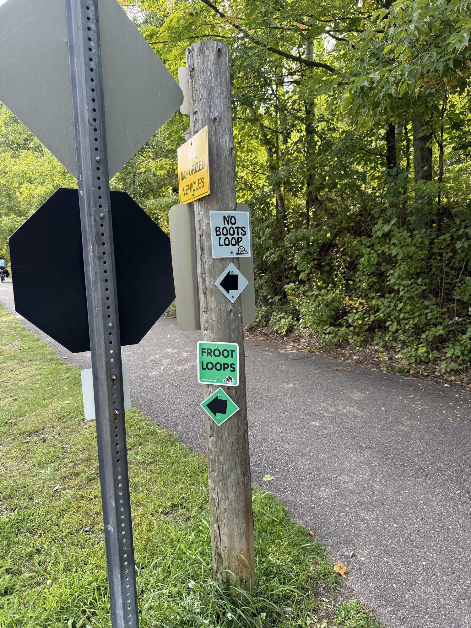 Seeing this blocked-off section near the trail, not knowing how far the hike was, and not finding a place where we could safely stow our bikes, we opted out of trekking to the top.