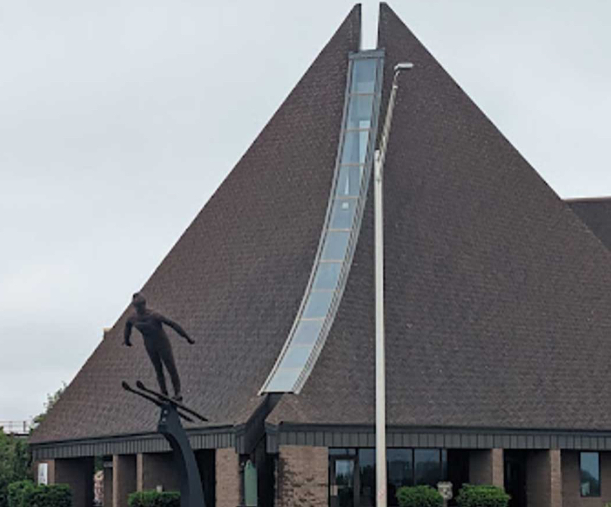 Ishpeming also houses the U.S. Ski & Snowboard Association. It's in Michigan instead of New Hampshire or Wisconsin, both of which have older ski clubs, because this is where skiing became structured, official, and nationally organized. Thus, Ishpeming is considered the birthplace of organized skiing and houses the U.S. National Ski Hall of Fame and Museum as well as the U.S. Ski & Snowboard Association. I didn't realize this until after we left town or I would've stopped in for a tour. The building itself is architecturally interesting. Here's another borrowed picture from the internet.