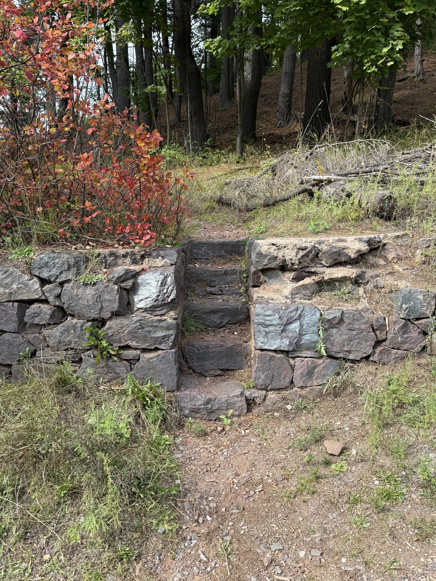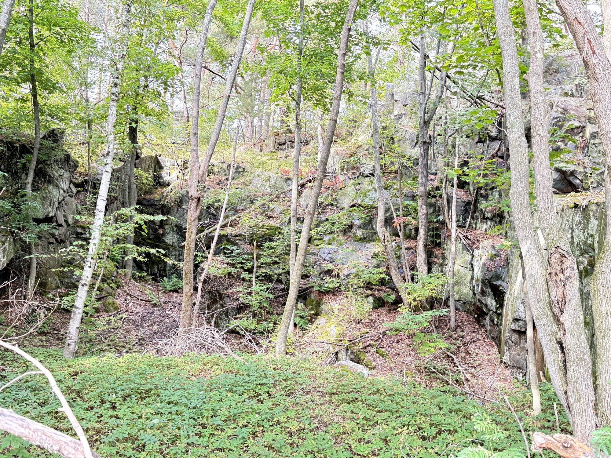 Once at the top of the road, we located the entrance to a near invisible hiking trail that takes you to where you can see the banded iron near an overlook of downtown Ishpeming.