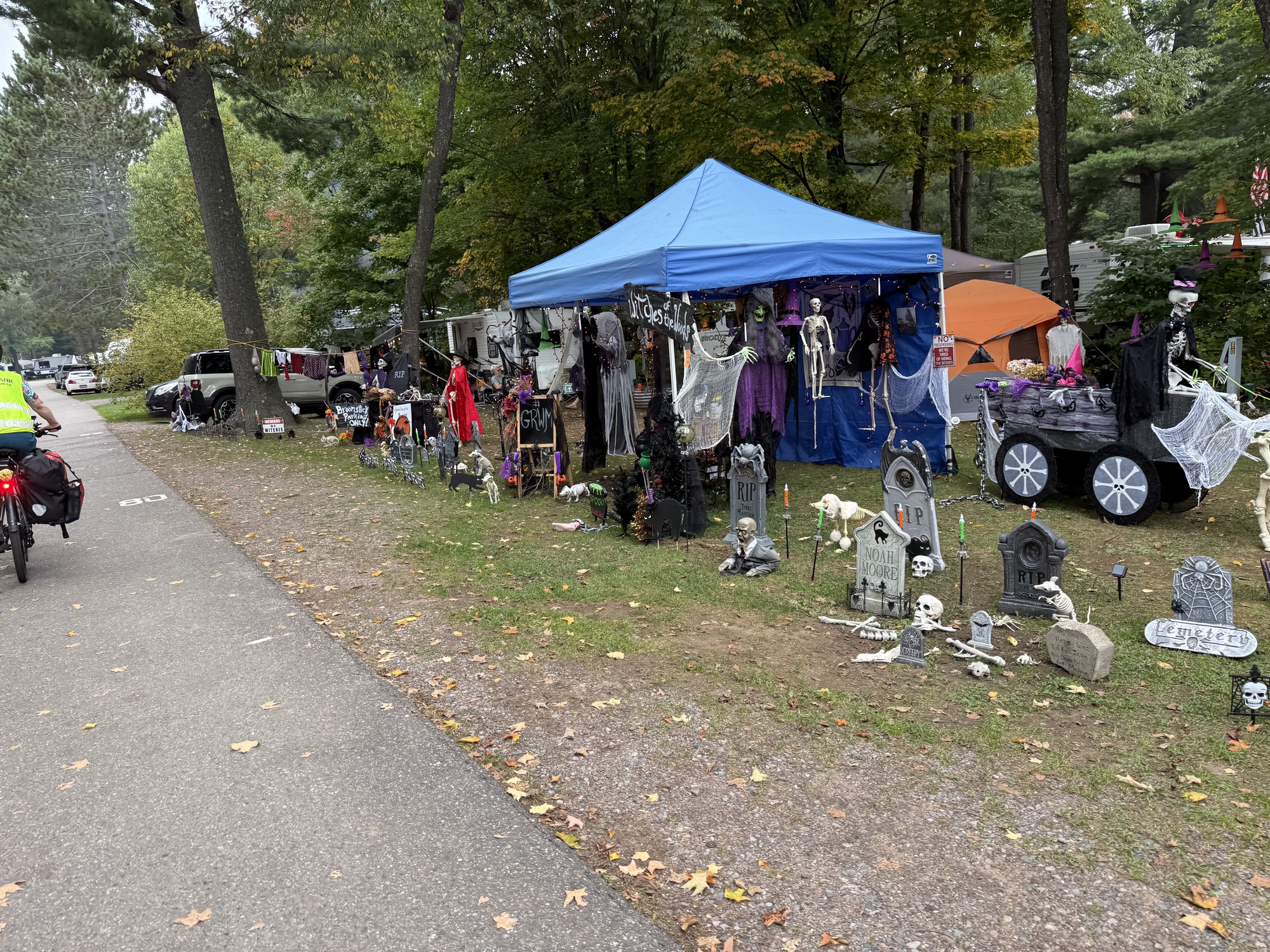 When we arrived at Van Riper State Park, which I kept referring to as "Van Rider" before finally realizing my mistake, there were Halloween decorations everywhere.