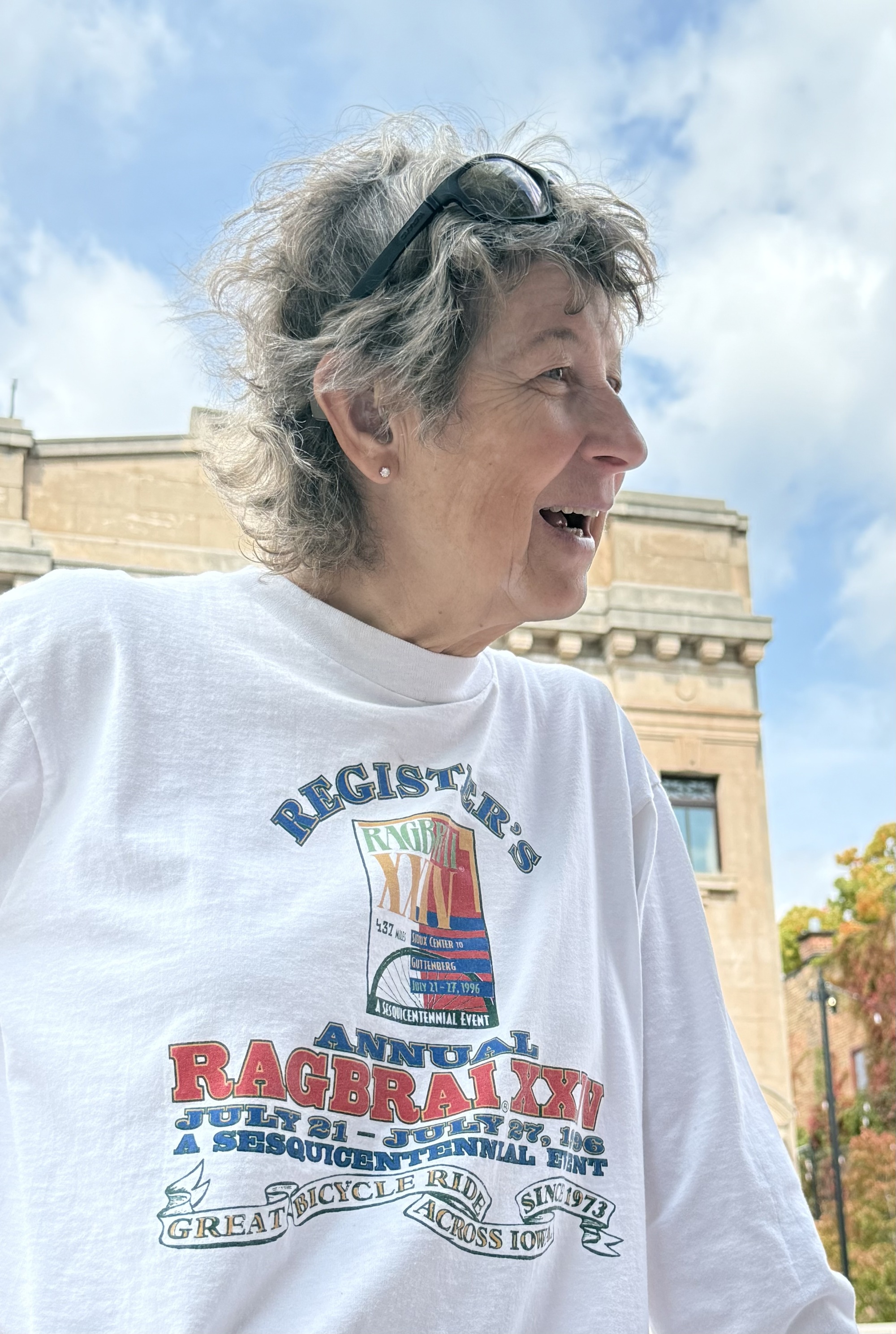 When I saw this RAGBRAI shirt I asked JoAnn about it and we talked for about 15 minutes. She's a retired Physical Education teacher, and has toured all over the world on her bicycle... she listed at least 20 far-flung places, all of which sounded marvelous.
