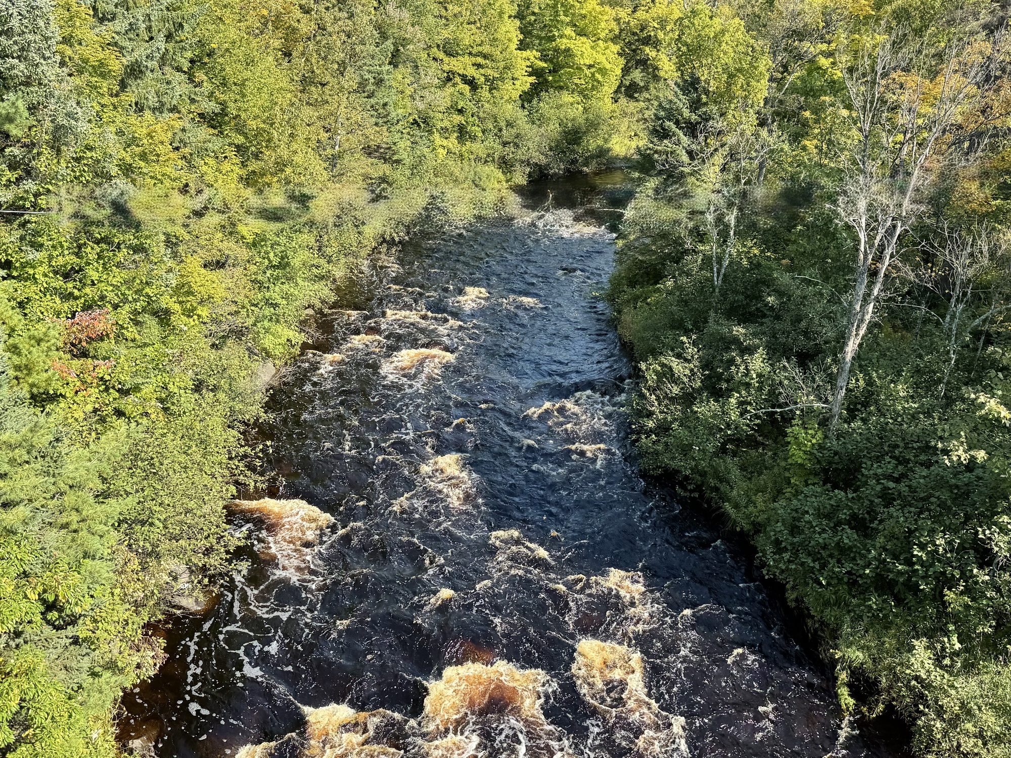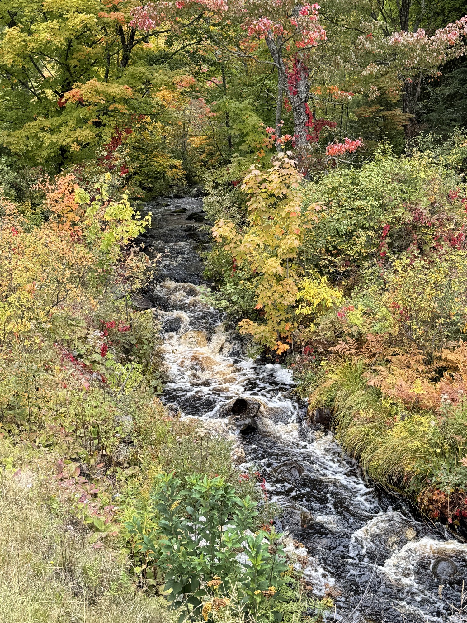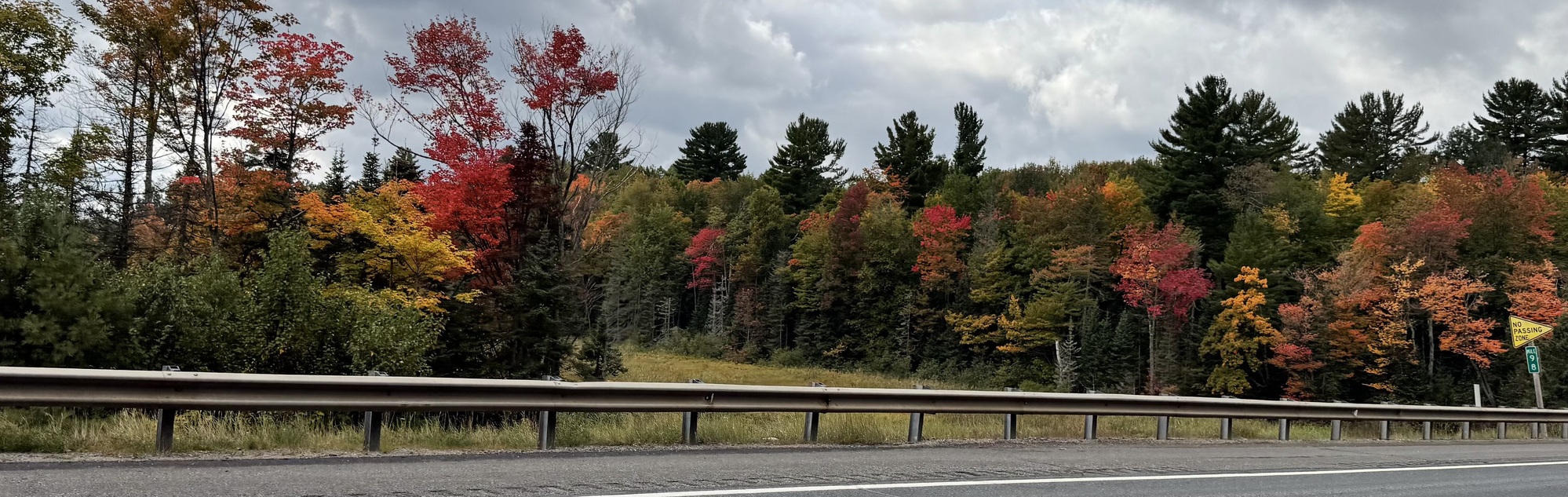 In some sections we pass, the Fall colors are in full bloom, and it looks like someone tossed a color grenade into the forest, spraying orange, red, and yellow shrapnel into the trees.