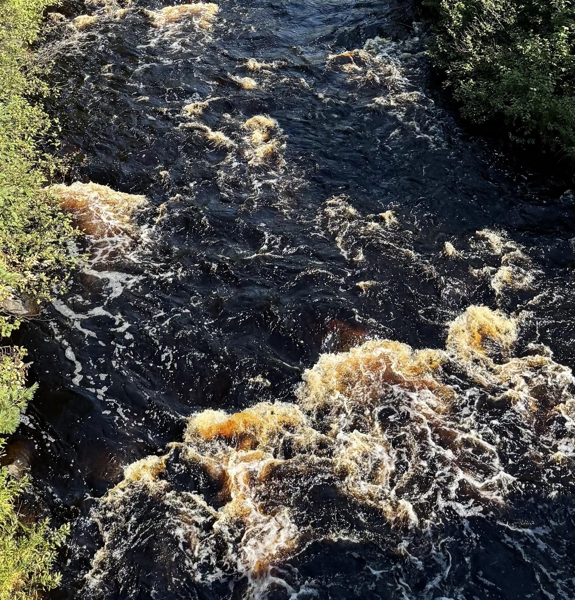 I always thought the water was brown because of iron deposits, but it's a result of tannins being released from decaying plants in wetland areas (chemically related to wine tannins, but evolutionarily and functionally worlds apart).