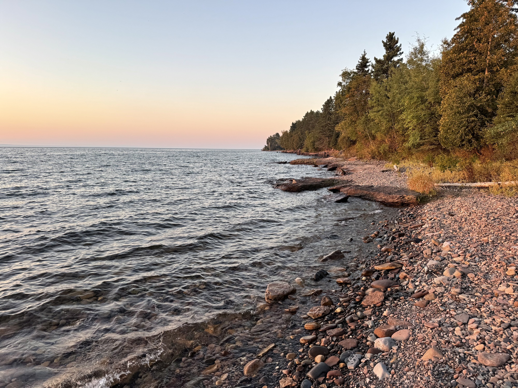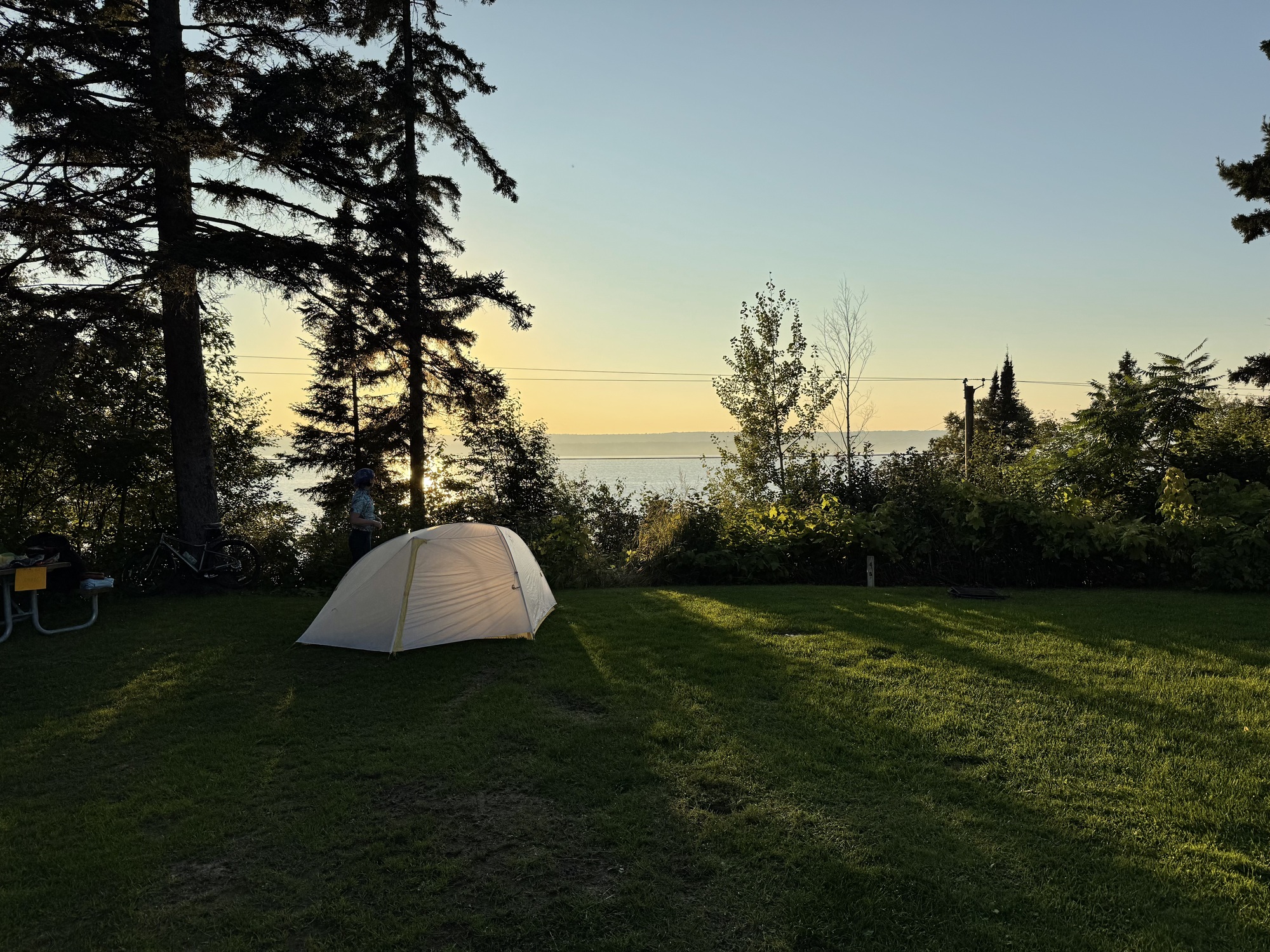 Lori found tonight's campground. As opposed to yesterday's, with almost 200 sites, L'Anse Township Park has room for 30, and there were only 3 sites being used. The difference in the noise level was staggering, the equivalent of a Death Metal concert vs. an intimate Mozart clavichord recital.... plus, we were gifted with being able to see the sun slowly setting across L'Anse Bay.