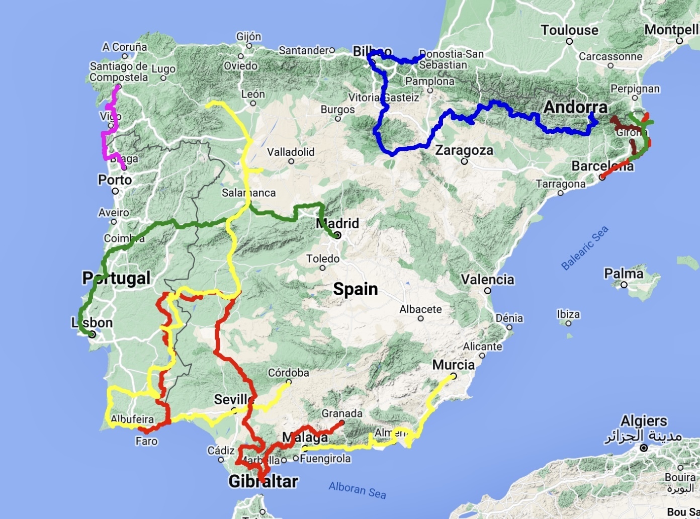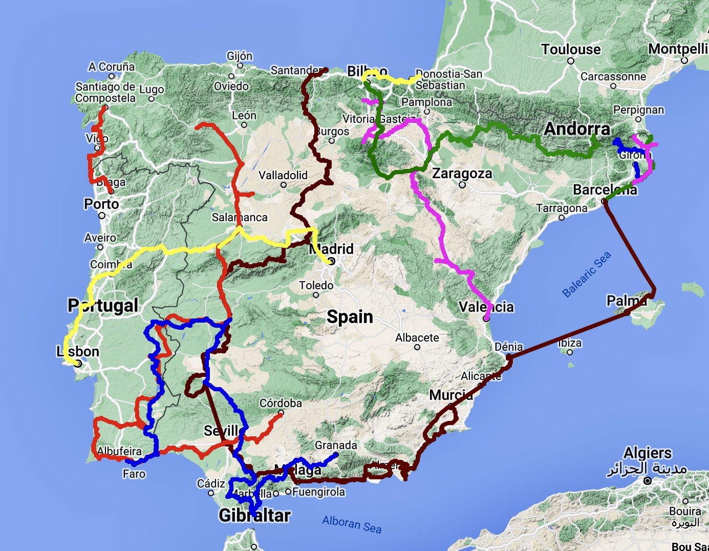When we left Valencia for Barcelona last August (has it really only been a half year since we were falling through Spain last time?), I pulled together all of the times we’d biked in Iberia before, and compiled them into an integrated map: