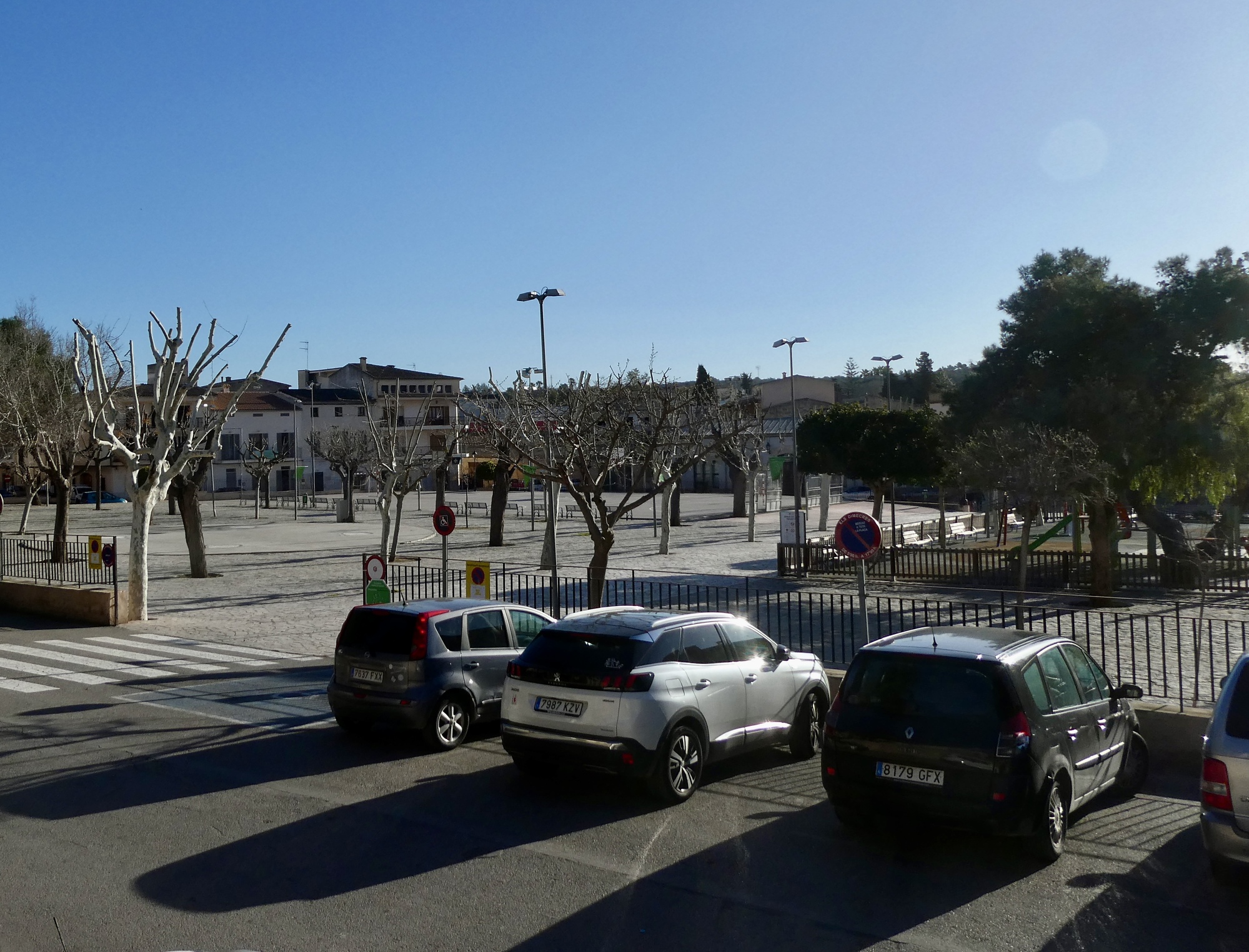 As I walk back to the room I stop to take a photo of the nearly empty plaza, with Eva and Al Walter’s ride to Sineu a decade ago fresh in my mind. In a comment yesterday, Eva described their experience arriving here during the famous Wednesday market: