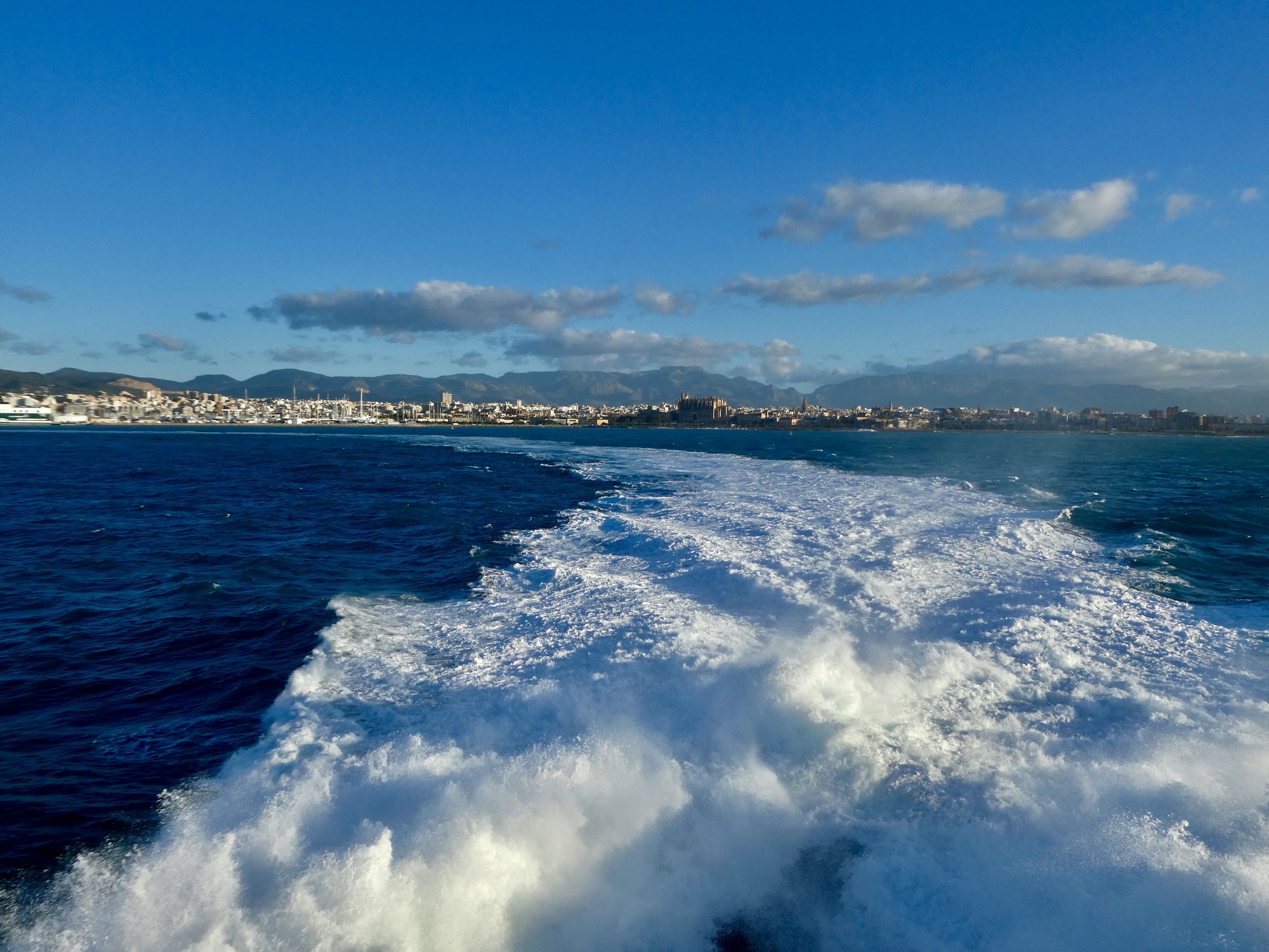 We lean back in our comfortable seats and settle in for the six hour crossing, reflecting on how much nicer this is than the agonizing crossing to Alcudia was two weeks ago. It’s light out so we can enjoy the views, we’re not jet lagged, we’re nowhere near as sick as we were then, and we won’t be arriving in the dark. But before long the ship starts swaying badly enough that a voice over the intercom instructs passengers to return to their seats and I start feeling queasy. I’ve never gotten seasick, but this feels like it could be a first.