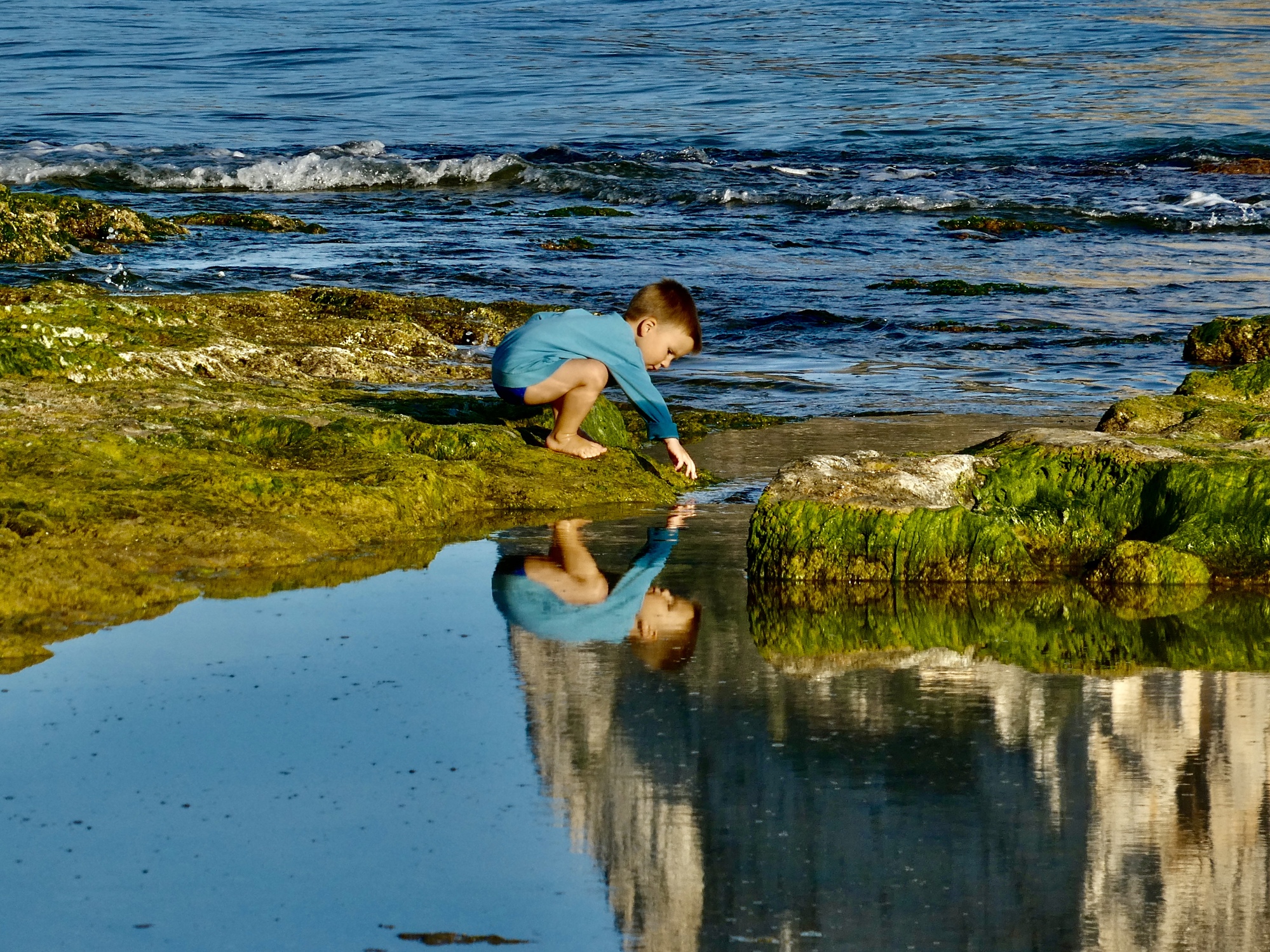 After that we set a time to meet up again back here and then split up. Rachael’s not so fond of walking on the sand, so she hikes a ways along a the path atop the cliffs while I walk west on the beach until I come into the shade beneath the cliffs and turn back. The day couldn’t be any finer than it is - warm, sunny, completely still. Ideal in every way.