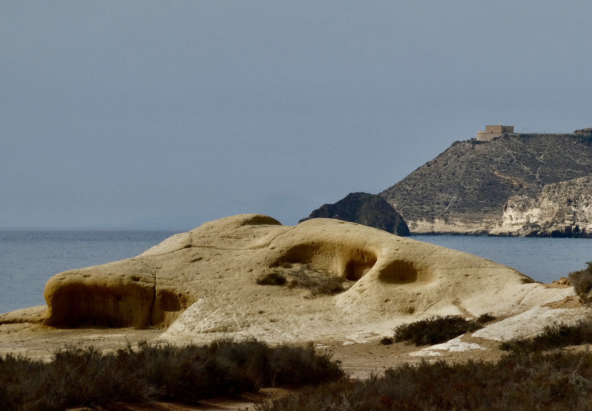 Remains of a small fortress ahead, with the same sort of blocky trapezoidal shape as the ones in Águilas and Calabardina. Another defense against Barbary raiders?