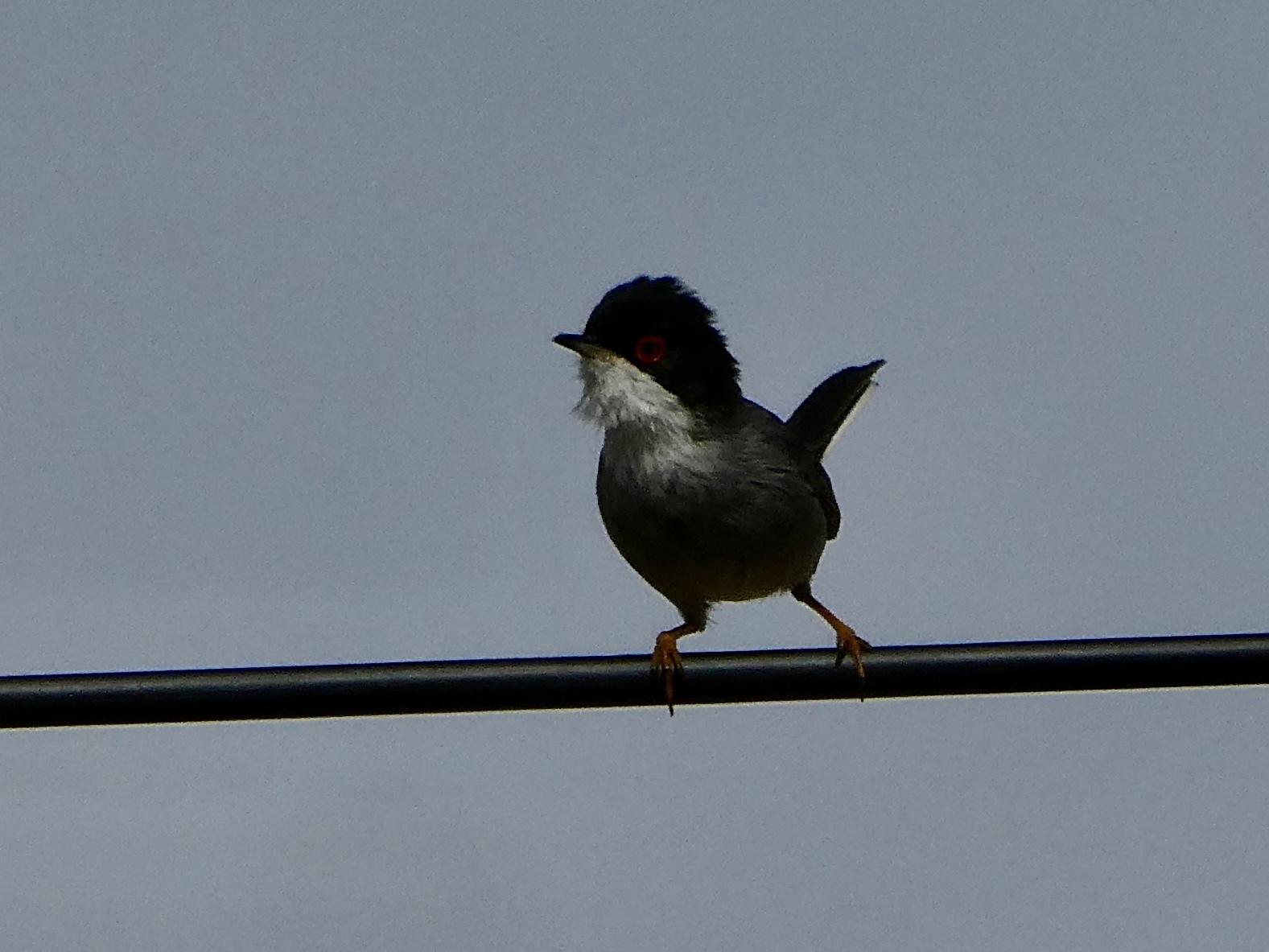 #171: Sardinian warbler. I’m really pleased by this sighting, another lifetime first. I’m pretty sure it’s the same as a bird I saw yesterday, but he was too far off and the lighting was too poor to pick up the details.