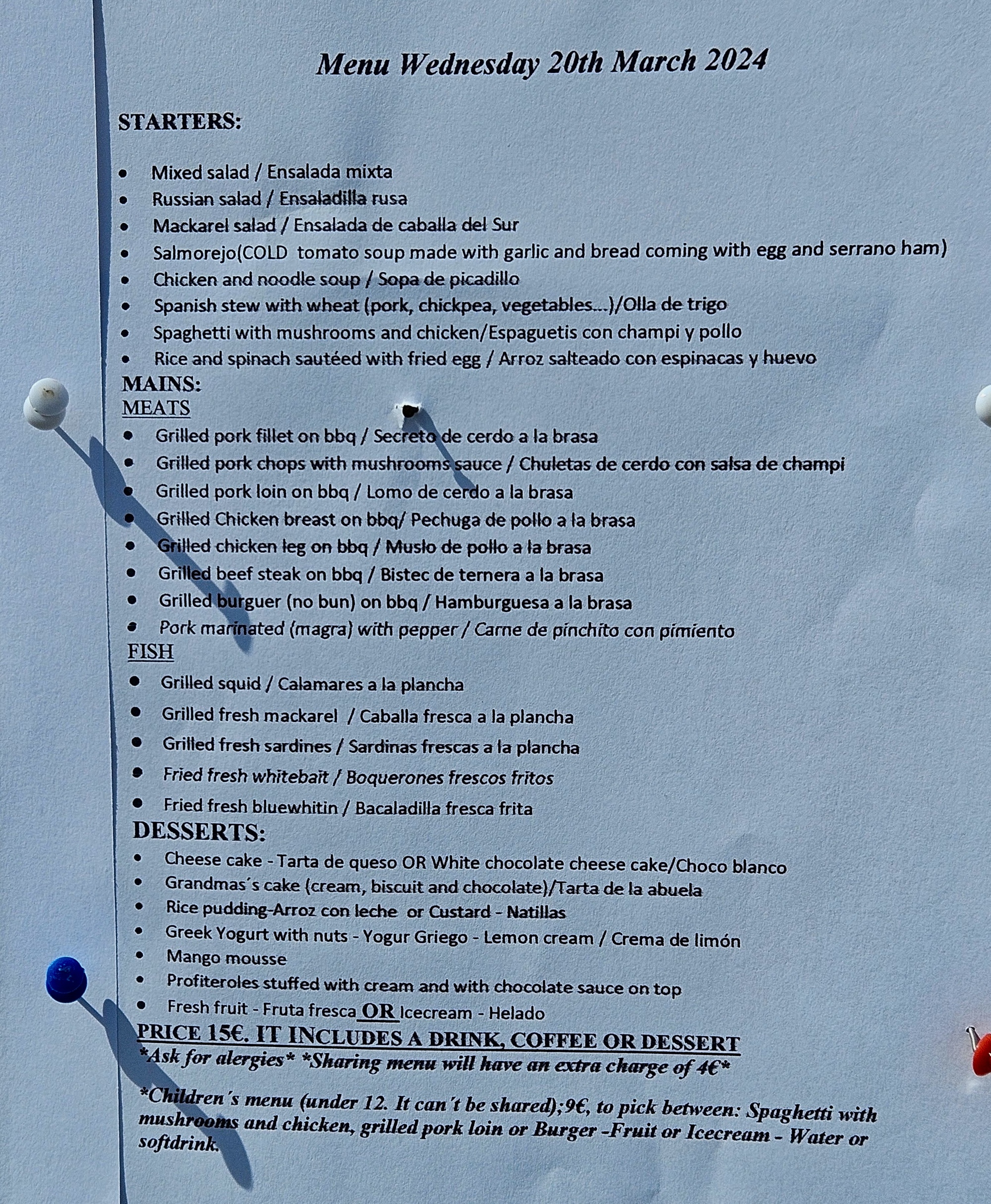 Rachael as usual has scouted out the restaurant scene and picked out a promising place about a quarter mile away, but as we biked in I encouraged us to stop and check out the menu of the day on the place right across the street from the Continental. It’s a good thing we did, because the menu looks great and is another bargain at a flat €15 each. It’s also very popular, and we’re lucky to score a table by an open window where we’re in the shade but can enjoy the refreshing breeze wafting in.