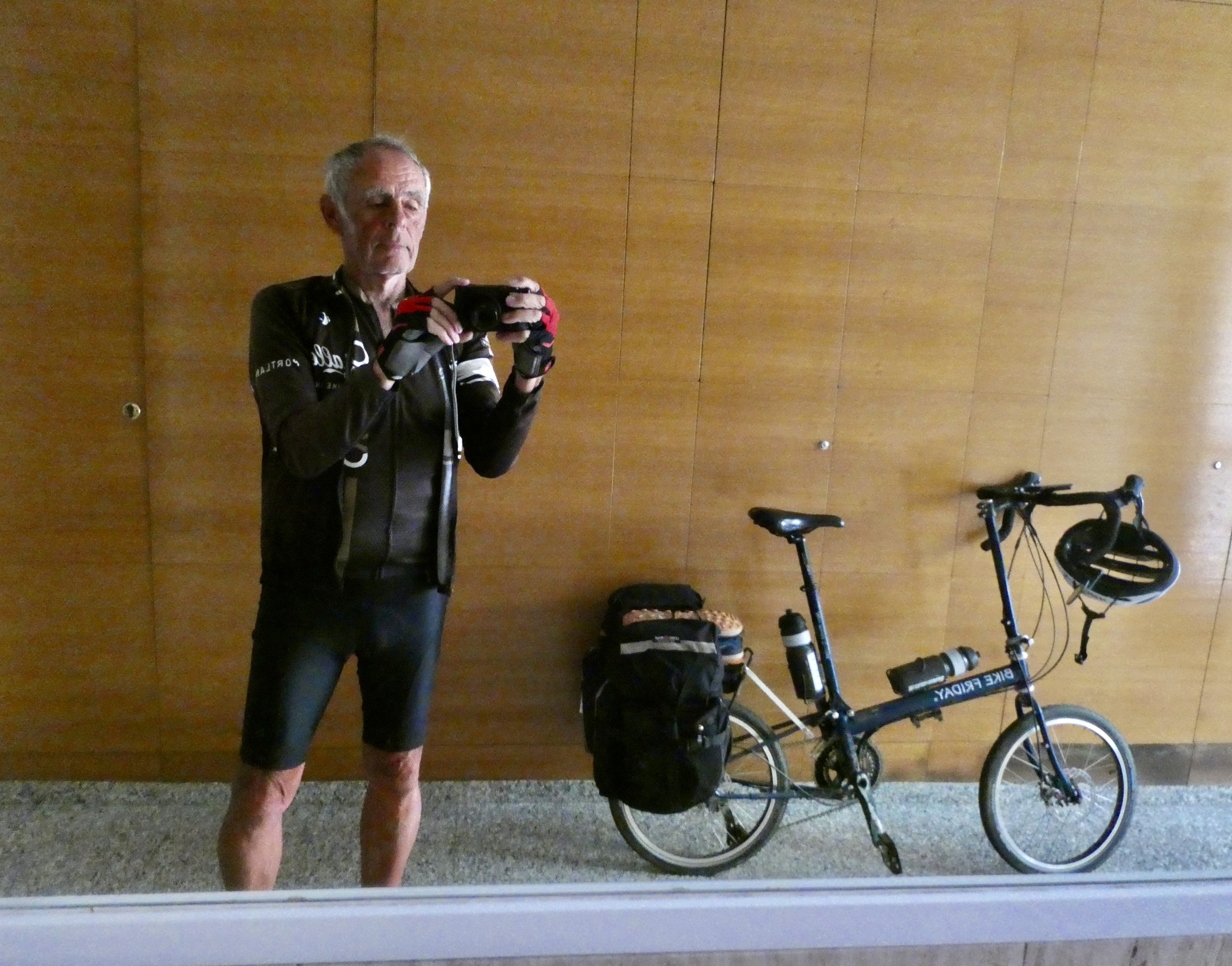There’s only one elevator, and it’s only large enough for one bike at a time. Might as well amuse myself while I wait for partner to descend and join me.