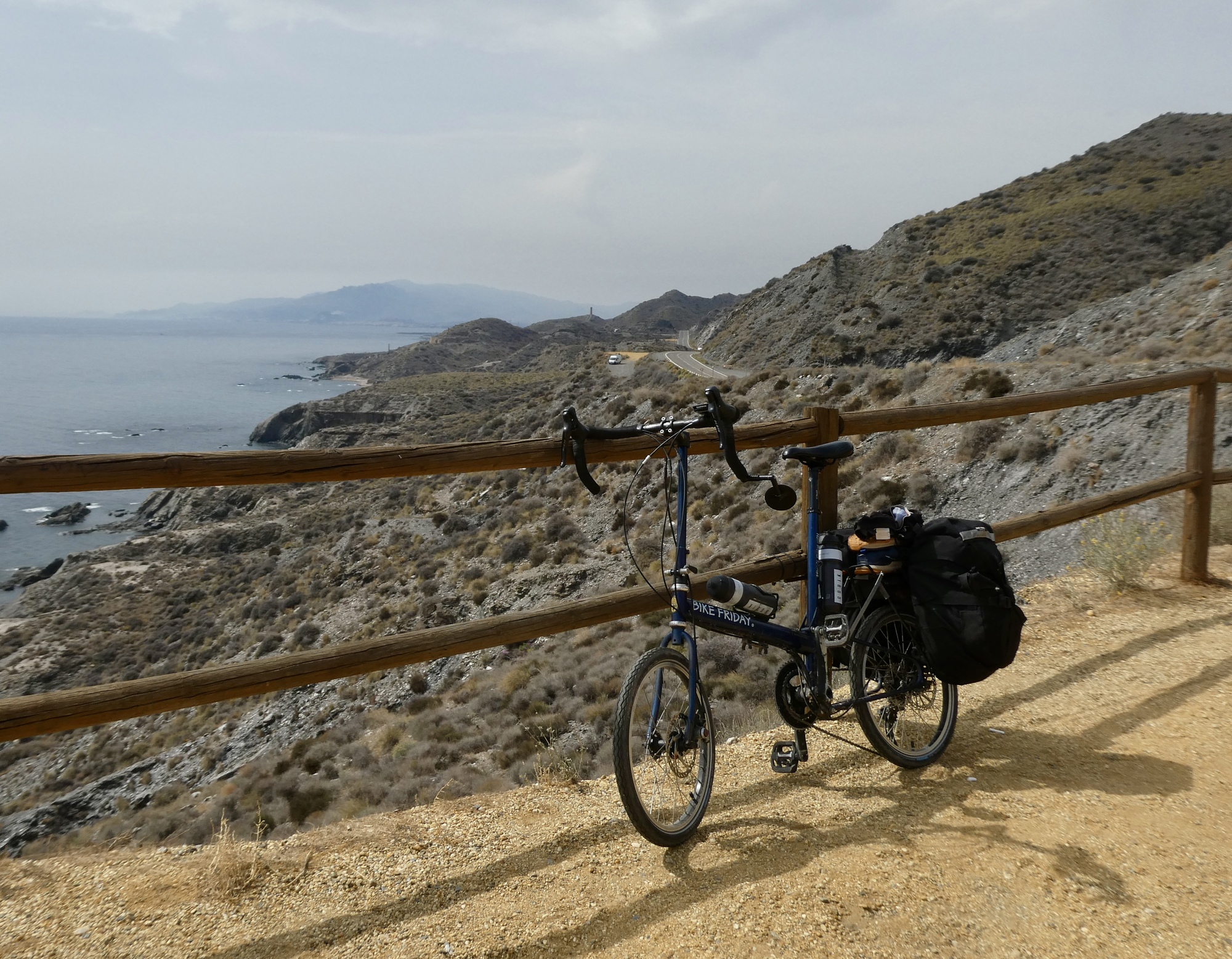 Today’s ride is quite easy, one of the lightest ones of the tour. Once we drop from Mojácar the riding is quite flat most of the way to Aguilas. And, after the nearly unbroken drama of the past several weeks, a bit uninteresting. It begins and ends with long stretches of flat beaches and small coves separated by smaller headlands, and has been almost completely taken over by coastal tourism and large resort hotels. A lot of this development looks quite new, and it makes me a bit sad to envision the string of quiet fishing villages that must have existed here before they were inundated by mass tourism. The riding is easy enough though, and there are enjoyable miles where you can bicycle on pretty seaside promenades - but it’s not really the Andalucia we came to see.