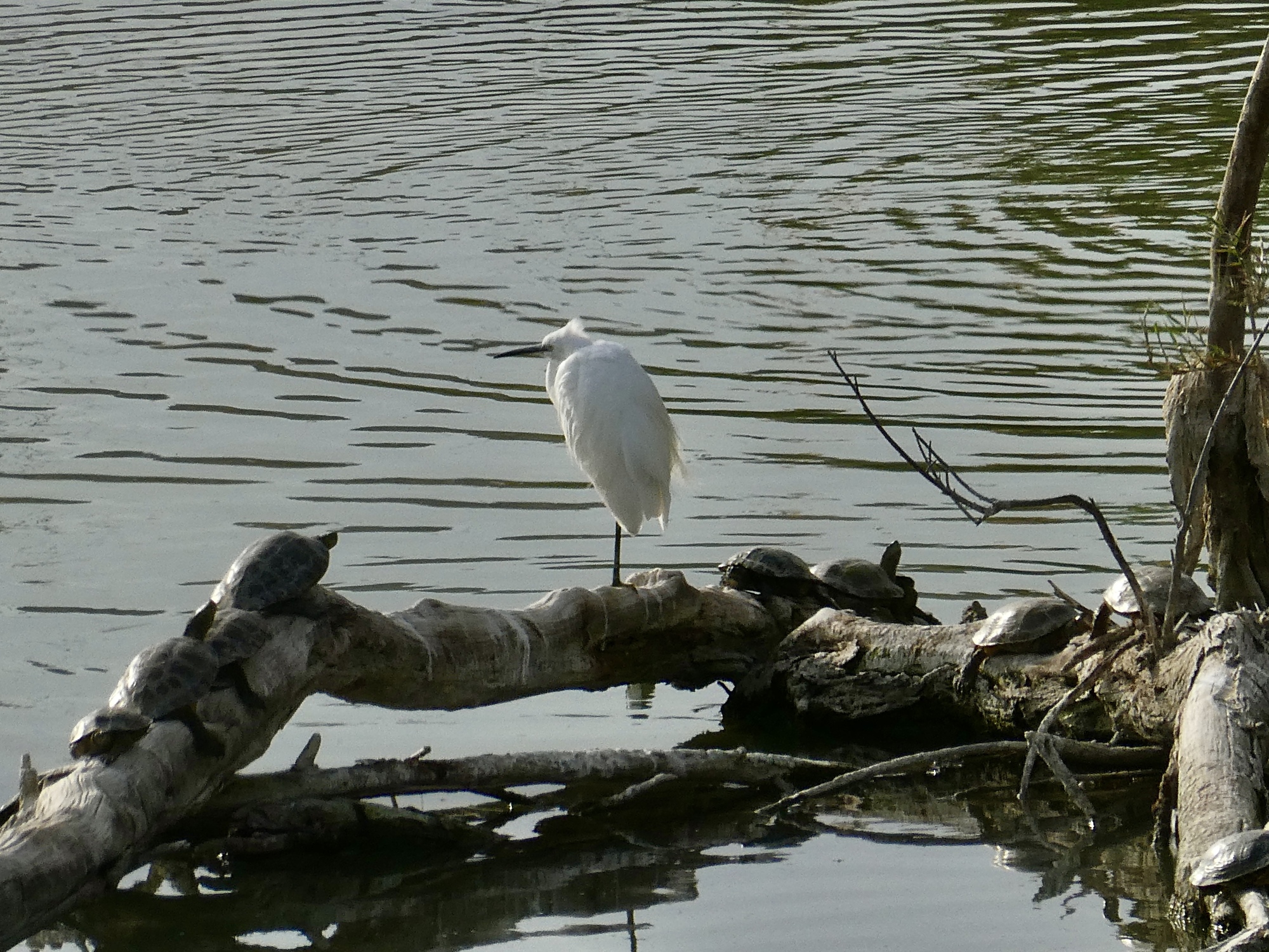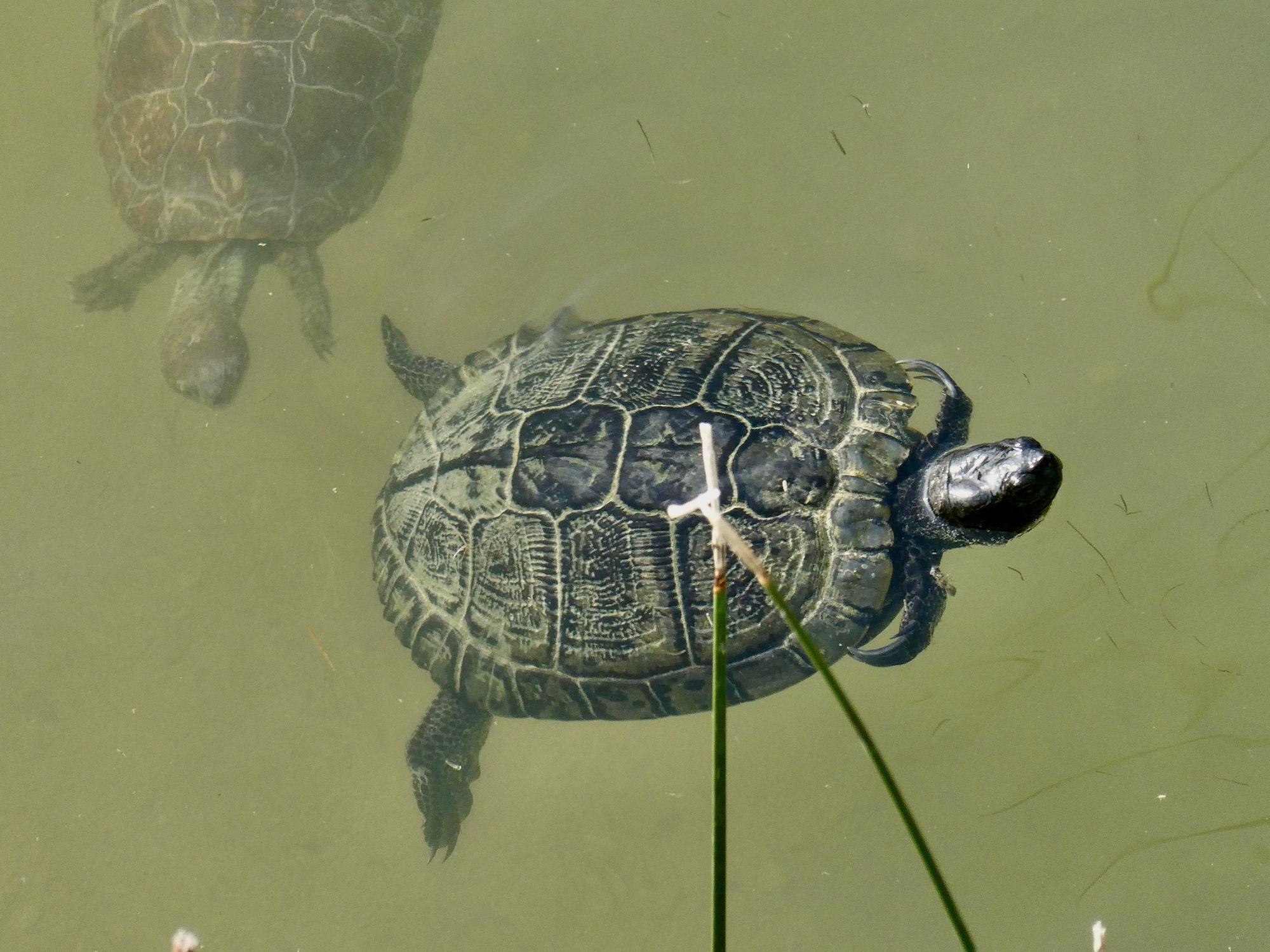 There’s not much to Rio Aguas when I get there - it’s a tiny waterway without enough flow or oomph to make it all the way to the sea. And there aren’t actually that many birds out either, but enough to hold my interest for a half hour or so: the night heron, an egret, the usual cormorants, coots and mallards, shovelers, and my first moorhen of the year. And turtles, tons of turtles. What really delights me though this afternoon is an elusive, tiny bird that perches in the reeds on the side of the stream and periodically dashes out across the water and back, presumably to snatch a passing bug. It reminds me of a flycatcher by behavior, but a small wren by appearance. I’ve never seen a bird quite like it, and even though there are a half a dozen of them here it takes awhile before one finally lands near enough and exposed enough that I can get a credible shot.