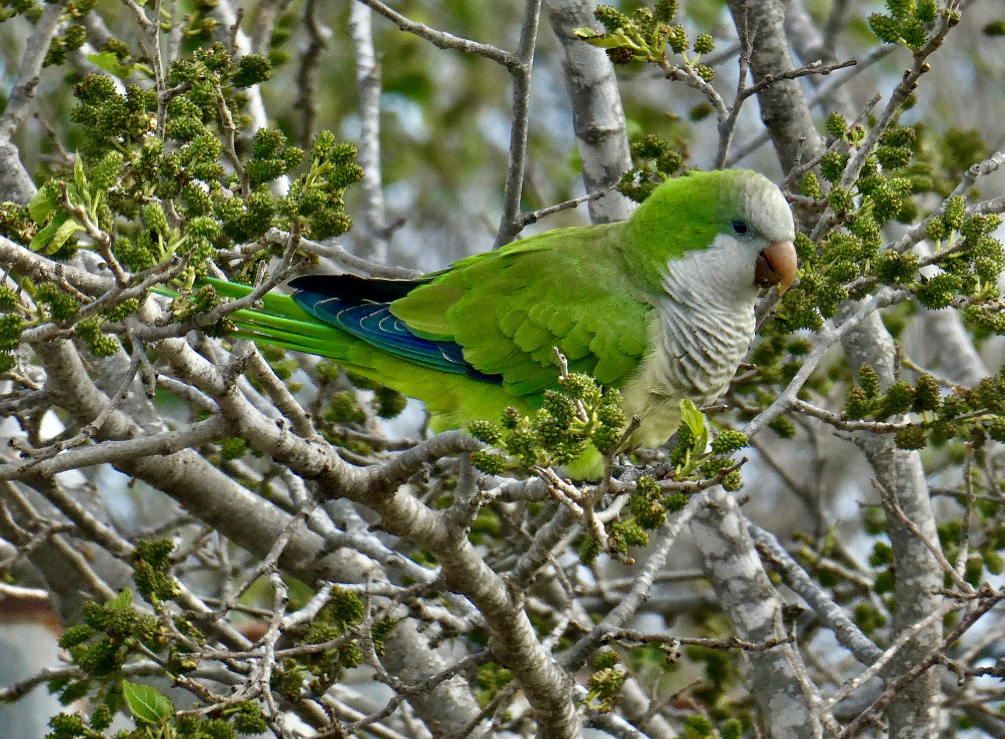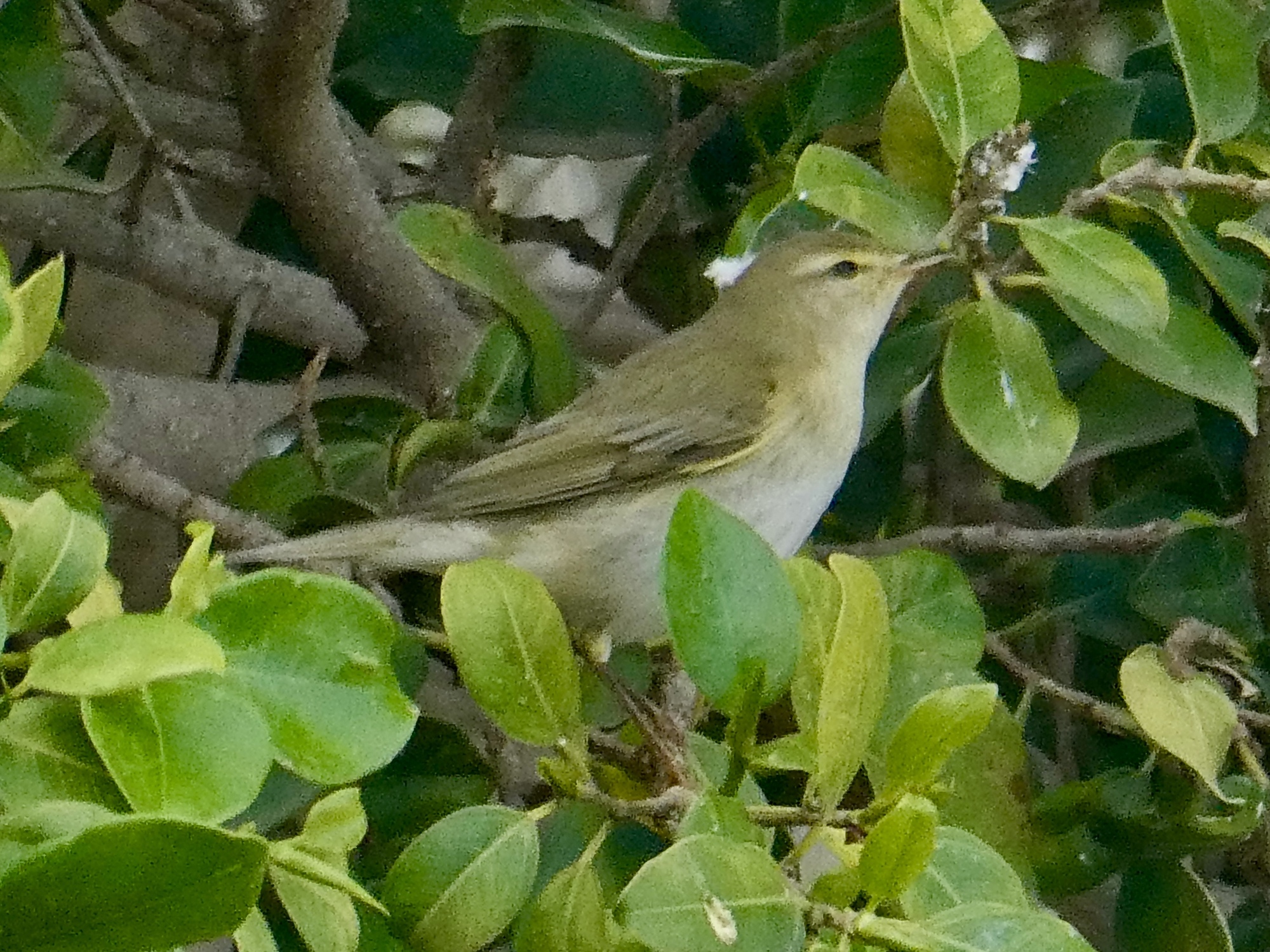 What it’s like is that it’s pretty attractive - a nice path, and one that branches off through the long, narrow park I’m following. And when I come back through the park it turns out that it’s a pretty fair birding spot too. I see my first monk parakeets of the year, and my first willow warbler ever. And a hoopoe; and then another; and then two more. Four hoopoes! Hoopee!