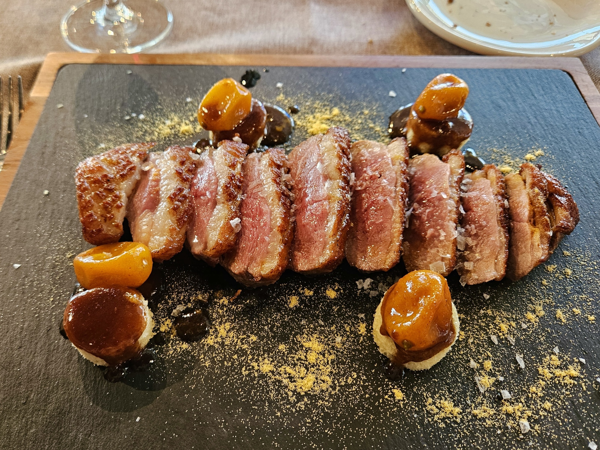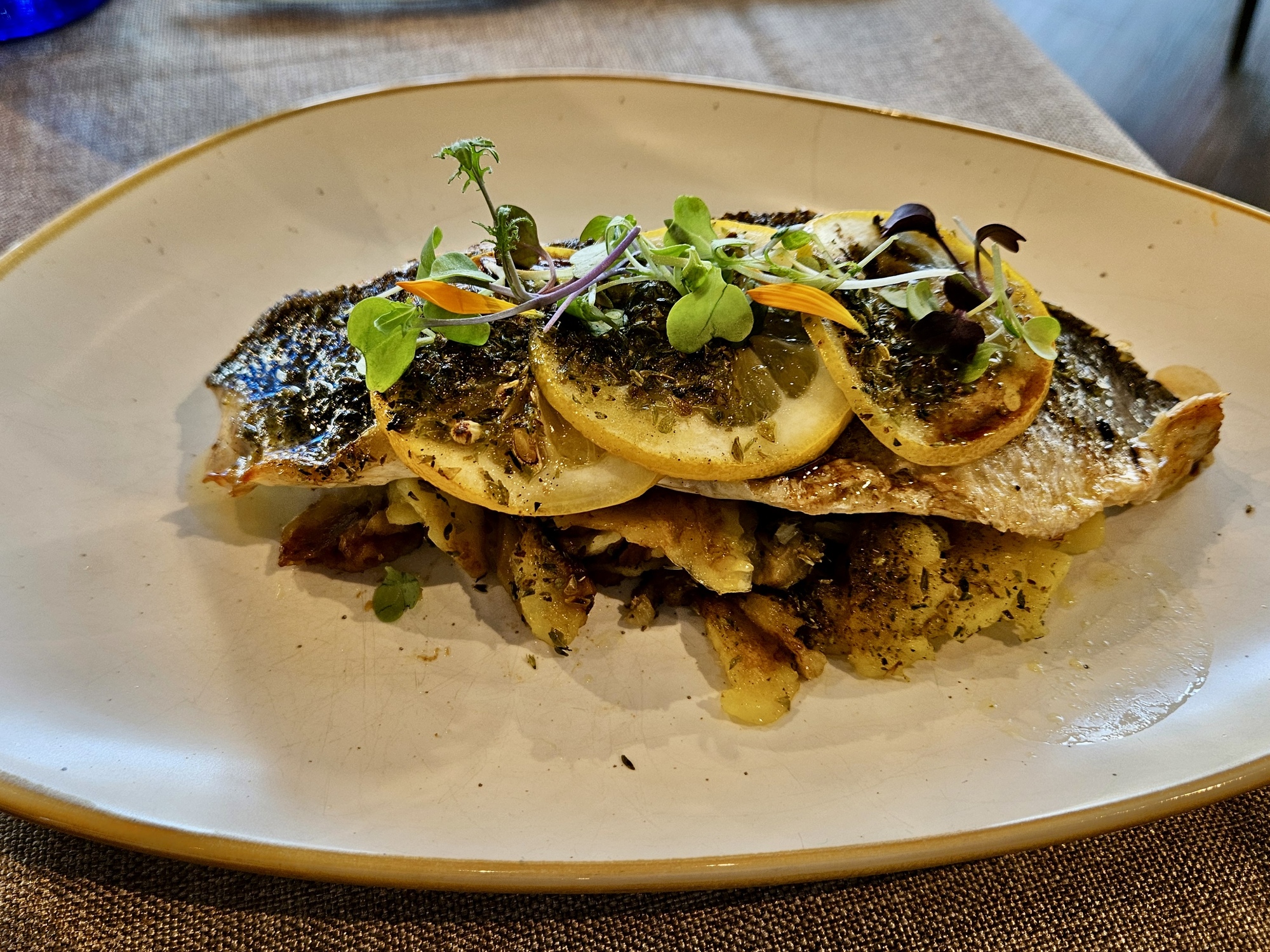 We arrive back at the hotel within five minutes of each other. There’s barely time for me to change and clean up before heading out for our 2:15 lunch reservation. There’s just time for us to stop in on the way at the restaurant we were turned away from yesterday and book ourselves a meal for there tomorrow.