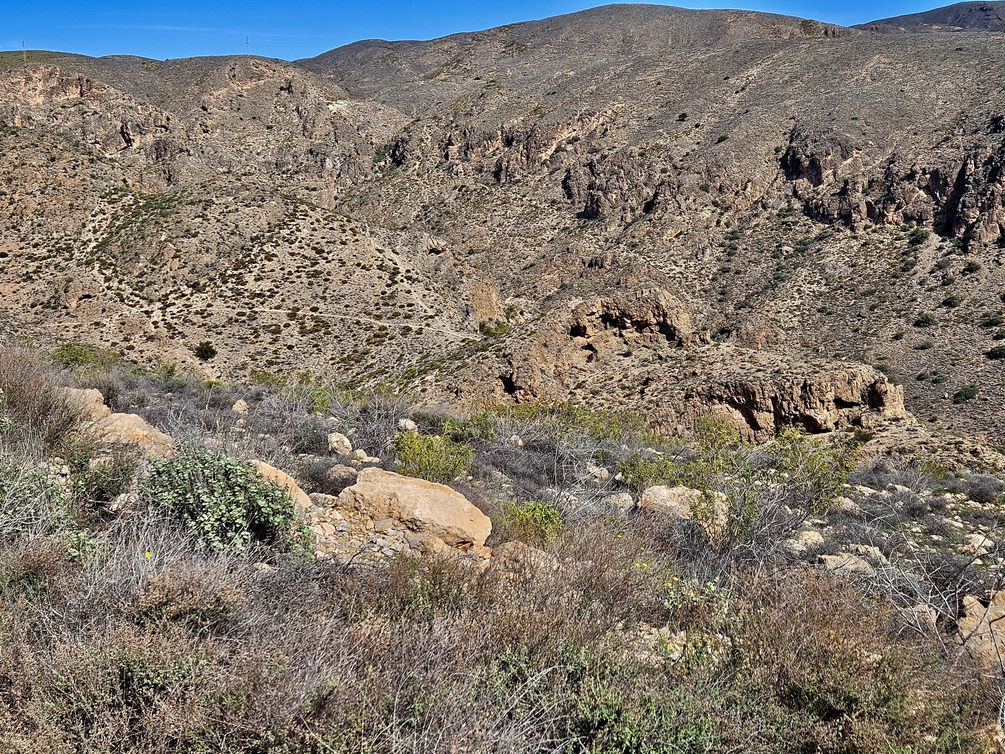 I’ve biked to the east, when we cycles into town from San Jose three days ago. Yesterday I biked west along the coast. South is out because of that annoying large body of water between us and Africa, as is the northwest because of thosesteep, roadless Sierra Nevada hills that begin right on the edge of the city. That leaves north up the Andarax valley as unexplored territory, so I set out on a 38 mile out and back route I’ve mapped out for myself to Gador and a bit beyond.