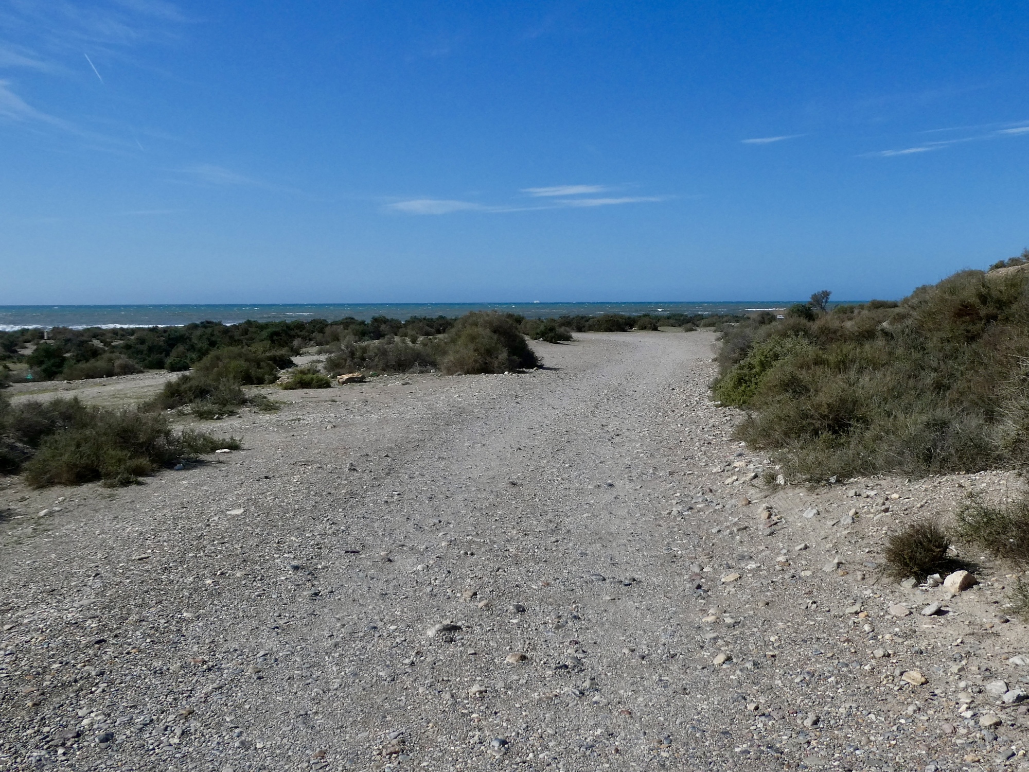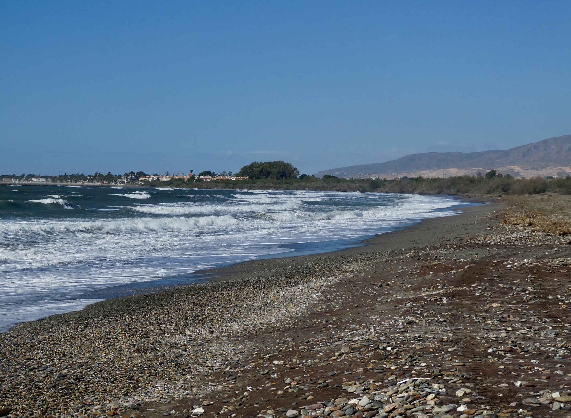I soon reach the beach and enjoy some impressive sea views - east to Cabo de Gato, and west back toward town.
