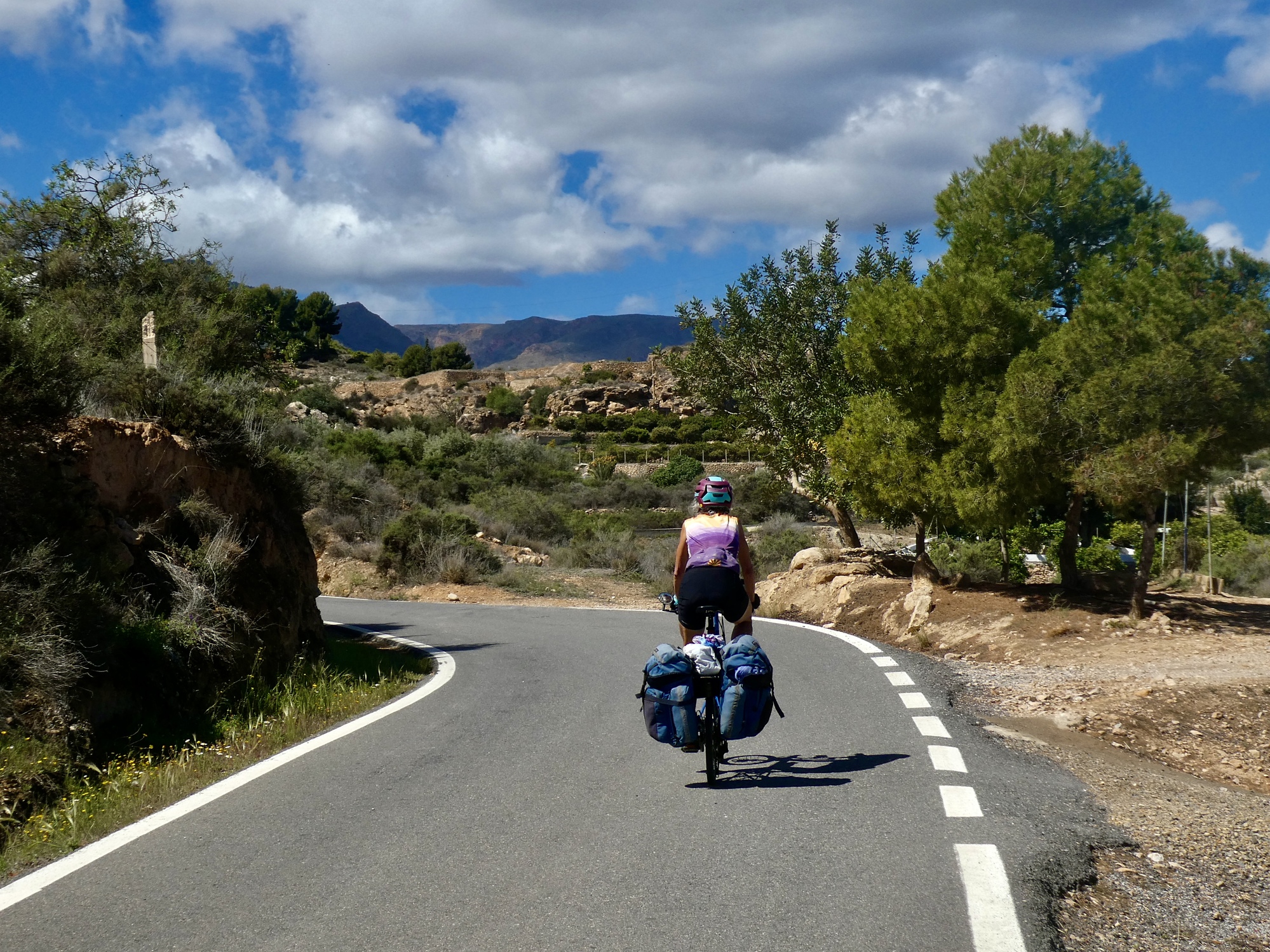As we cross the bridge into Gádor, I stop for photos while Rachael goes ahead to tackle the climb. As long as I’m stopped anyway I finally break out the chain lubricant I just picked up. I’ve been cursing myself for the last several miles as the grinding gears worsened, wondering why I didn’t have them checked out when we were in the best bike store we’ll see for days. So it’s a relief to hear the sweet silence when I start biking again.