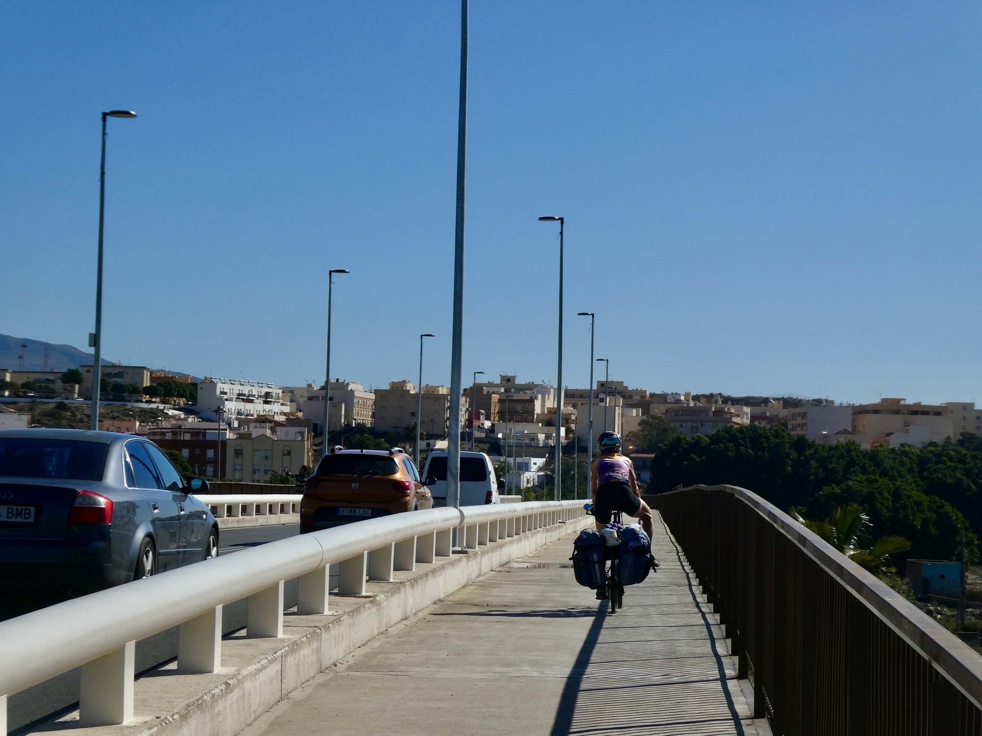 Almeria is really a bike friendly city with a good network of excellent bike paths. We ride them for the next three miles as we angle up through the east side of the city, leaving them only when we come to the bridge across the Andarax.