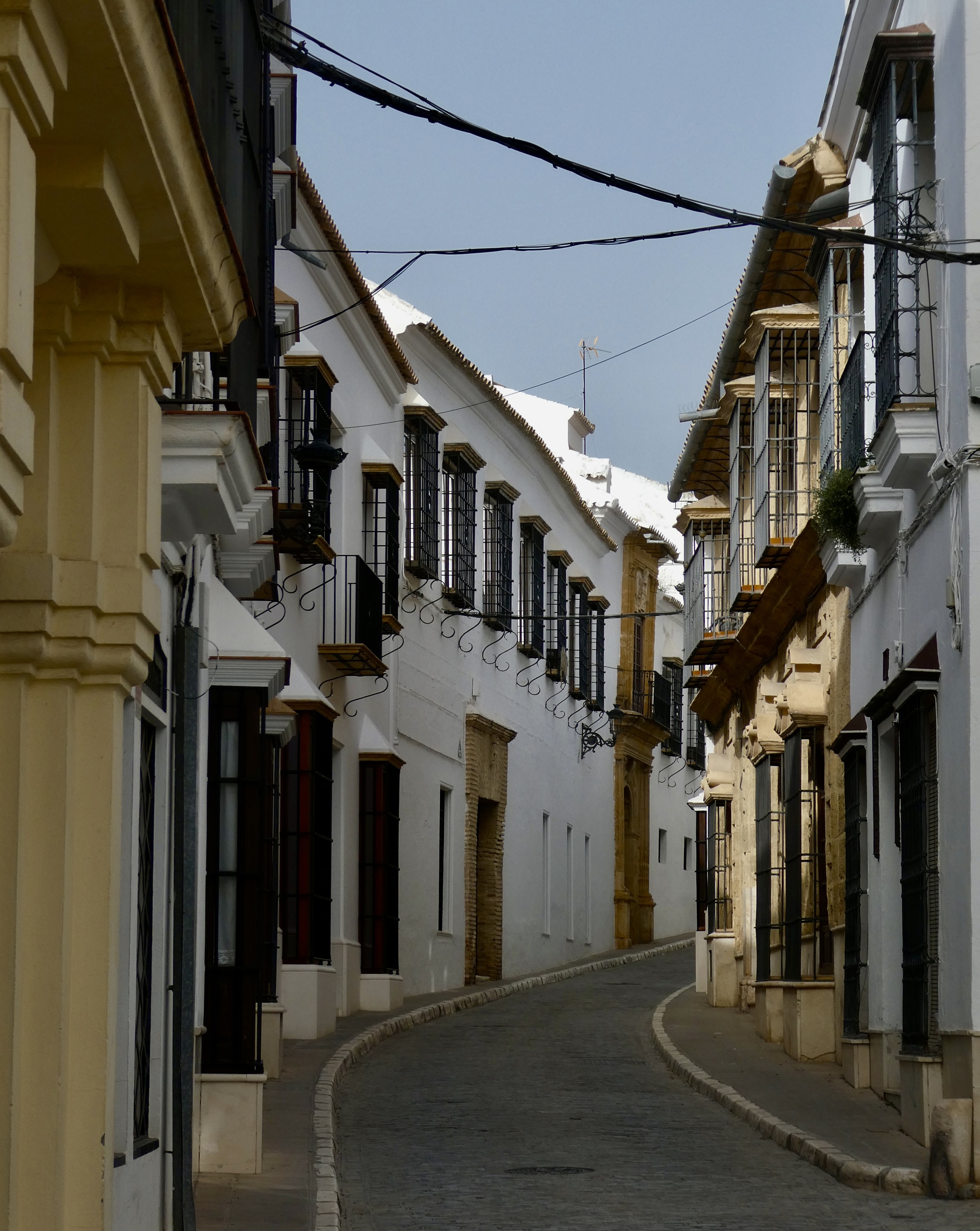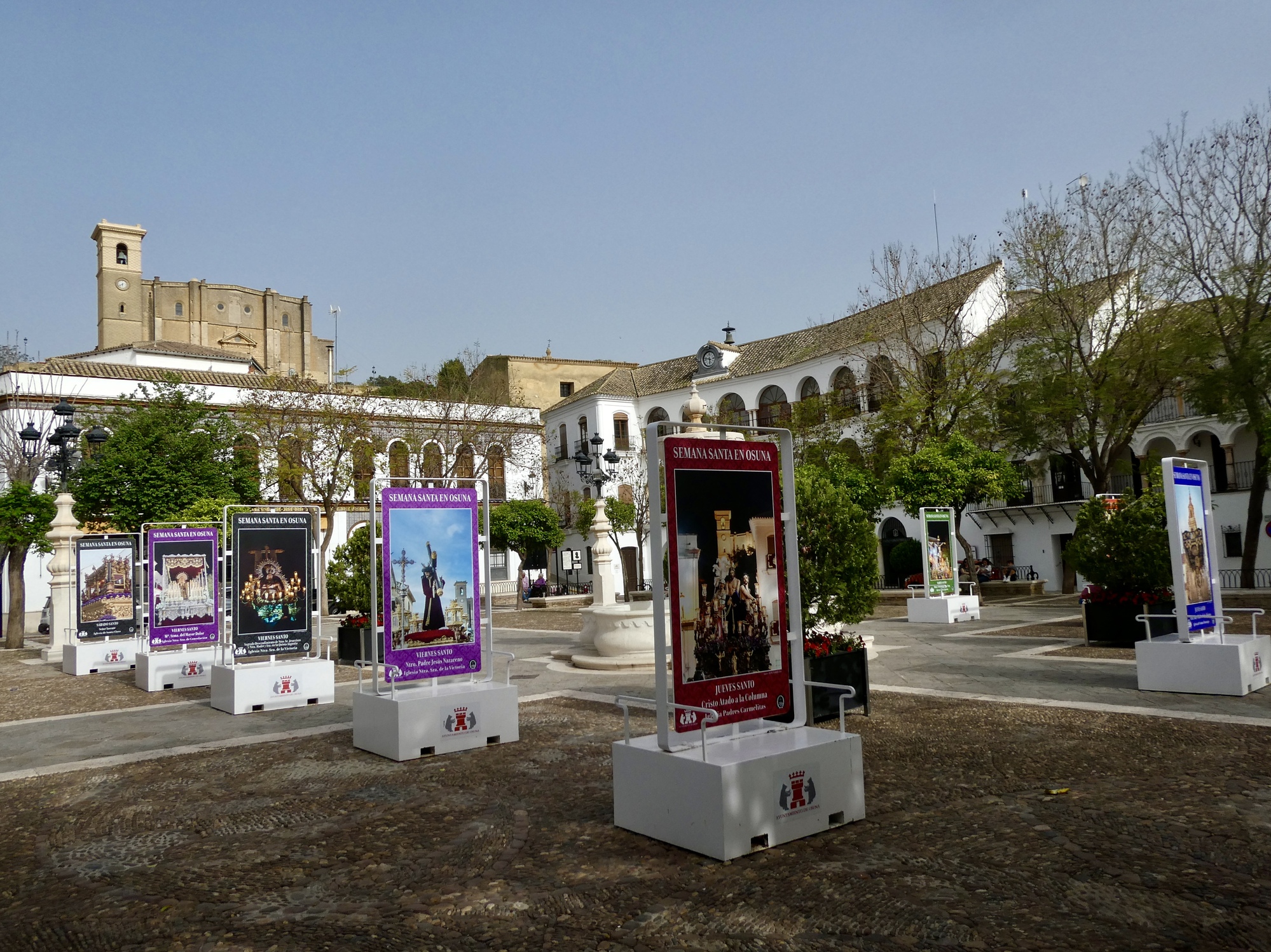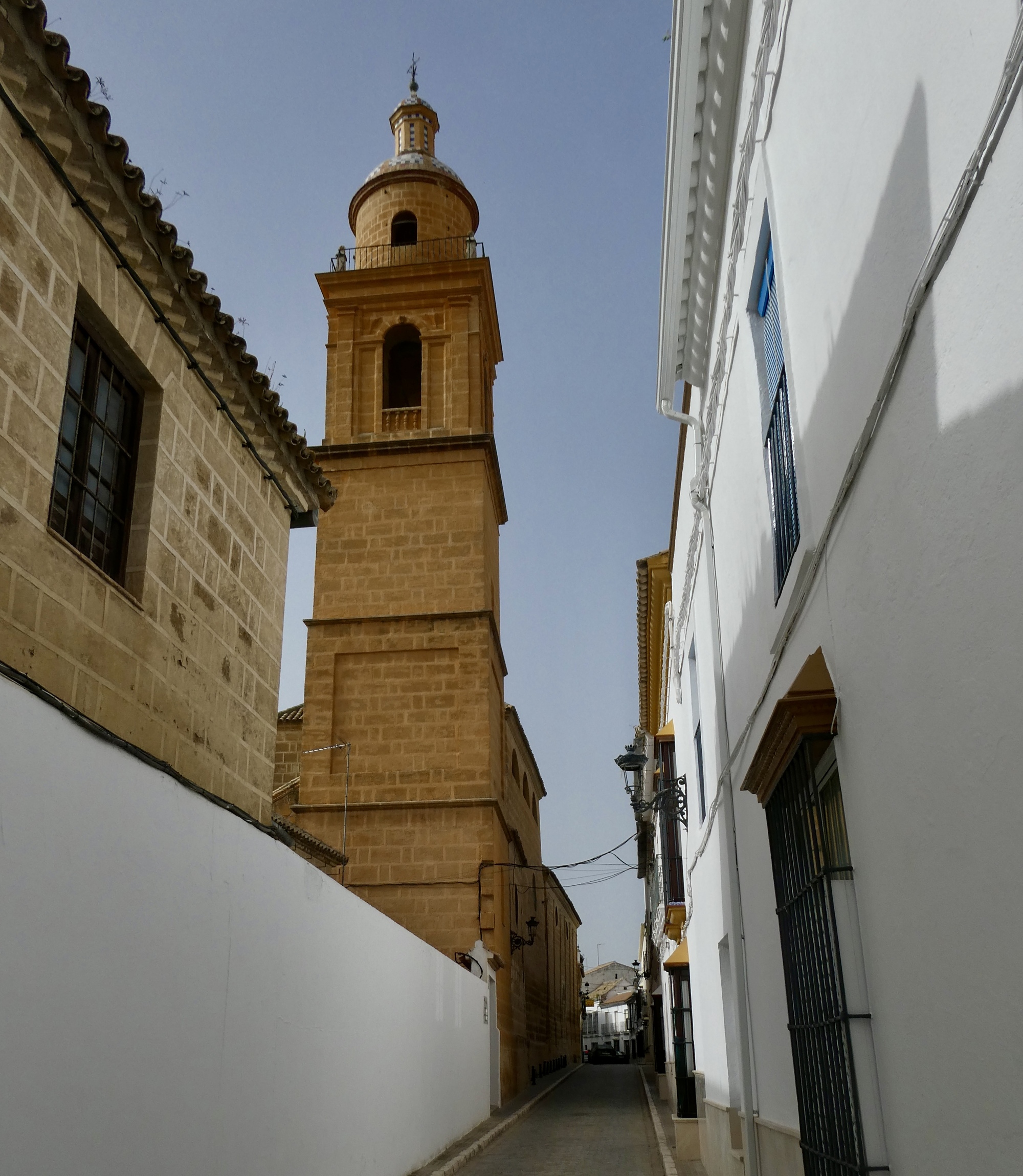 Osuna is a largish place, a hill town with a population of 20,000 - almost large enough to feel like a small city. The historical core though is small enough to be easily explorable by foot, with its fair share of interesting monuments. As much as those though, what most impressed me was the street architecture, its narrow stone paved streets walled in by the by now familiar two storied row houses that characterize the towns around Seville, their windows invariably protected by wrought iron grids. There’s an upgrade in quality here though, with the walls an almost blinding white and with many of the places near the center feeling like mansions.