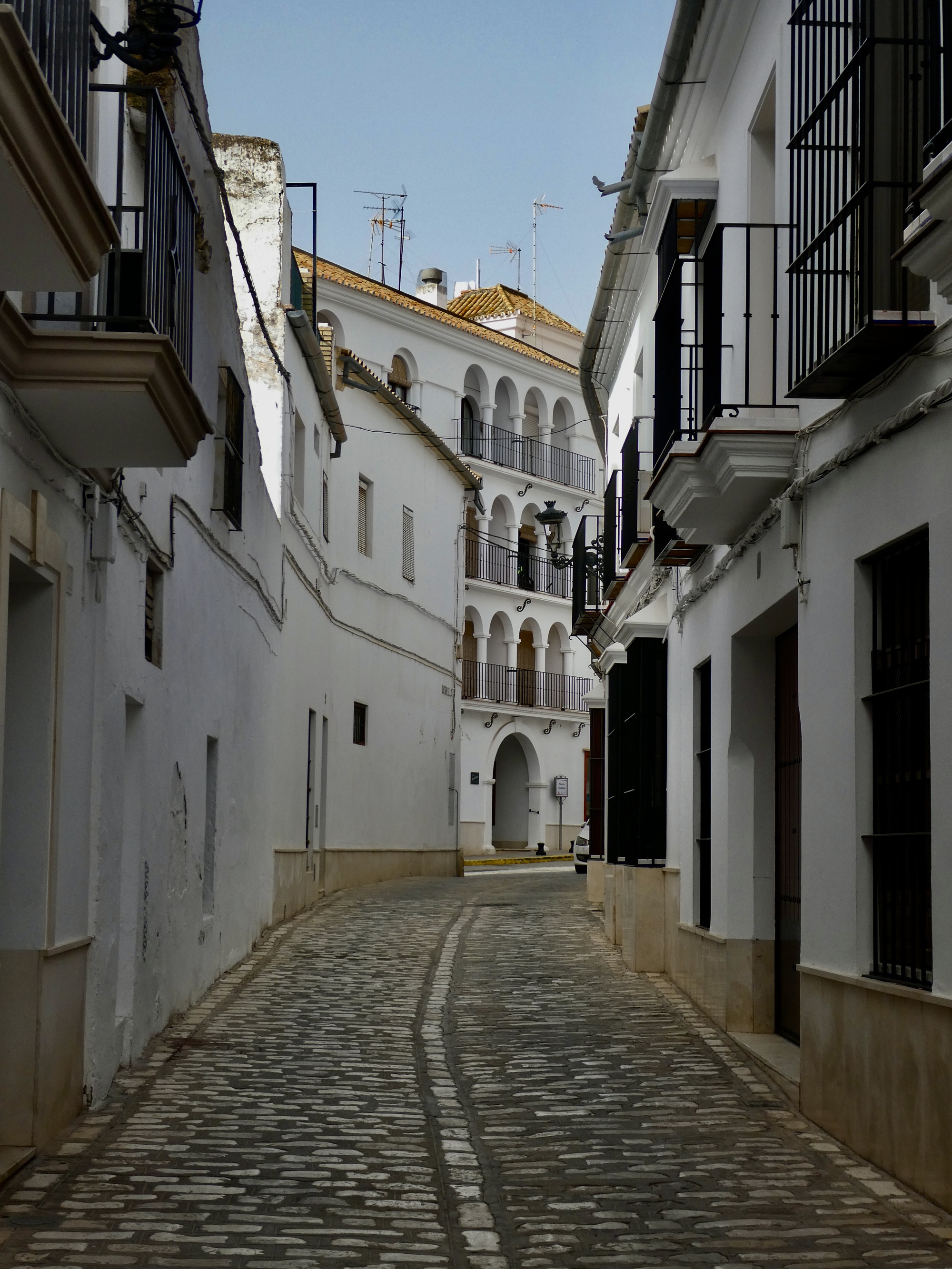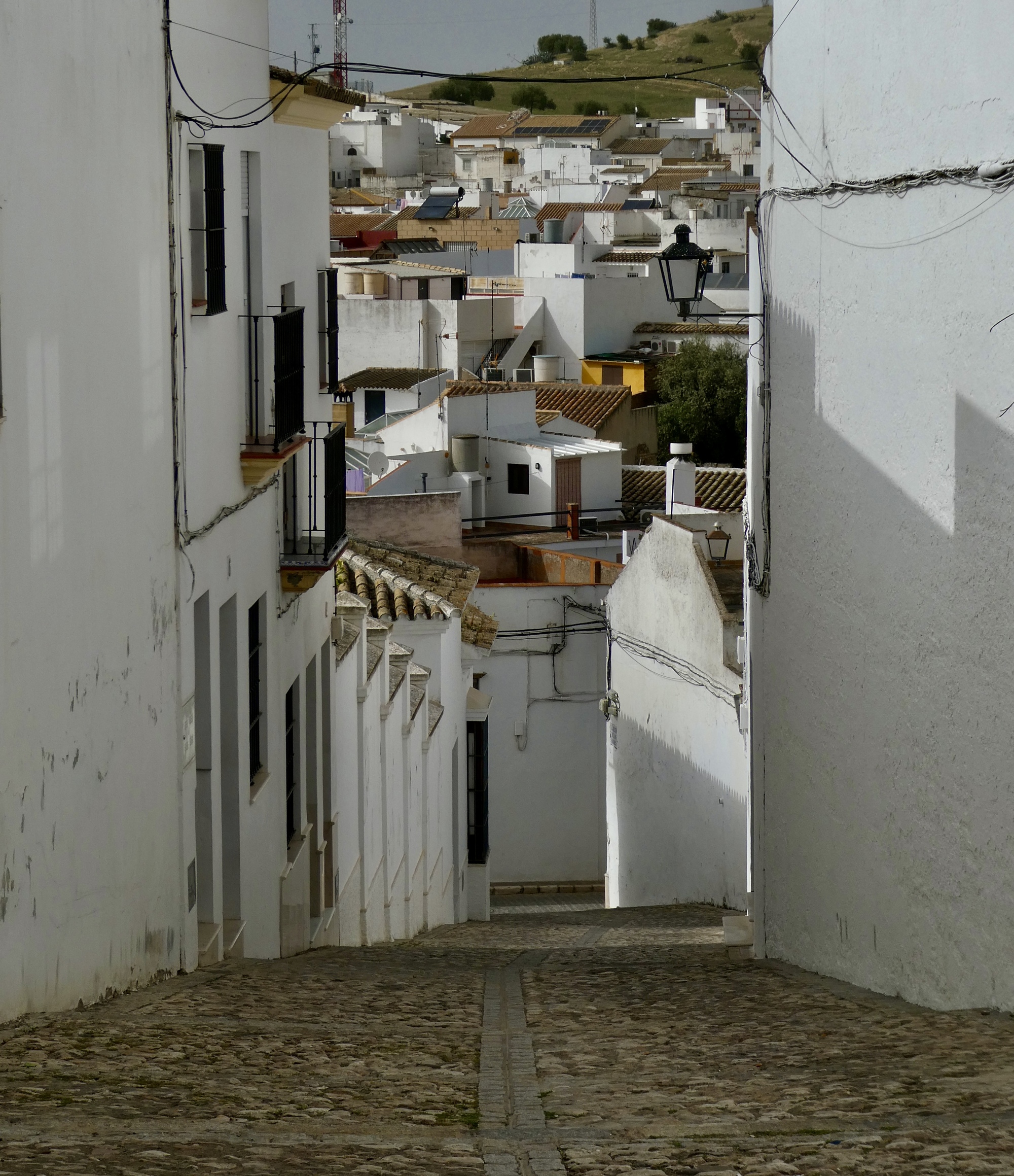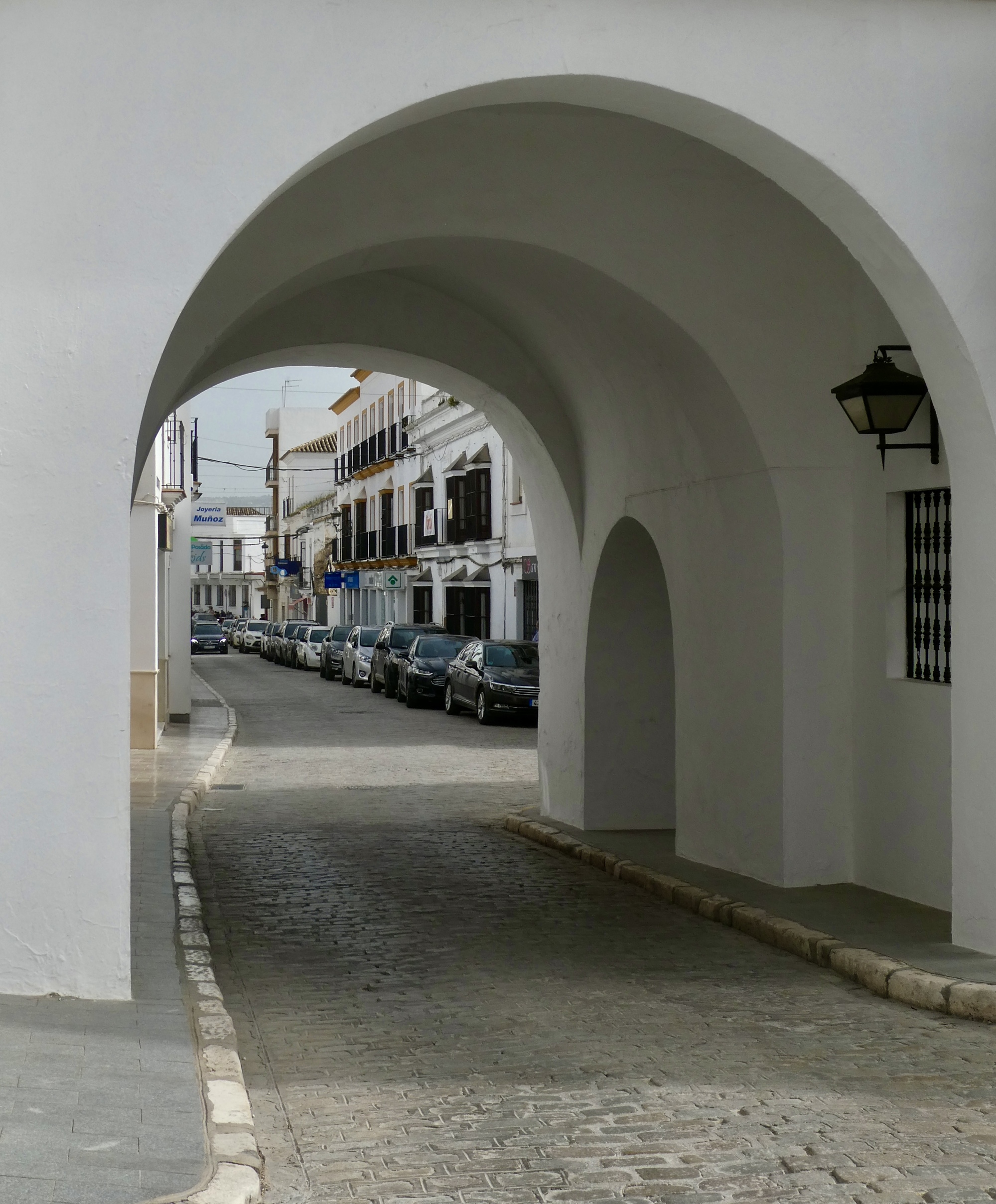 Osuna is a largish place, a hill town with a population of 20,000 - almost large enough to feel like a small city. The historical core though is small enough to be easily explorable by foot, with its fair share of interesting monuments. As much as those though, what most impressed me was the street architecture, its narrow stone paved streets walled in by the by now familiar two storied row houses that characterize the towns around Seville, their windows invariably protected by wrought iron grids. There’s an upgrade in quality here though, with the walls an almost blinding white and with many of the places near the center feeling like mansions.