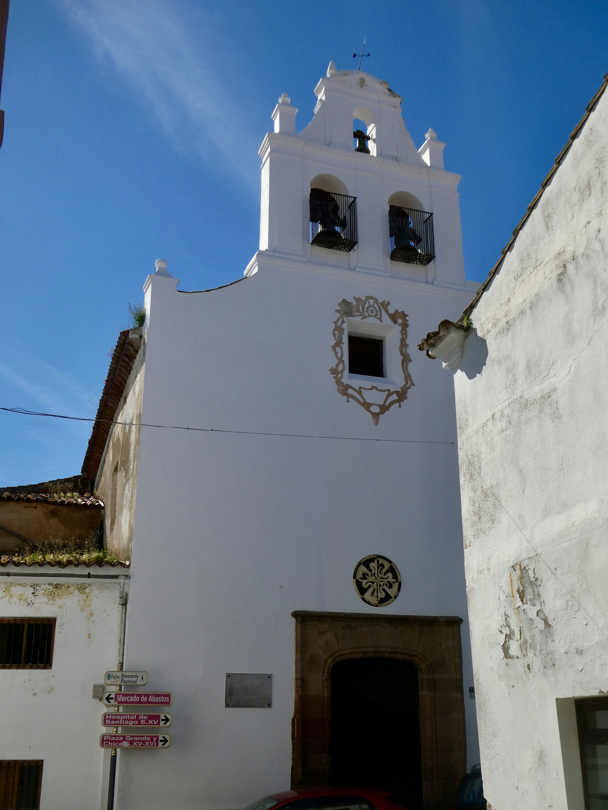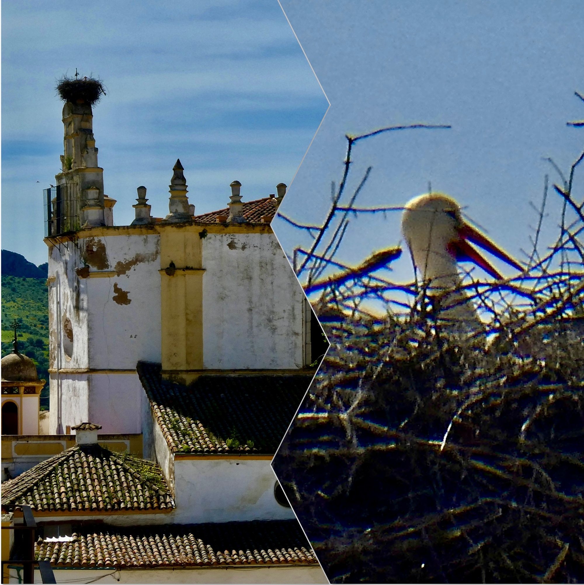 We’re staying in an apartment unit in Hotel La Muralla, a place built into the historical walls of the city and directl adjacent to one of the historic arched gates that looks and sounded like it would be neater than we experienced. On the plus side, when we first checked into our room and looked out the window we saw a stork just across the intersection atop a small church.