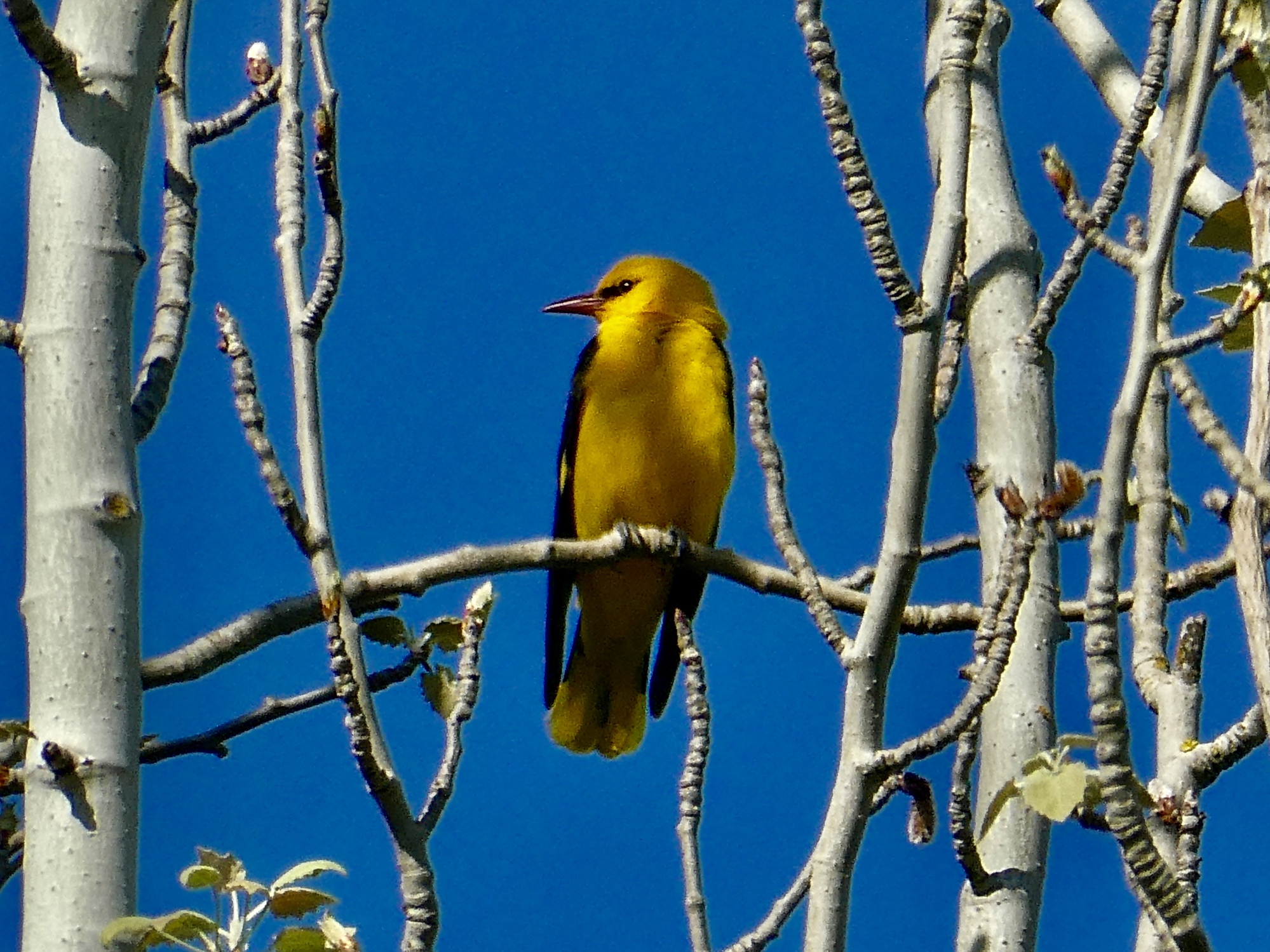 I wasn’t quite as ambitious, which probably won’t surprise you either. I only went eight miles, and by bike - a modest amount of exercise that easily meets the team’s technical definition of a rest day. They were a terrific eight miles though, spent getting a better look at the bridge and then slowly cruising through the riverside parks looking for birds. I found some - four new species for the year, of which two are lifers for me. I expected to eventually see the first grey heron and grey lag goose of the year, but I was thrilled by the brilliant golden oriole and striking little penduline tit.
