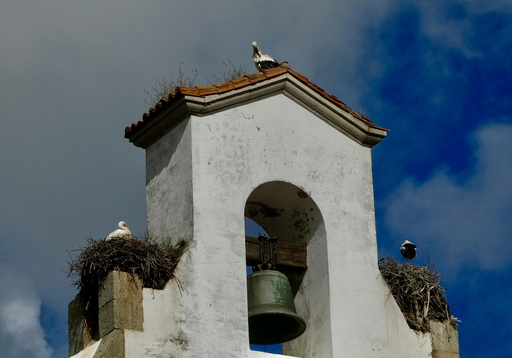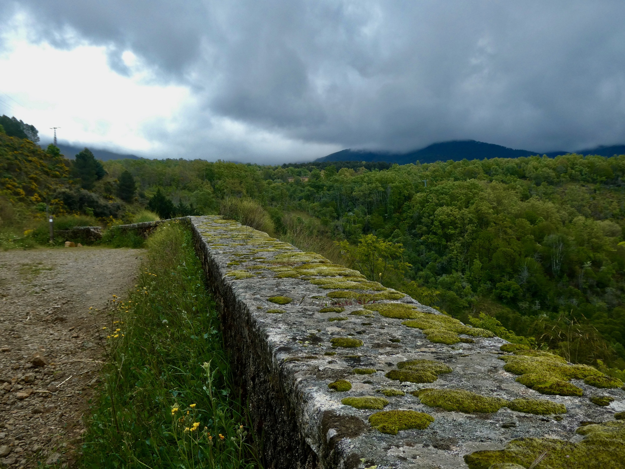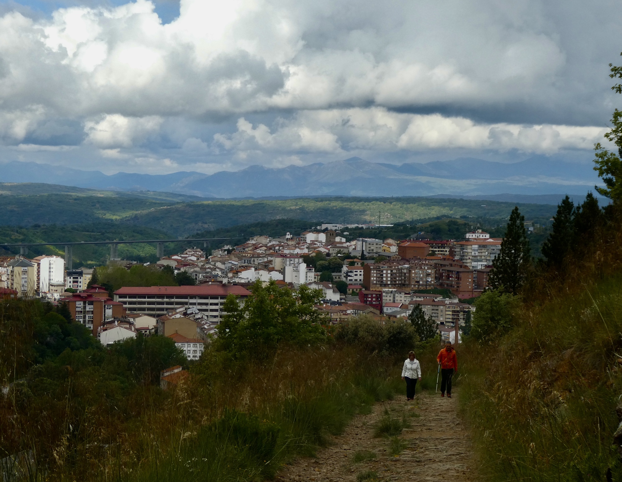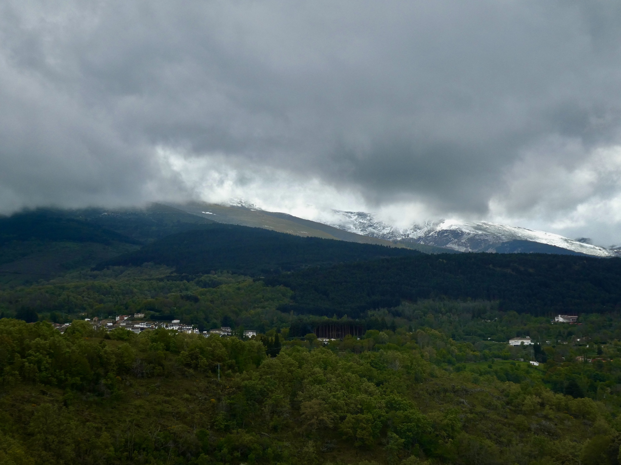 It’s pretty solidly overcast but there’s enough of a break for a glimpse at the Sierra de Gredo range. I think that’s the village of Candelario on the left.