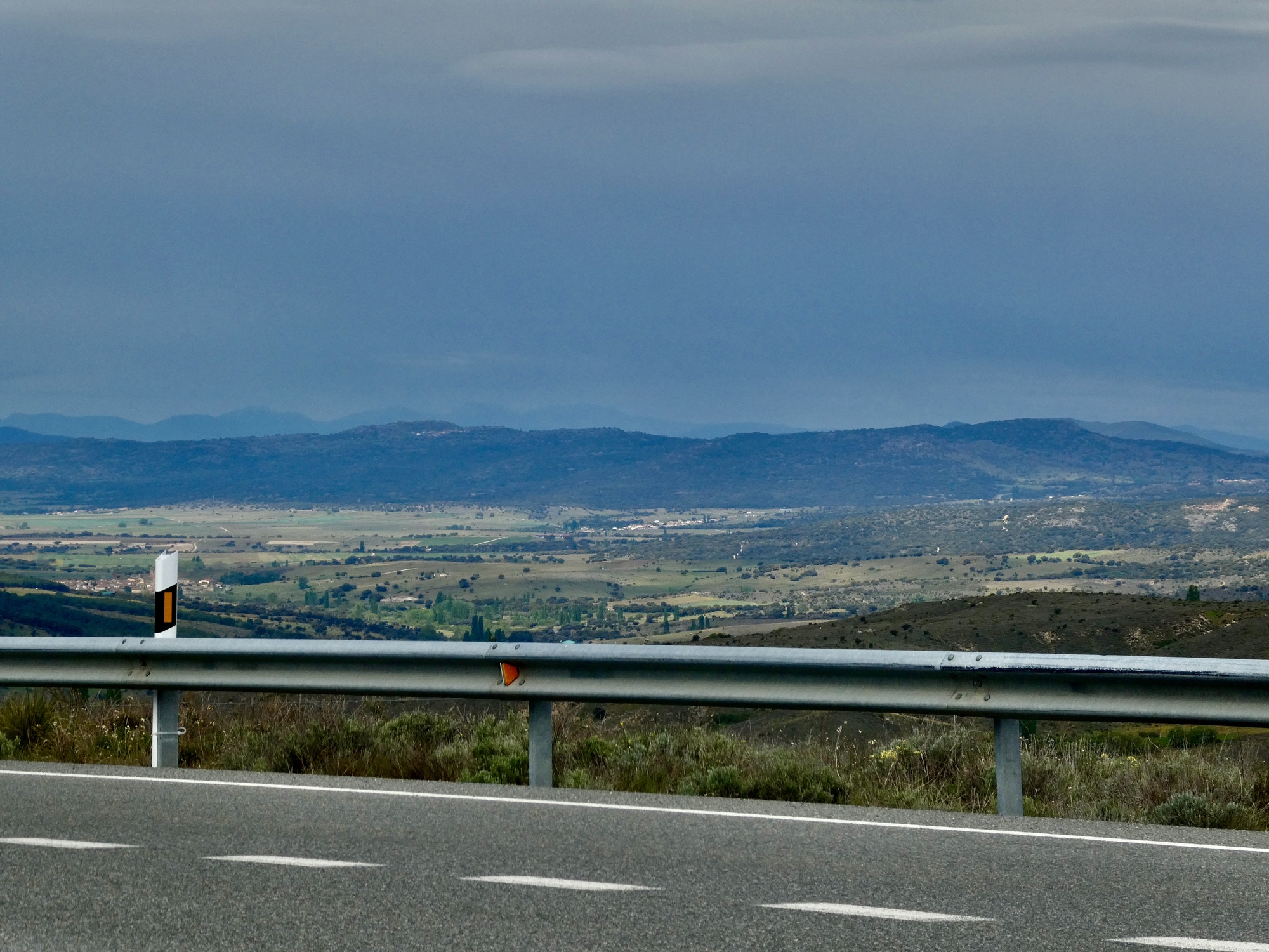 We’re over the top though, and our work is done for the day save for hanging on to the brakes and keeping warm. We layer up for the descent and then we fly like eagles all the way to Ávila as we’re blasted down the road on a steady wind that must be 15 mph or more. I stop for a few photos but mostly we just put away the miles, fast.