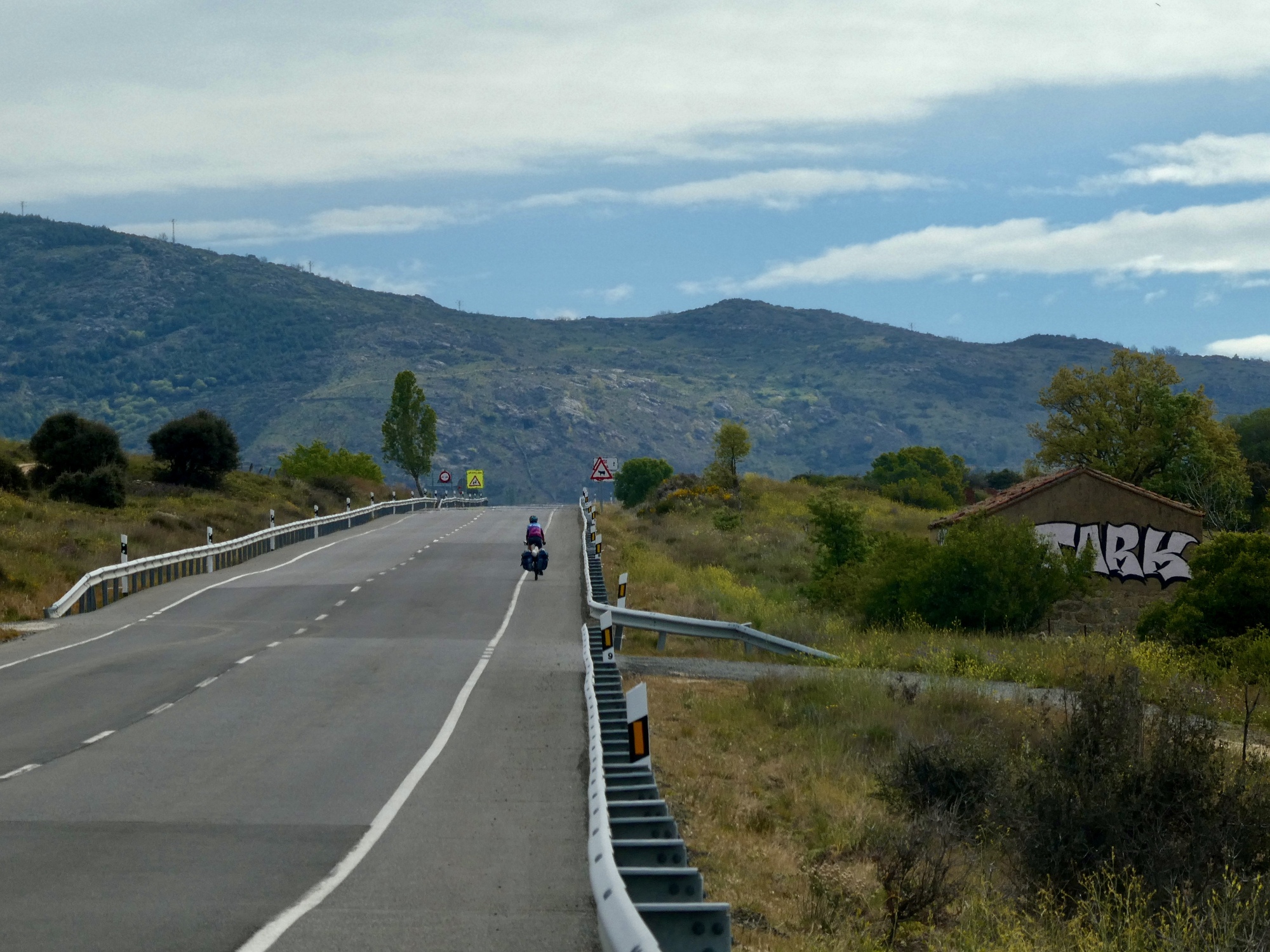 When I wake up again a few hours later I’m wondering how to bring this up with Rachael, but she beats me to it. I’ve barely opened my eyes when she says she thinks we should bike the whole way. She’s read the forecast too, and her dizziness doesn’t feel like an issue this morning. So we’ve got a plan. We make a booking in Ávila, go downstairs for breakfast at eight, and an hour later we’re on the road.