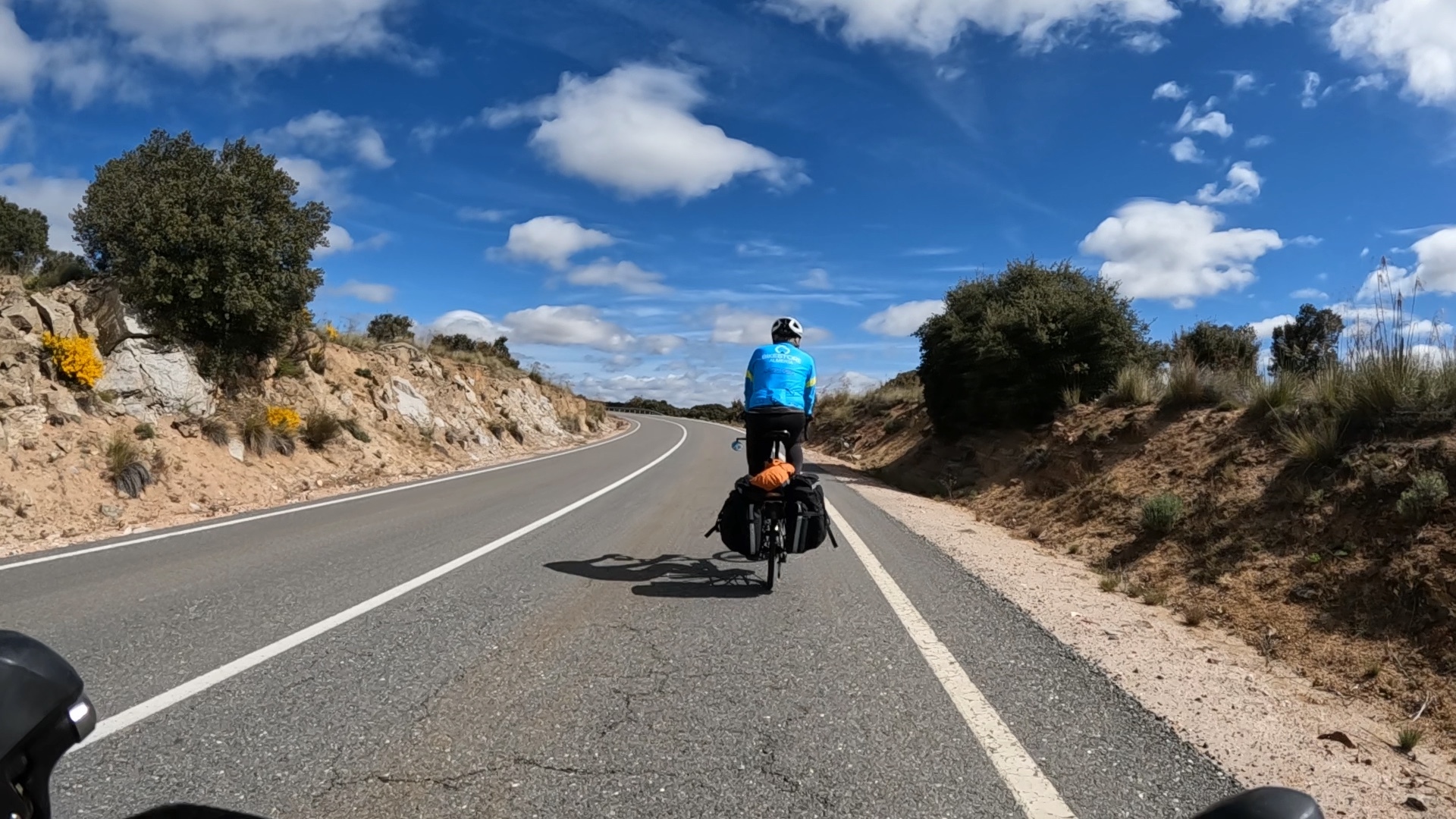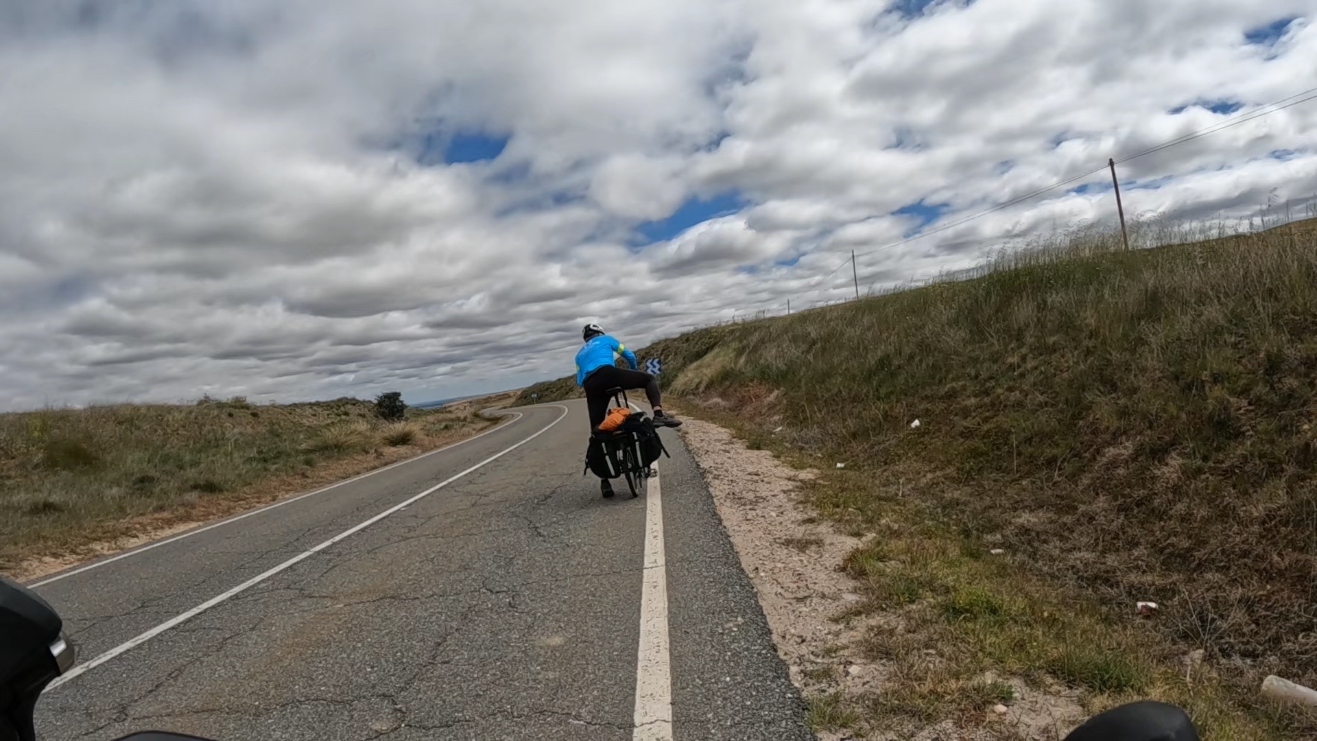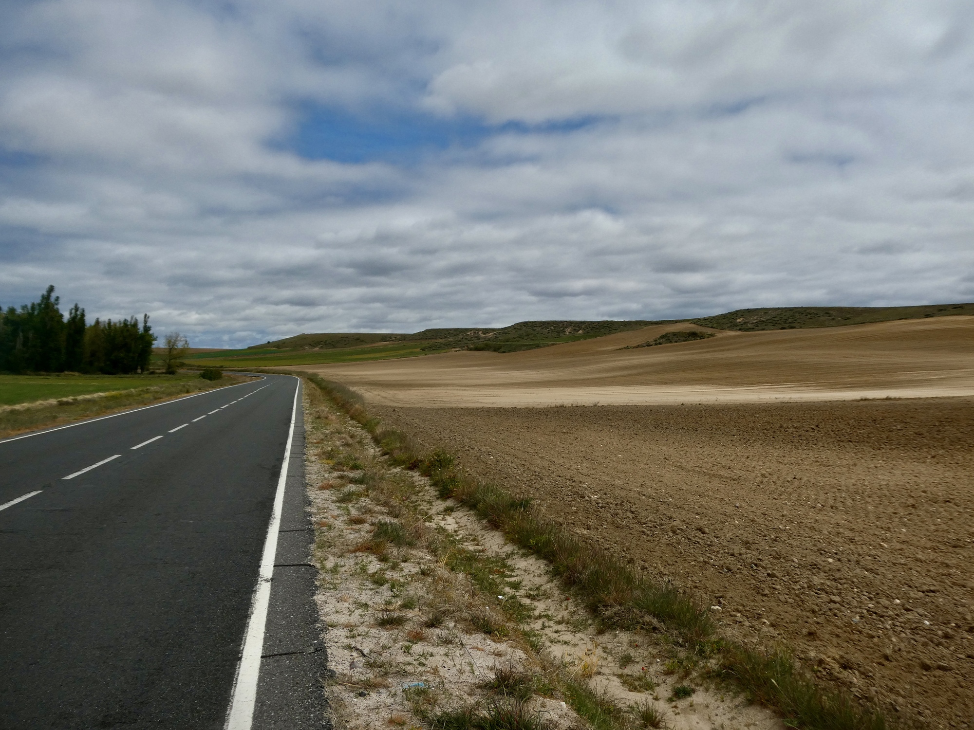 It’s a fairly uneventful ride - hilly at first without being too strenuous as we gradually pull away from the last hills of the Gredo Range and transition into the beginnings of Spain’s version of the Great Plains. There’s a bit of traffic for the first two miles until we come to the nearest freeway access, and after that we bike nearly empty roads until we near our day’s destination, Arévalo. Once we’ve crested that first hill and start dropping we remember it’s still not that warm so we stop to layer up. After that we pretty much bike straight through the rest of the way. I stop for few photographs, trusting the GoPro to carry most of the load for helping us remember this ride years from now.