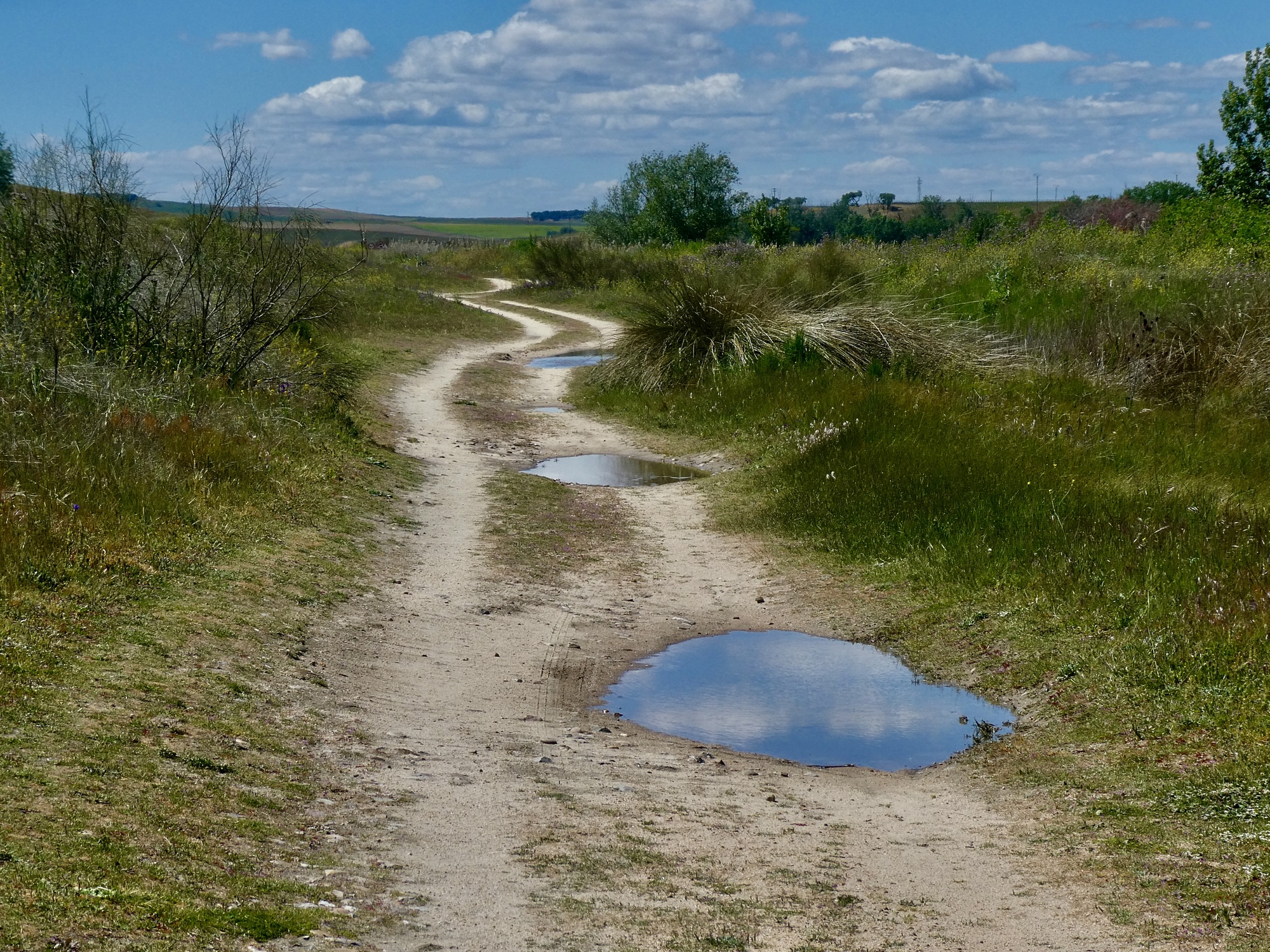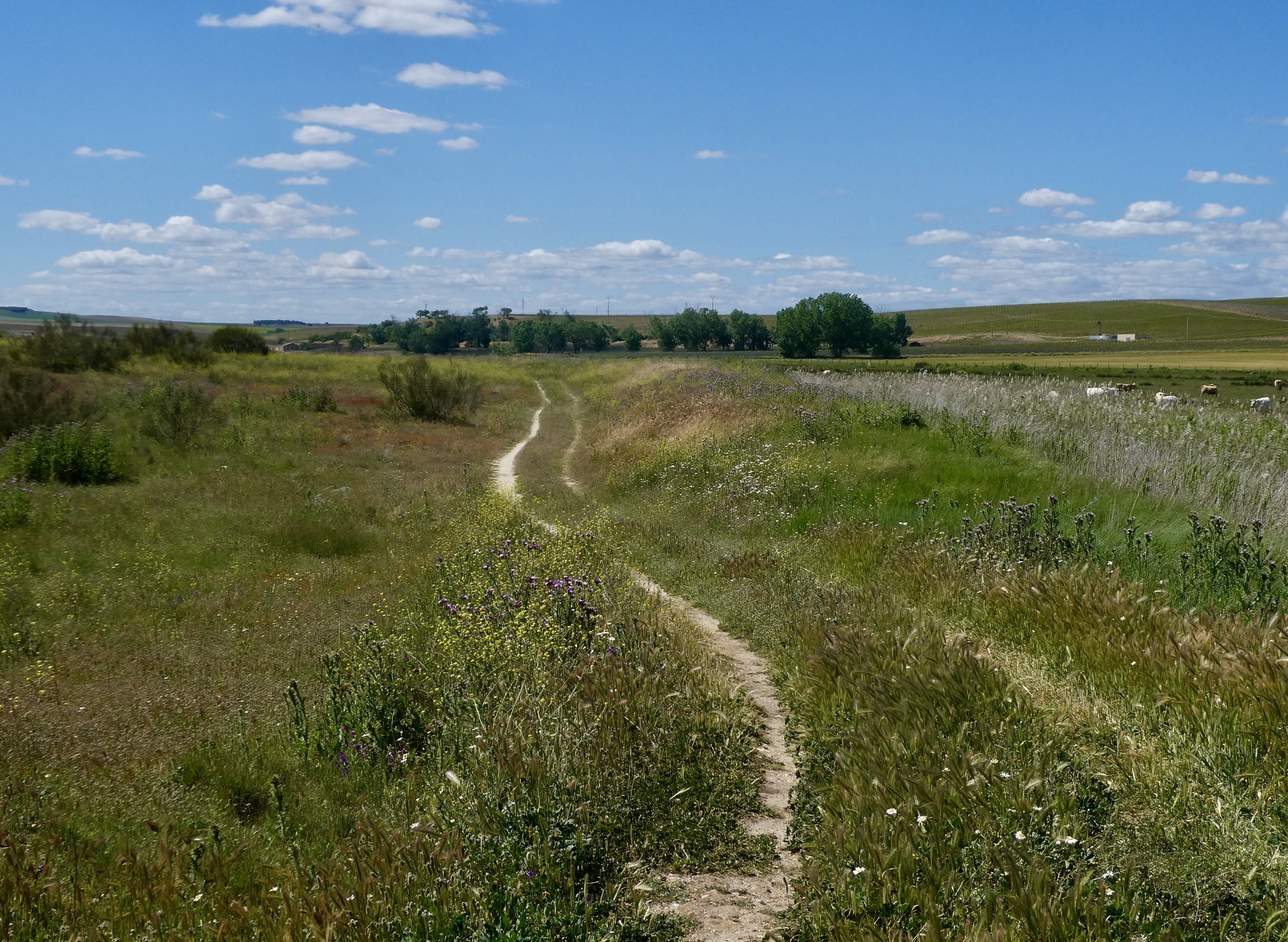 For myself I mapped out about a thirty five mile loop, mostly on pavement. The first several miles though were on the unpaved Camino de Levante, on its way west to Toro, Zamora, and ultimately Santiago. I’m only planning on about three miles of this trail though - just far enough to bring me to what look like the settling ponds of a water treatment plant that are allegedly a local birding hotspot. After that I’ll return to the pavement for a loop south and west of town.