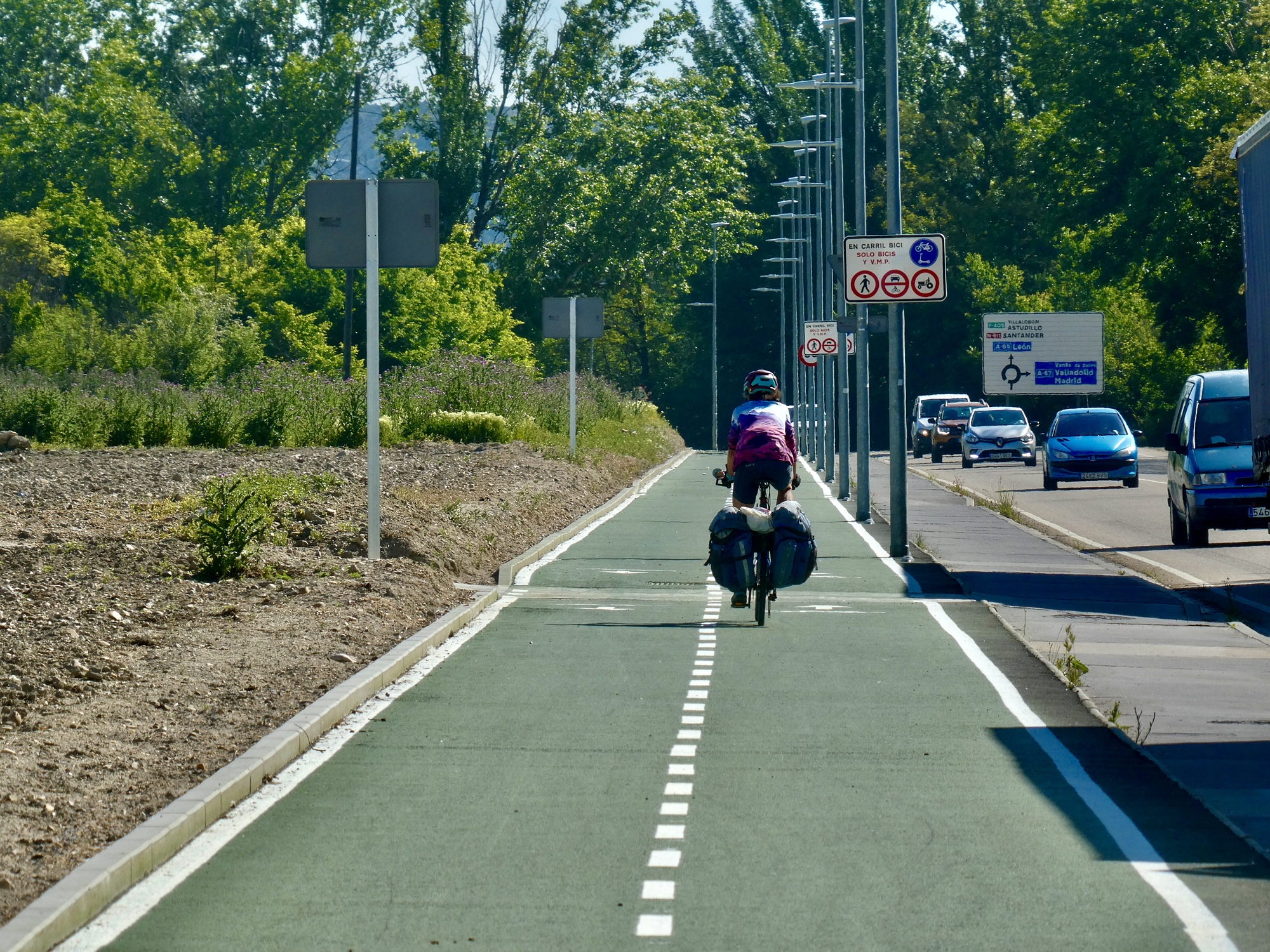 Just past Villajimena we leave the madhouse of P-405 and all its crazy traffic and branch off to the much calmer P-430. We’ve lost our shoulder now but it’s of no concern because we have the road pretty much to ourselves the rest of the way. Rachael’s waiting for me at the junction so she can grab some video of the descent into the arroyo and then we slow down for the climb out the other side.