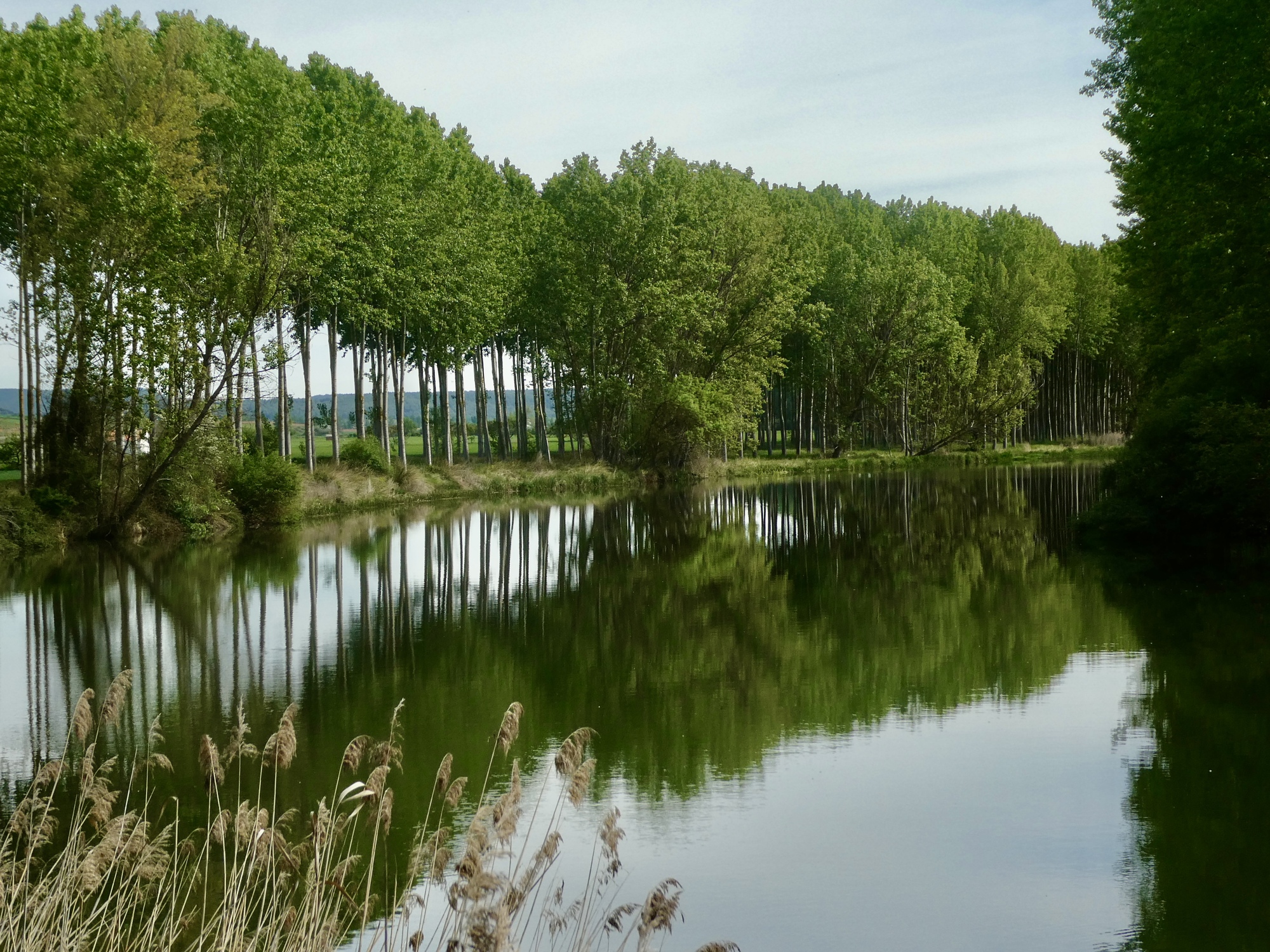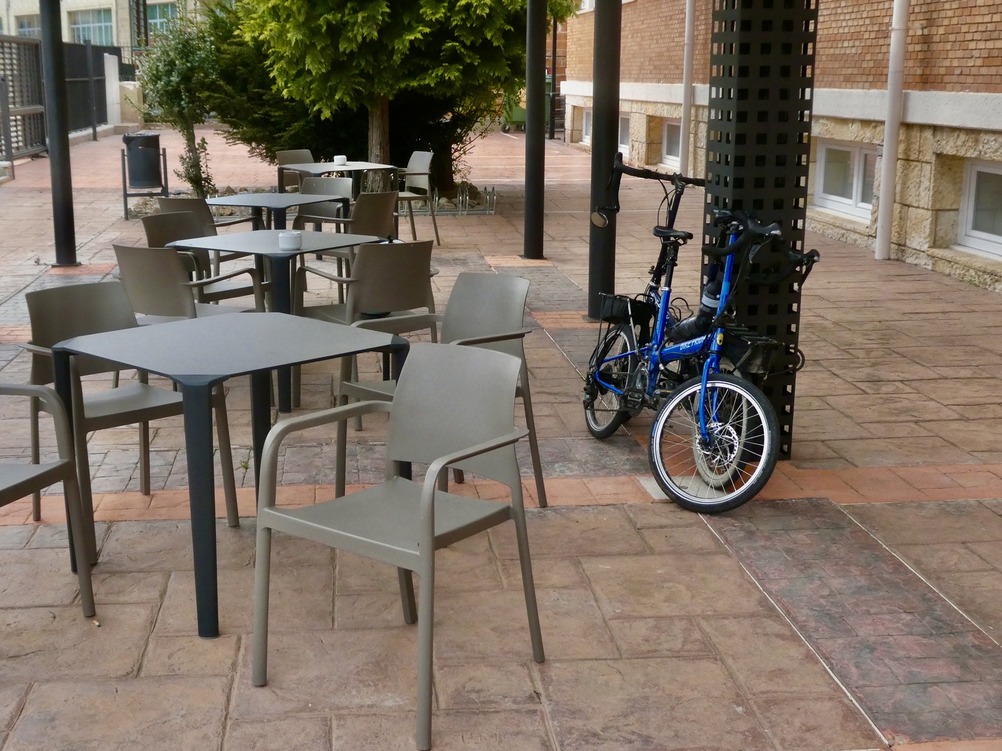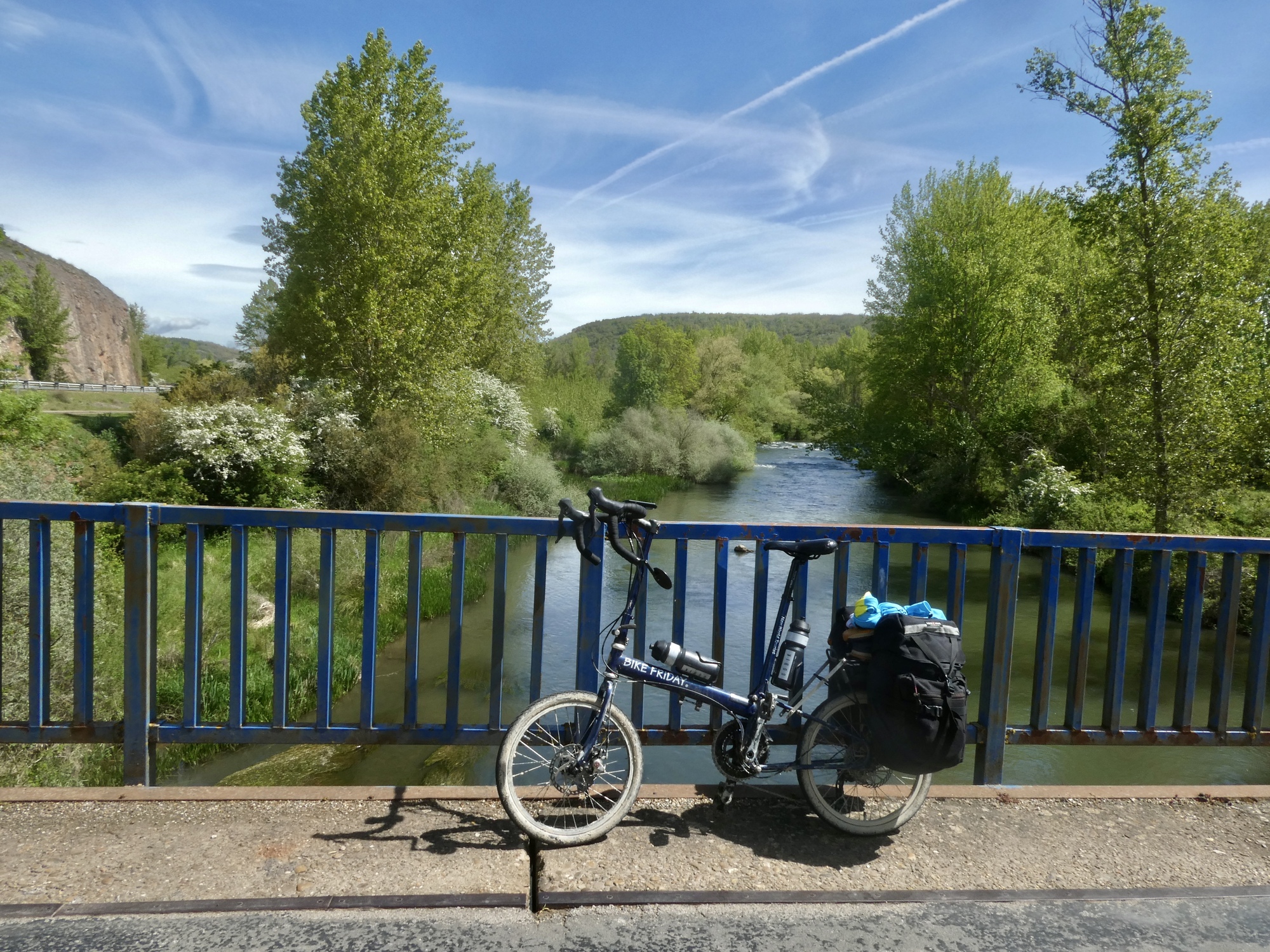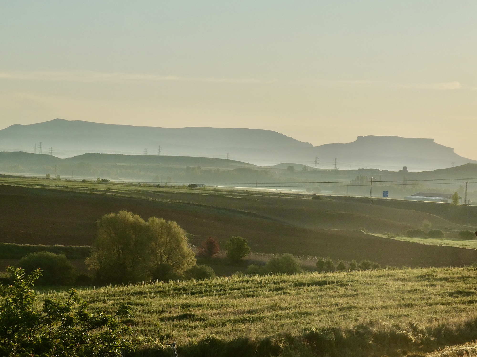 The view north from our window this morning. That’s roughly our direction of travel for the last stages in Spain, although we’ll steer clear of the mountains. There’s some valley fog still but it’s supposed to burn off soon and leave fair skies in its wake.