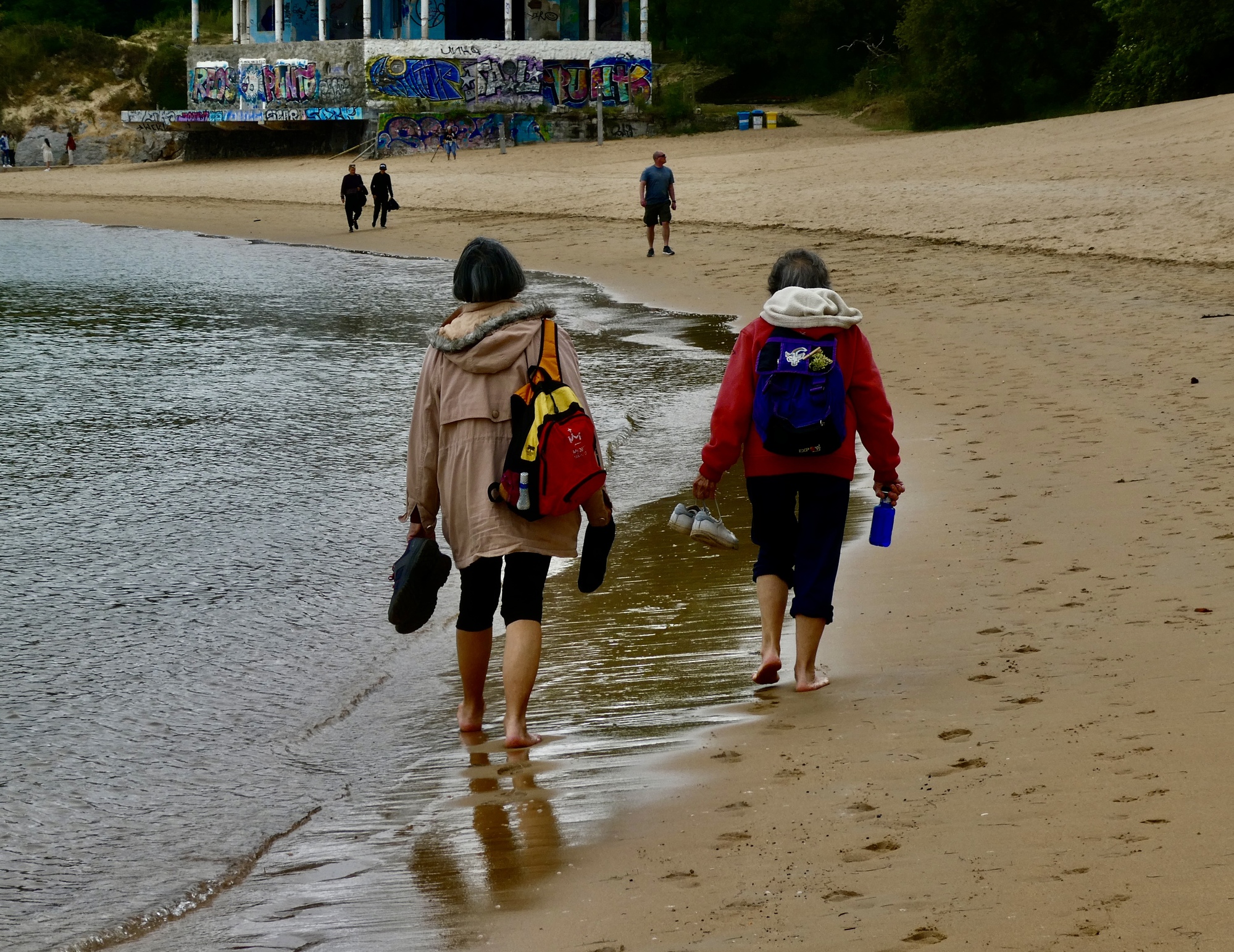 Did it ever start raining? I’m a few days behind and don’t remember for sure now, but by mid-afternoon it was nice enough out that we both went out to check out the city. I started first, and once again bested Rachael by walking the seven mile round trip out to the end of Magdalena Park and back. She started earlier, ended sooner because conditions were cooler and windier than she was comfortable in, and as a result managed to return dry.