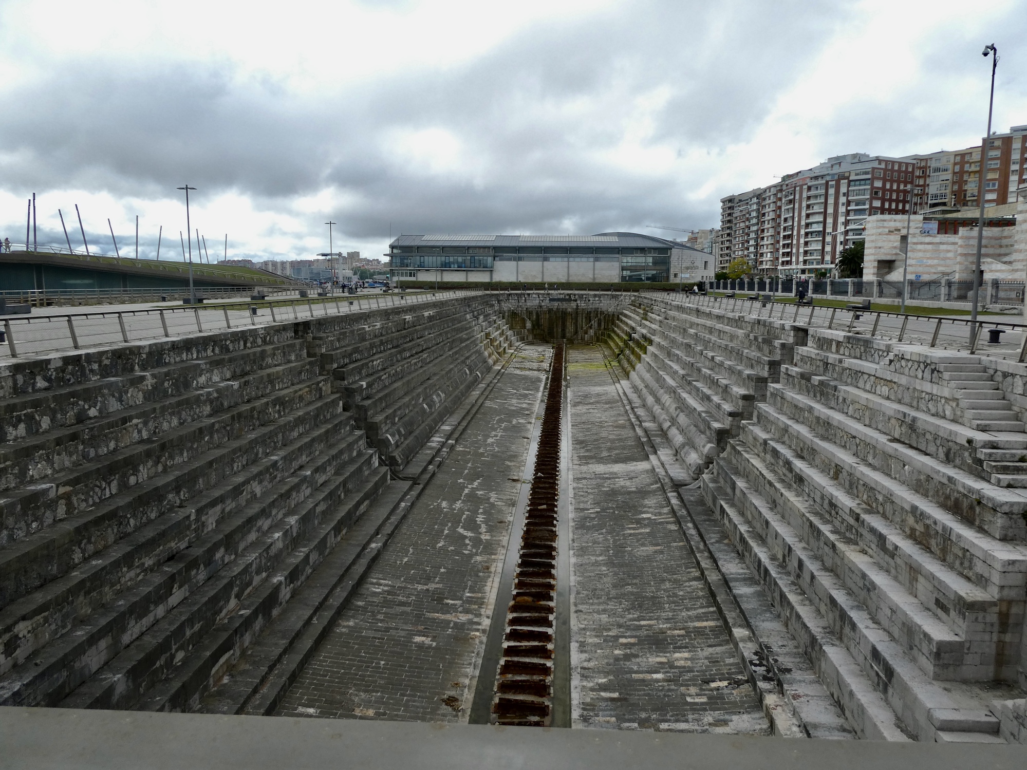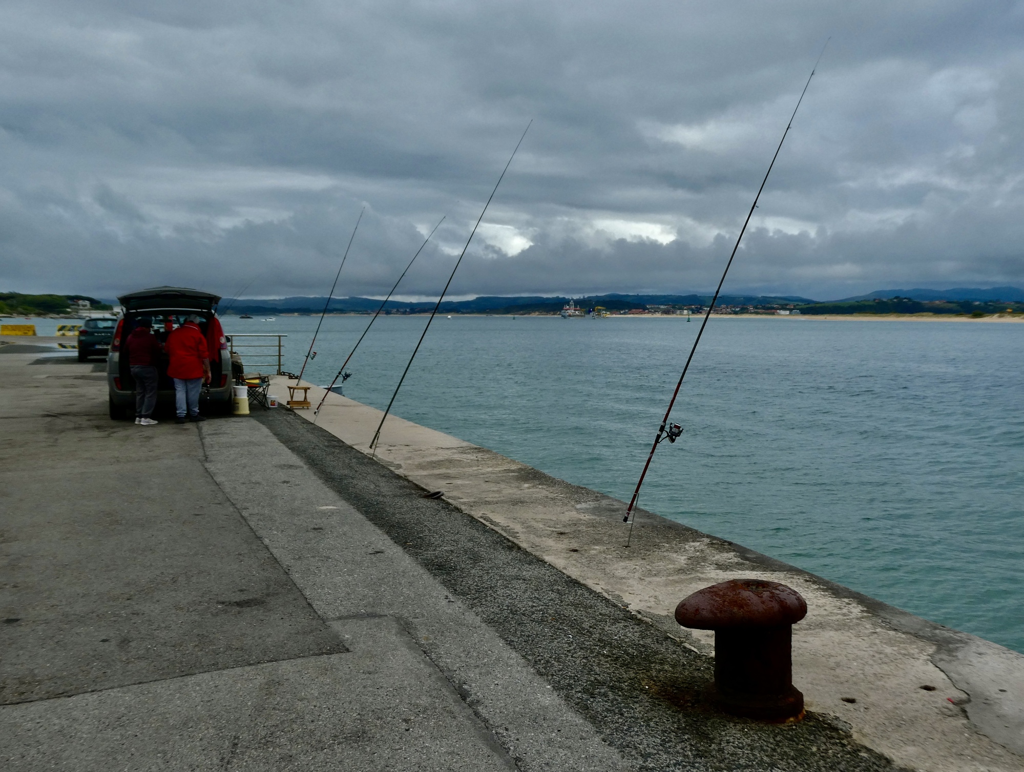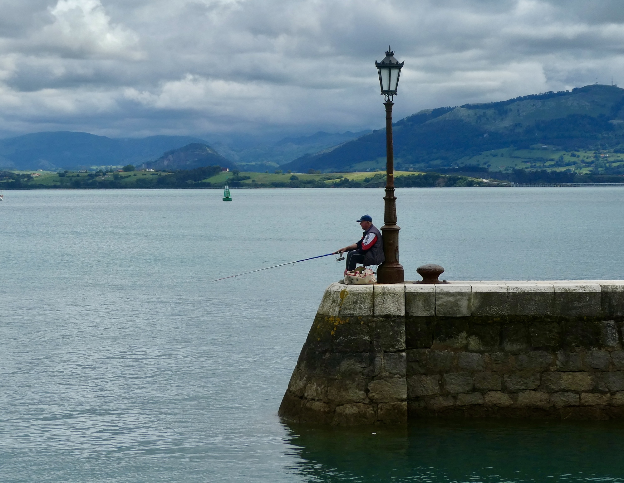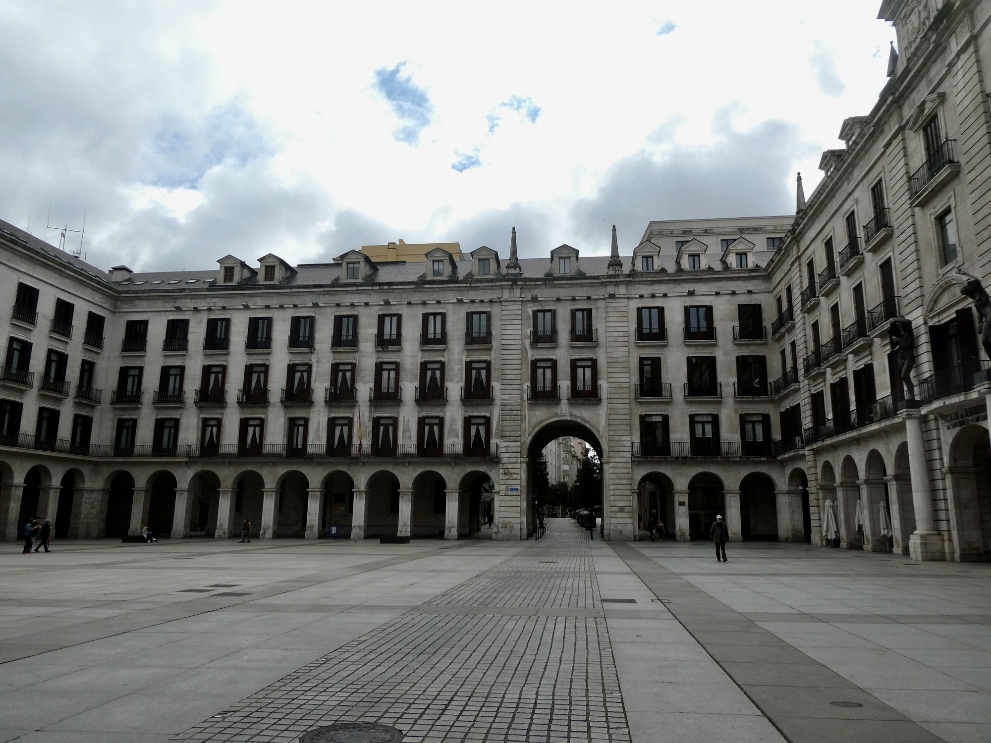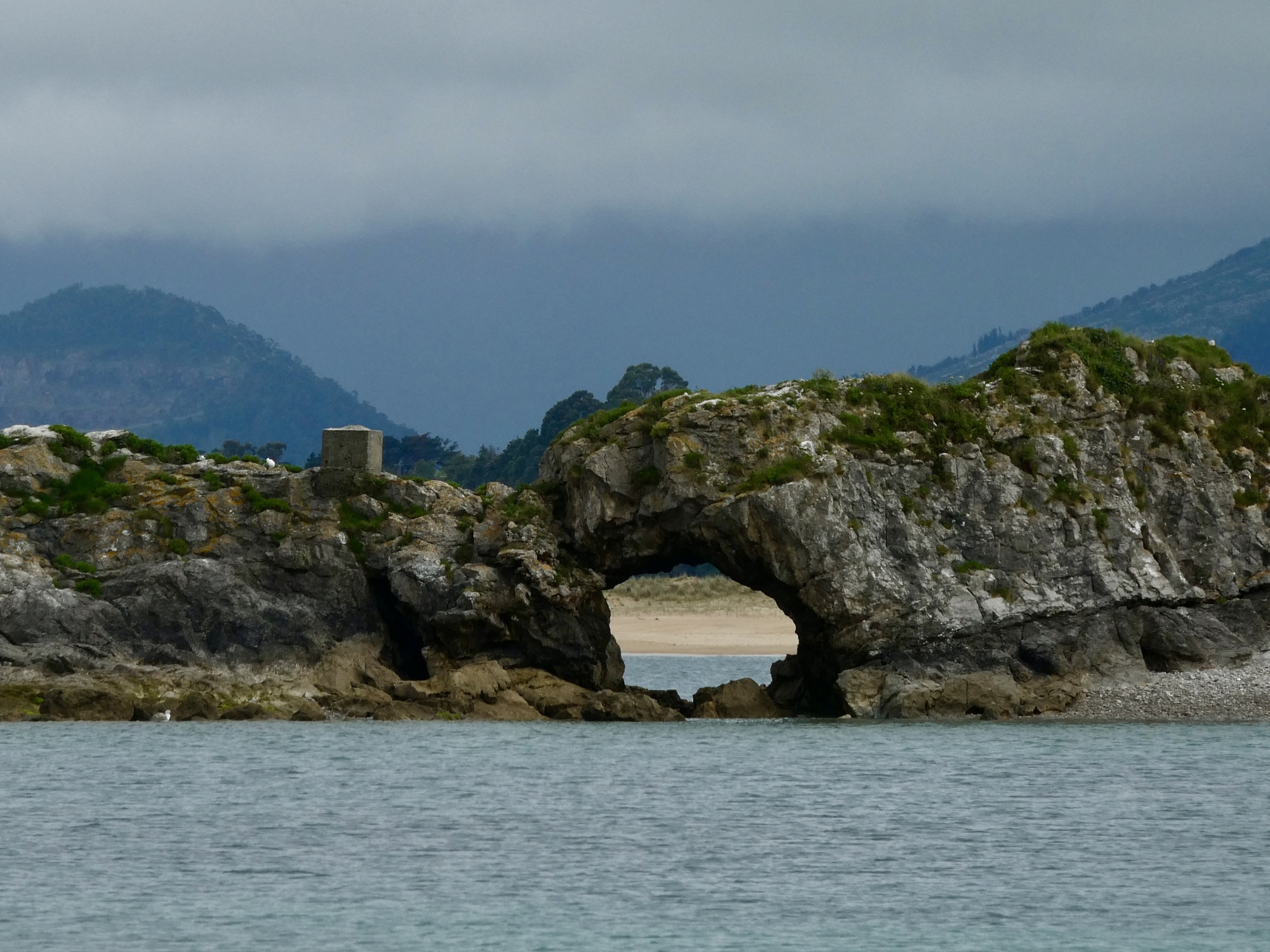 It’s not surprising that under the circumstances we just rode, happy for every mile we remained dry. I warned Rachael in advance that I’d be stopping to see the old bridge over the Pas River at Oruña when we got to it, but other than that I kept the Lumix safely zip locked until near the end when it was clear we’d be arriving dry. There was about a mile when we biked in a light mist, but it soon passed and did no harm.