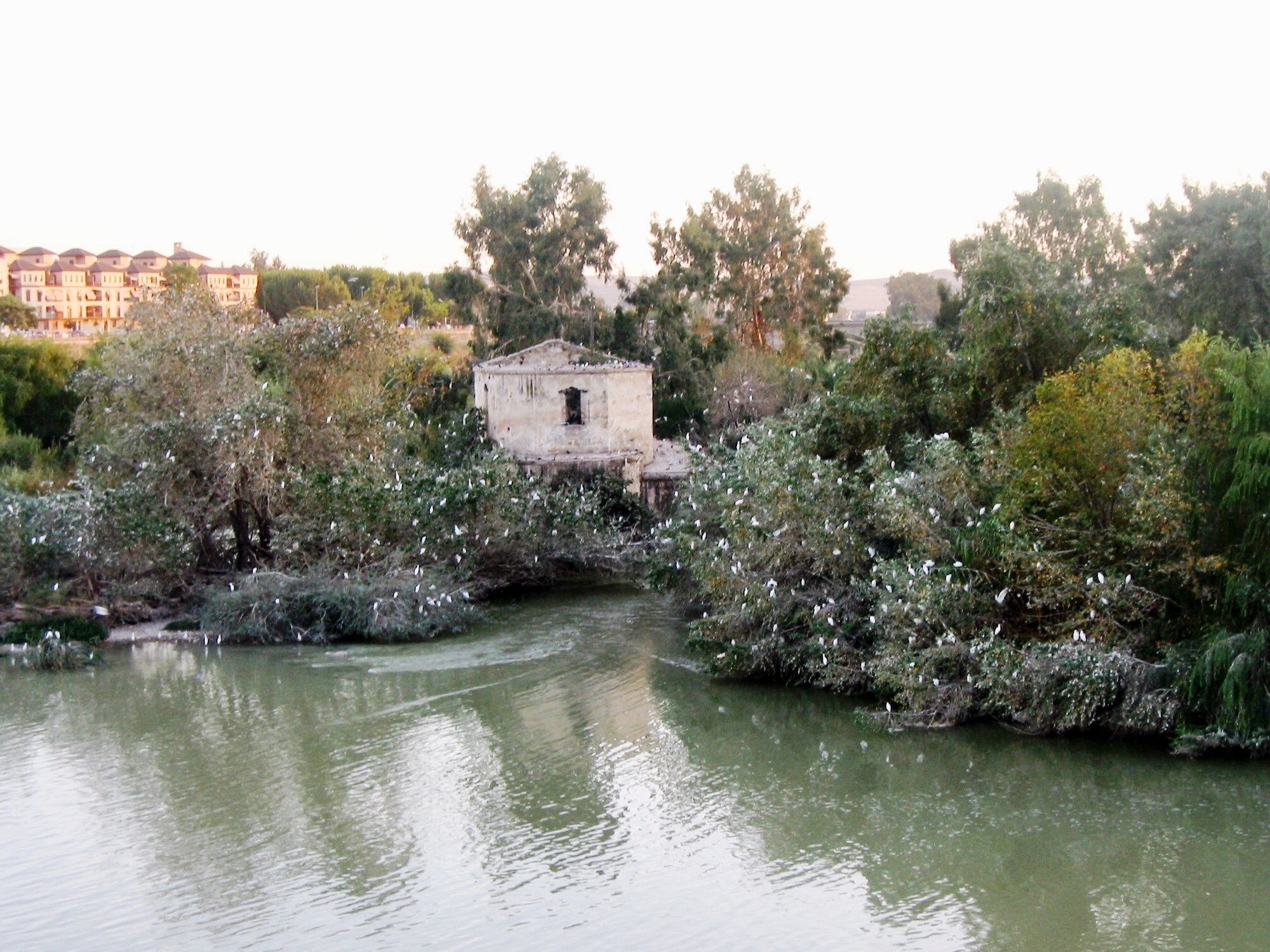 Rachael gets started on scrambling the last of the eggs, we get packed up, and we’re on our way by about 9:30. In a lucky accident, the ride starts with a navigation error. In trying to avoid biking one last time across the stony streets in the town center we take the wrong paved road out of town. It adds a quarter mile but it’s well worth it because it takes us past the one noteworthy sight Rachael mentioned from her walk yesterday - the egrets. We pass a series of snowy trees turned white by what must be a thousand cattle egrets. It’s an amazing sight, the only time I’ve seen such a huge concentration of egrets since our first visit to Cordoba twenty years ago. I was so astonished by them then, seeing thousands of birds streaming in from all directions and coming to roost in trees by the base of Cordoba’s famous bridge. I imagine those were cattle egrets too, though at the time I didn’t even know that was a species.