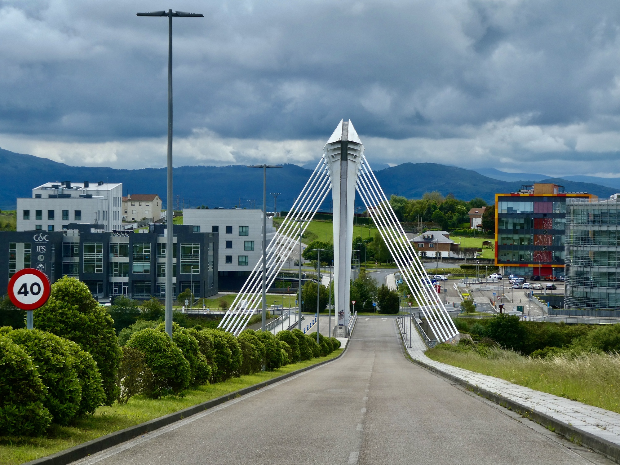 It appears we’re going to stay dry so I allow myself a shot of this elegant cable-stayed bridge that we’re about to descend through. I should have stopped for a side view also.