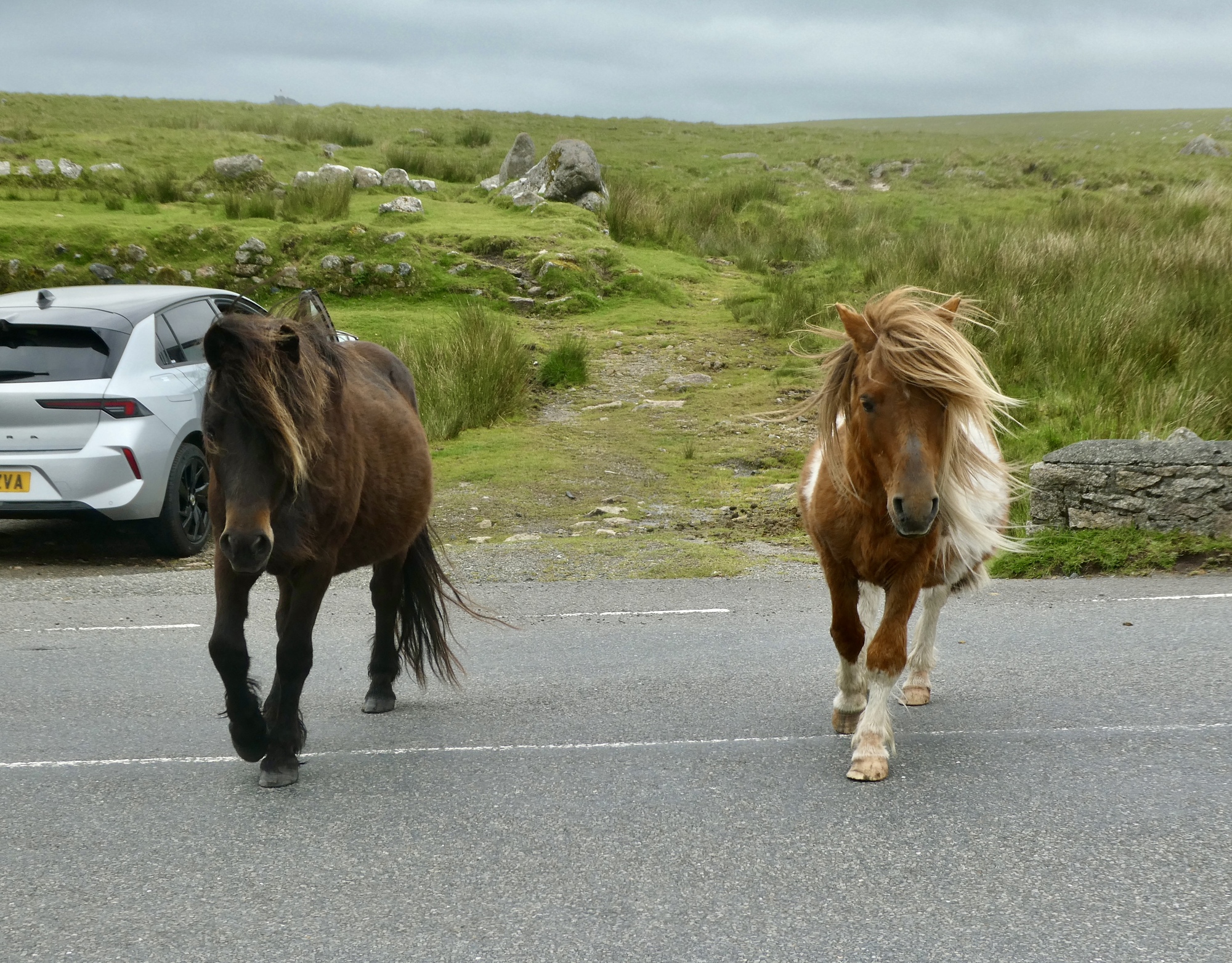 An hour later I’m off, working my way up those small roads - and they really are small, and quiet, and challenging. I bike when I can and walk when I can’t, and eventually find myself up in the wide open moors relishing the views and the free range animals that signs warn drivers to slow down and watch out for. It’s lambing season, and the sheep are endearing; but the real showstoppers are the gorgeous wild ponies that Dartmoor is famous for. Their numbers are much diminished from the 30,000 that reportedly ranged here 70 years ago, but there are still about 1,500 of them - enough that you’re assured of seeing them around - off in the distance, or nearby, or right in the road and walking at you making you wonder if you need protection.