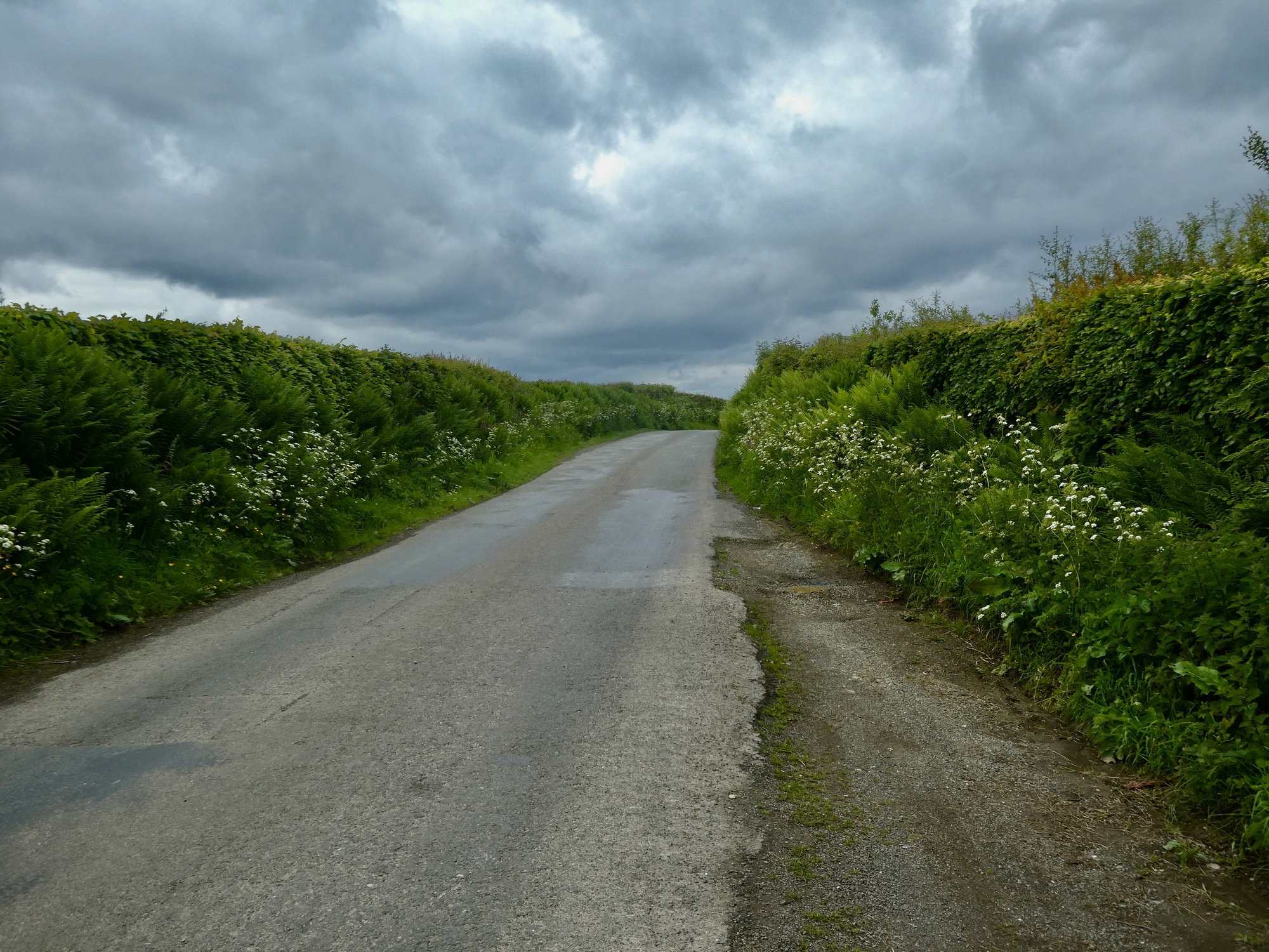 Creasy Road is a good choice and gives me a mile completely to myself. Nothing here but me and these unbroken hedgerows blocking the views to either side - a fact of life that just goes with the territory in Britain.