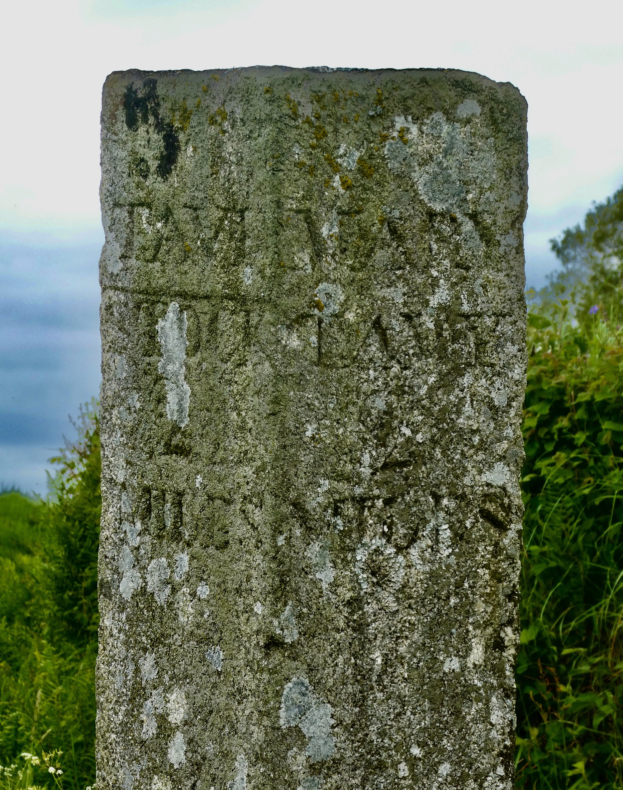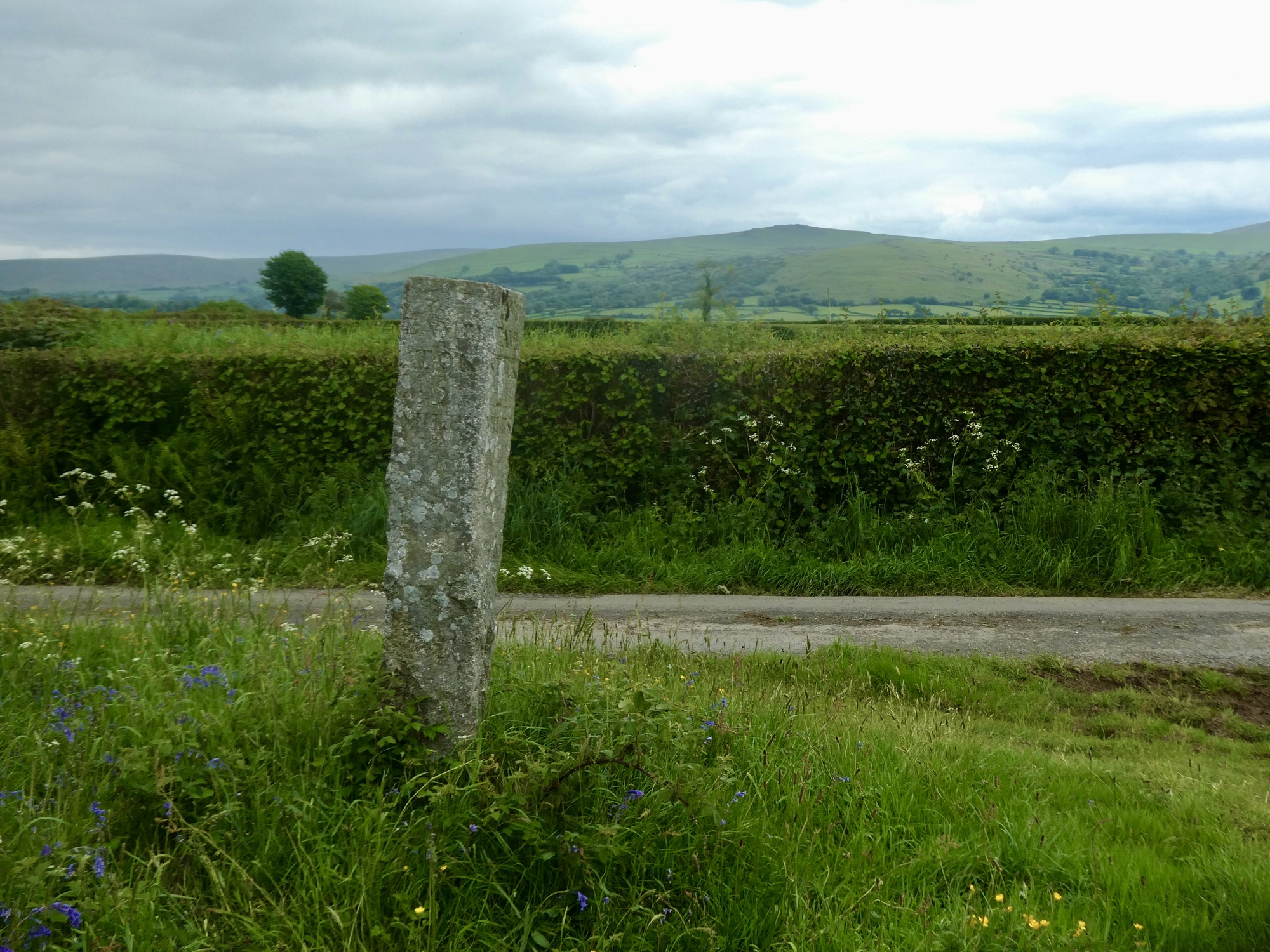 I don’t think I’ve realized before that these old granite posts are waymarkers. Were standing here at the border of the national park, which begins at the hedgerow.