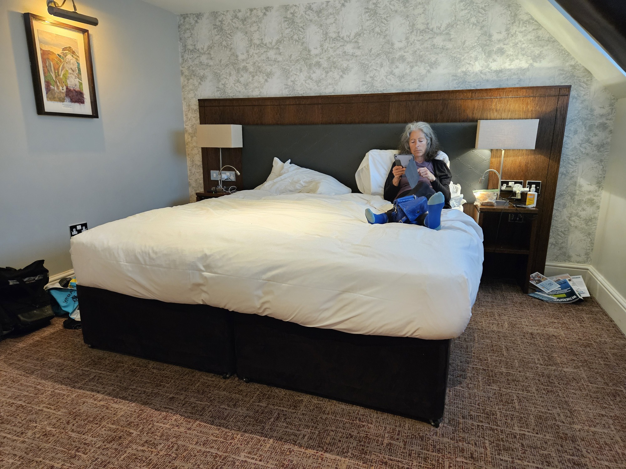We’ll get an early start because checkout here is by ten; and with only twenty miles between us and Okehampton (pronounced oak-hampton, OK?), we’ve arranged an early check-in at the other end.
