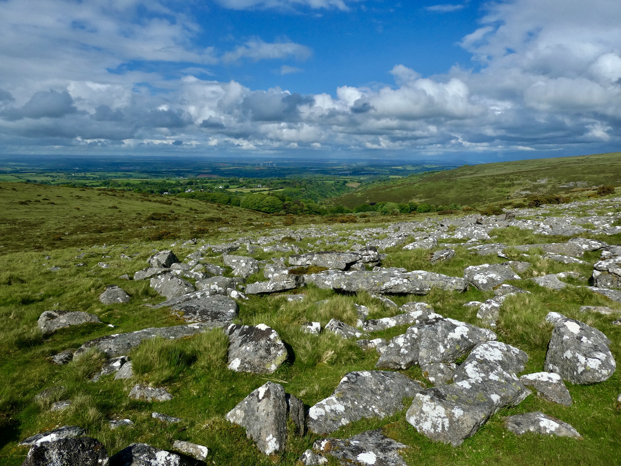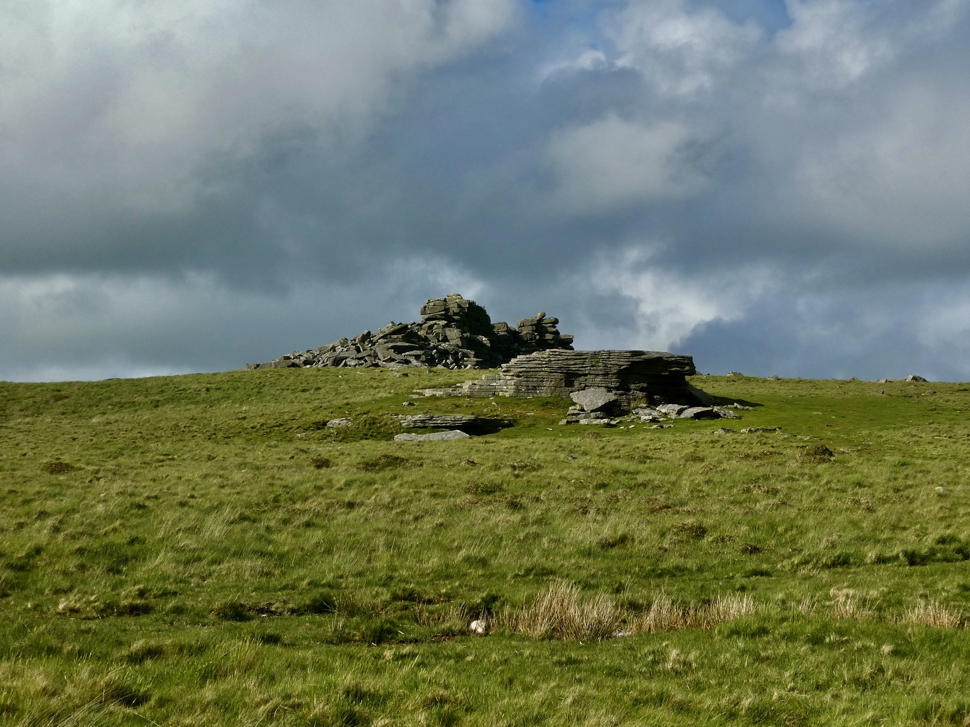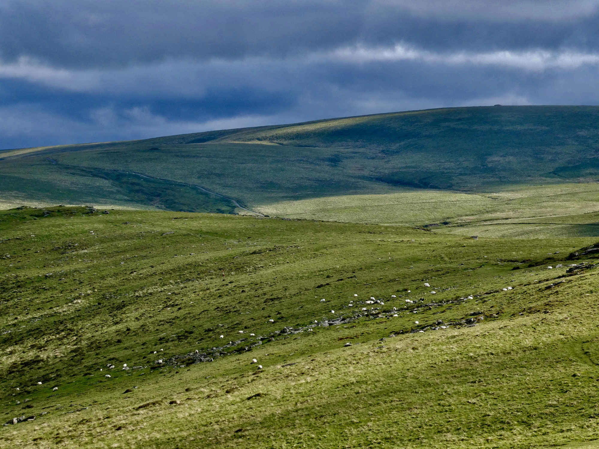 Hopes are fulfilled and by two we both head out with a forecast now that looks dry until after sundown - which this late into spring and this far north isn’t until after nine. Because this could be our best day we pick our top priority destination - Higher Tor, about five miles to the southeast. Rachael’s walking the whole way of course, but I’m taking a bike and hike: I’ll bike as far as the moorside village of Belstone, find a hopefully safe spot to lock it up, and then test out my new pole with a four or five mile loop through the moors.