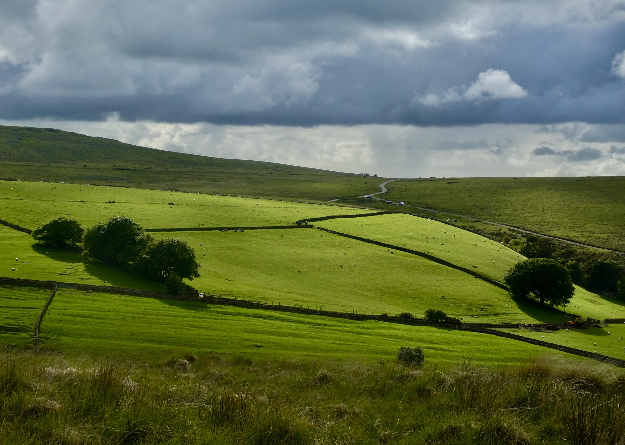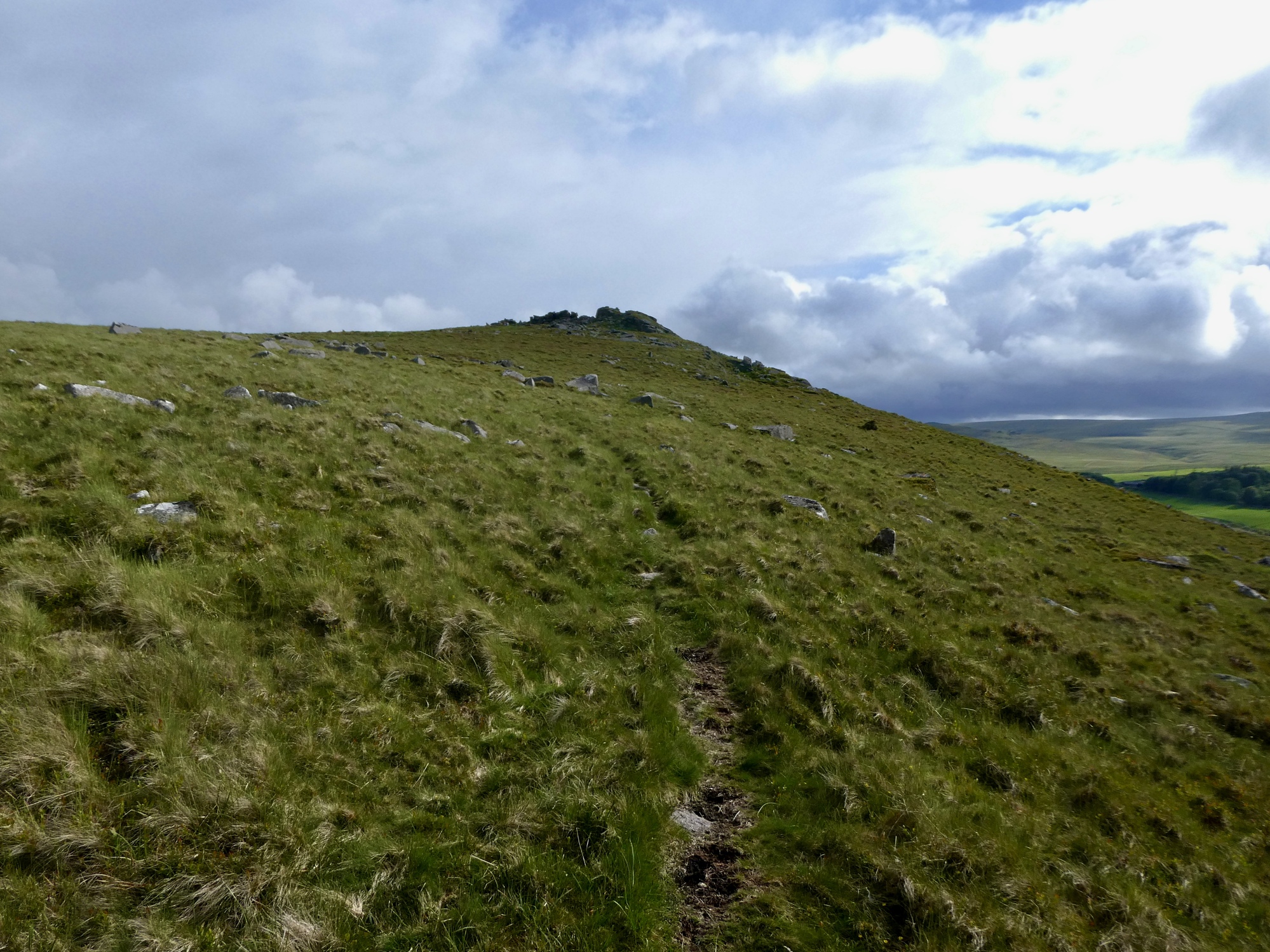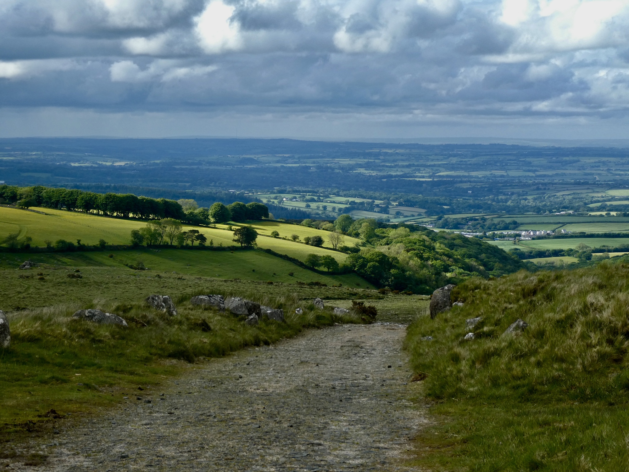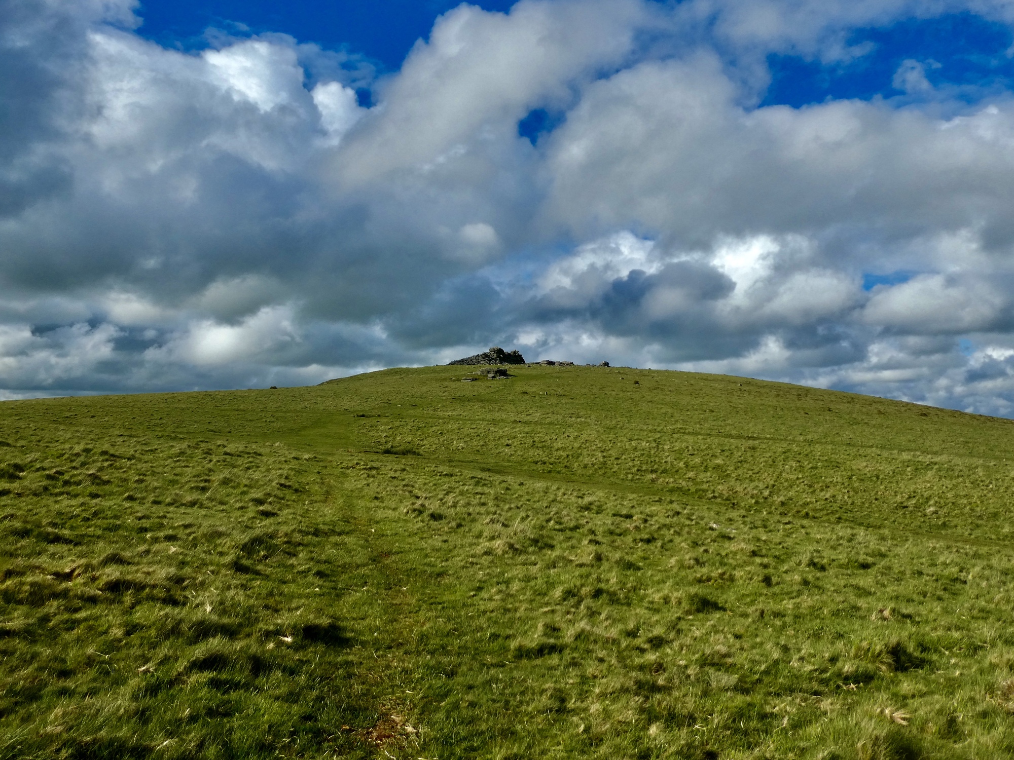 Hopes are fulfilled and by two we both head out with a forecast now that looks dry until after sundown - which this late into spring and this far north isn’t until after nine. Because this could be our best day we pick our top priority destination - Higher Tor, about five miles to the southeast. Rachael’s walking the whole way of course, but I’m taking a bike and hike: I’ll bike as far as the moorside village of Belstone, find a hopefully safe spot to lock it up, and then test out my new pole with a four or five mile loop through the moors.